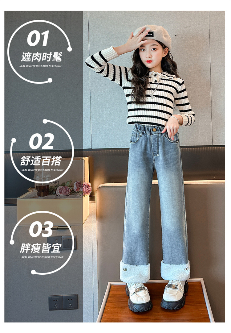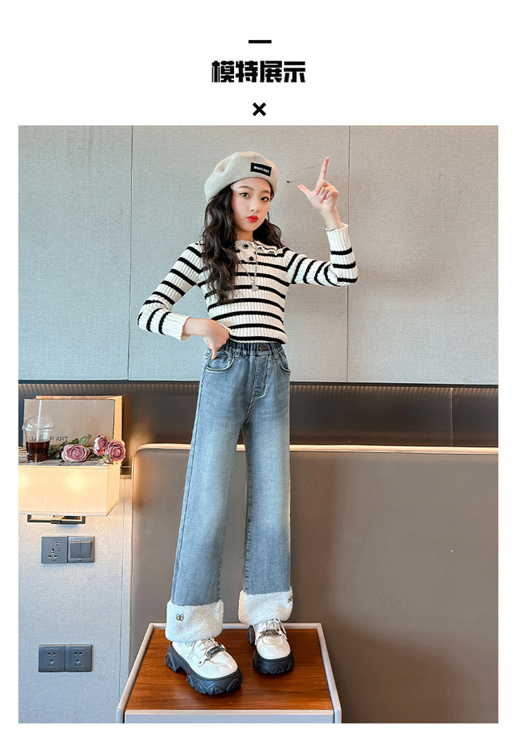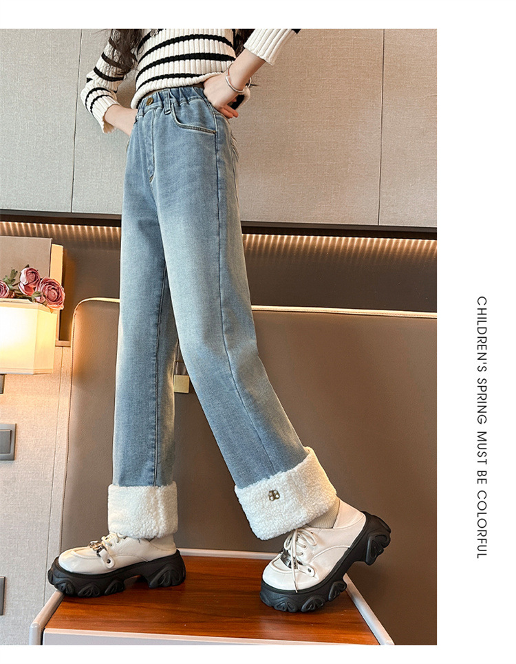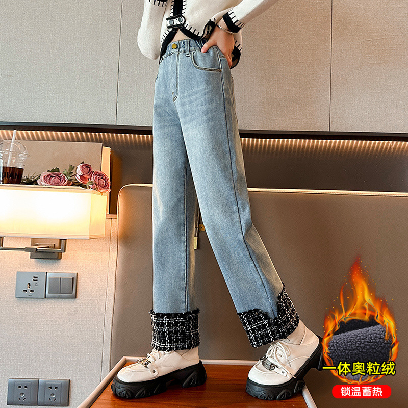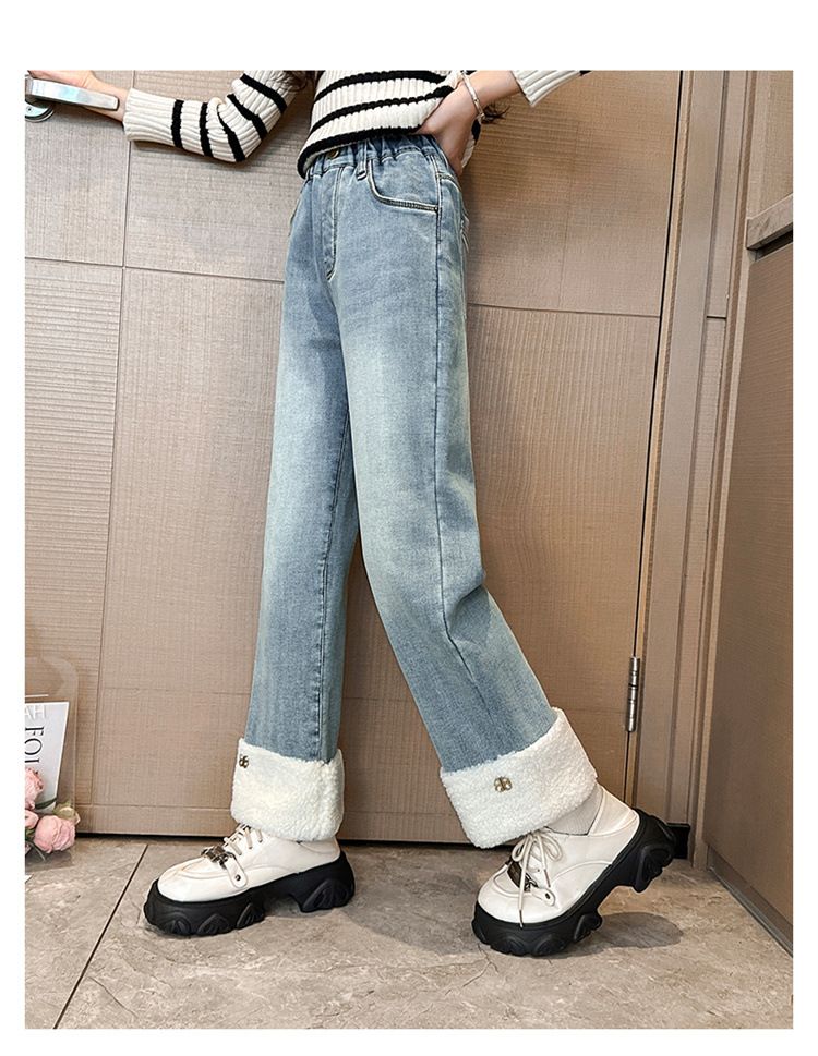 소녀 기모 바지 겨울 새로운 두꺼운 스트레이트 바지 어린이 청바지 따뜻한 큰 어린이의 가을과 겨울 느슨한 바지