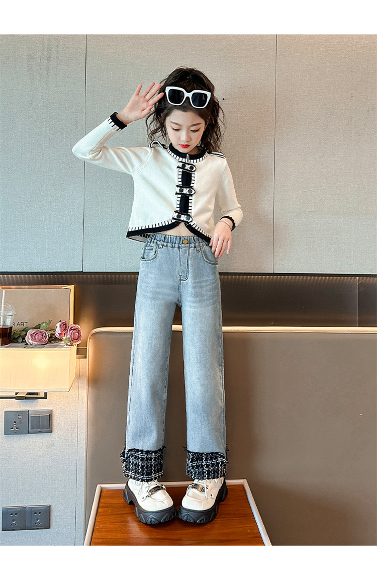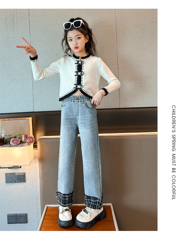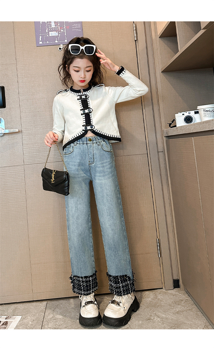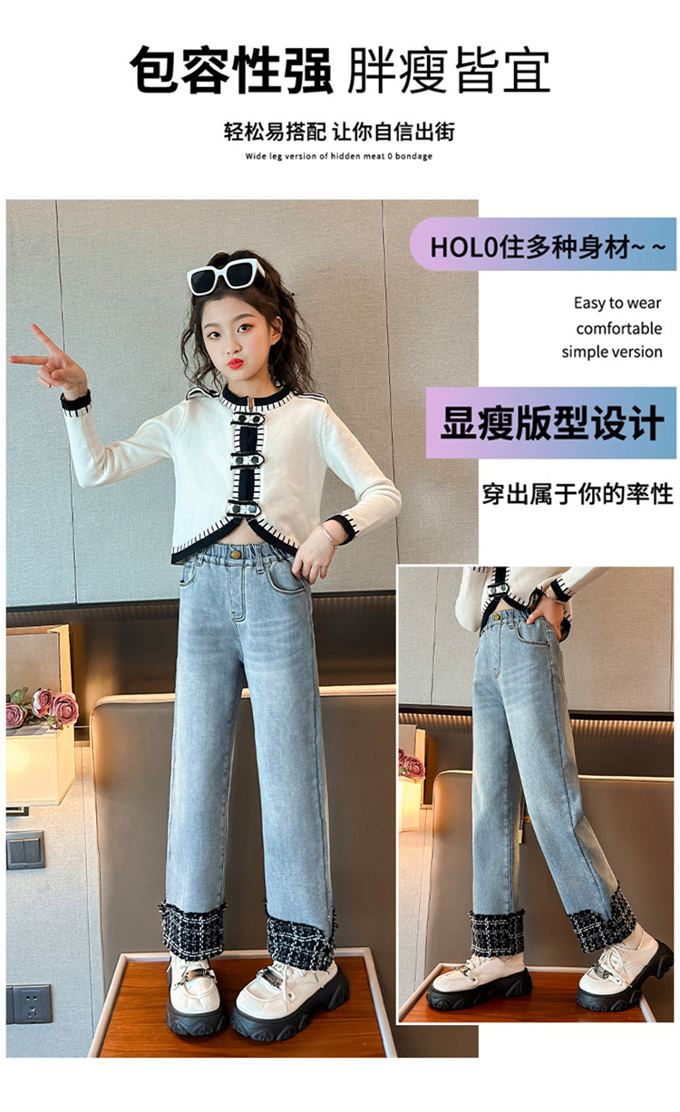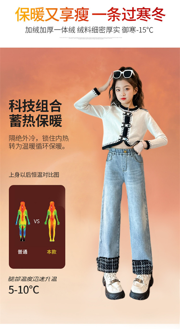 소녀 기모 바지 겨울 새로운 두꺼운 스트레이트 바지 어린이 청바지 따뜻한 큰 어린이의 가을과 겨울 느슨한 바지