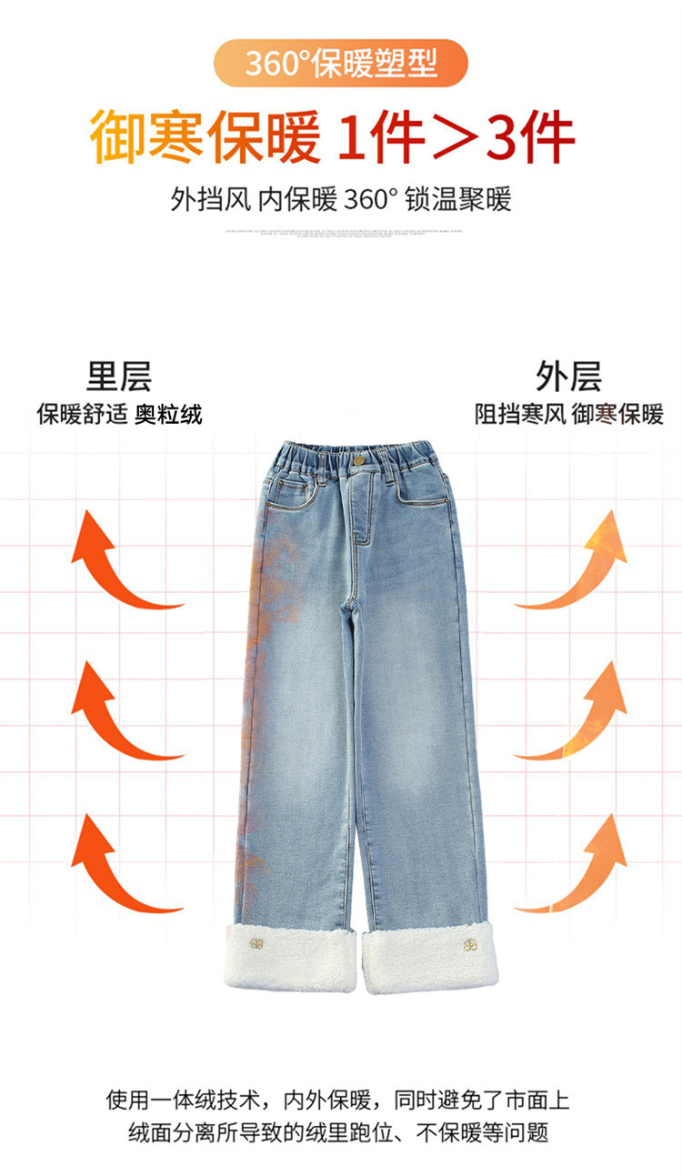 소녀 기모 바지 겨울 새로운 두꺼운 스트레이트 바지 어린이 청바지 따뜻한 큰 어린이의 가을과 겨울 느슨한 바지스토어 가기