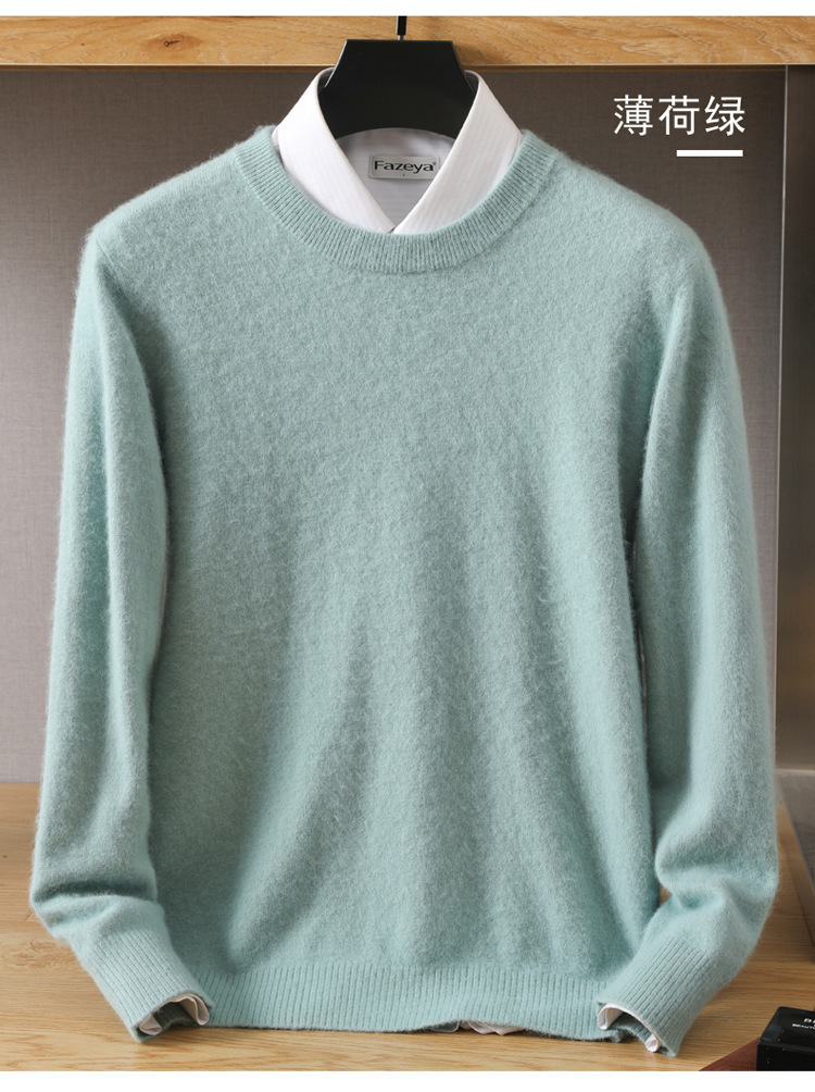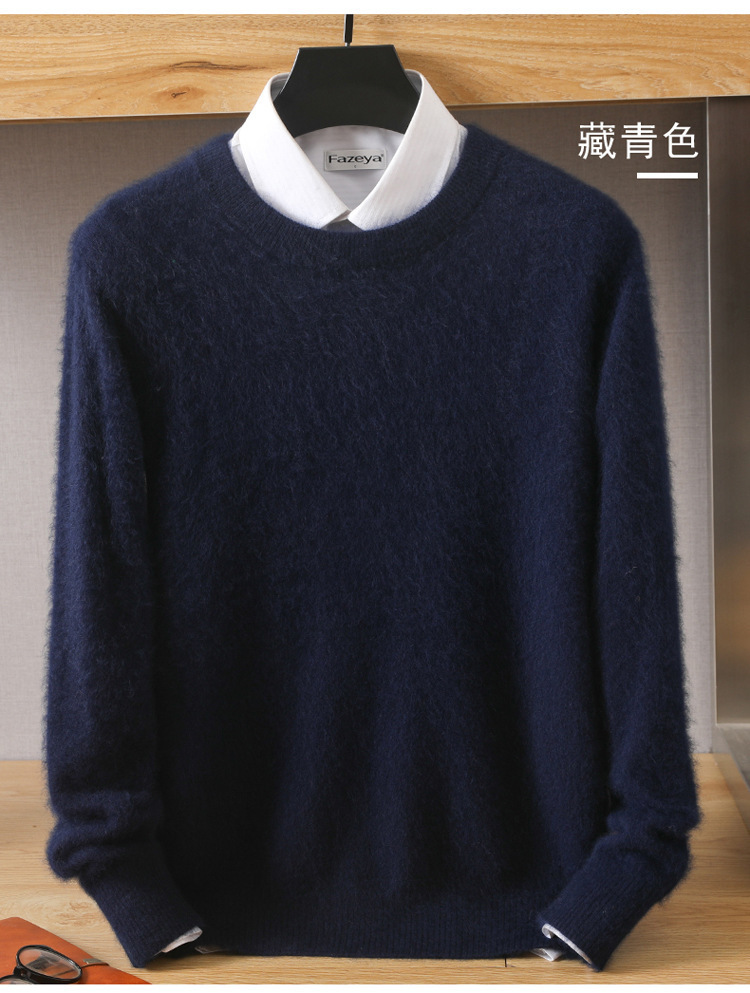 캐시미어 스웨터 남자 크루 넥 풀오버 밍크 스웨터 가을과 겨울 느슨한 양모 플러스 사이즈 베이스 밍크 니트 스웨터
