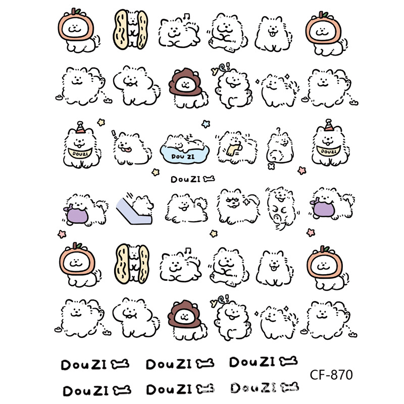 도매 재고 인 바람 부드러운 귀여운 게으른 흰색 강아지 네일 아트 스티커 양각 3 차원 만화 장식스토어 가기