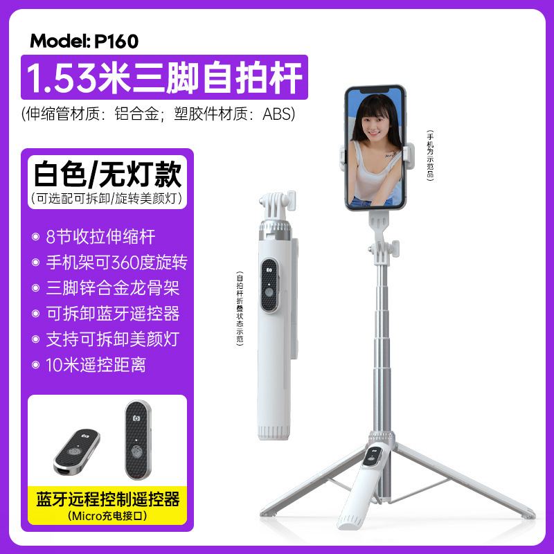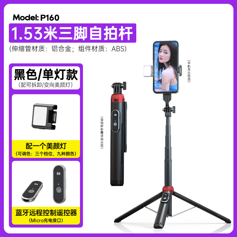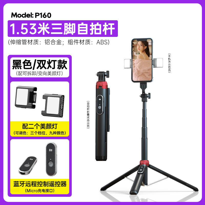 P160手机蓝牙自拍杆双补光灯手持稳定器落地伸缩杆直播支架三脚架P160手机蓝牙自拍杆双补光灯手持稳定器落地伸缩杆直播支架三脚架P160手机