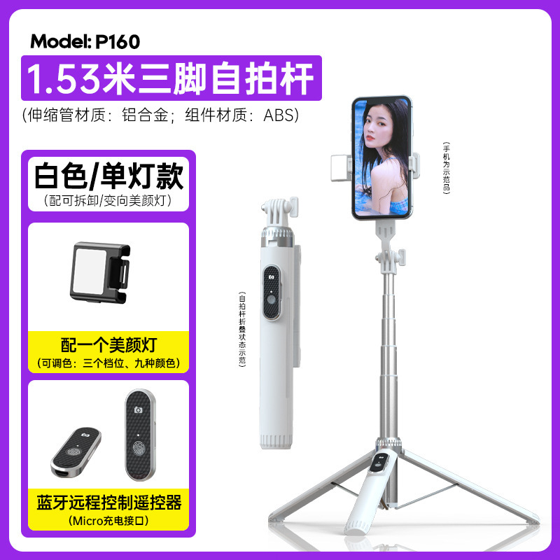 • P160 삼각대 셀카봉/알루미늄 합금/흰색/이중 조명