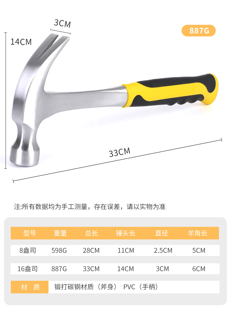 가정용 하나의 단단한 직각 해머 결합 된 높은 탄소 강철 클로 해머 높은 경도 인성 목공 해머 제조 업체 도매스토어 가기