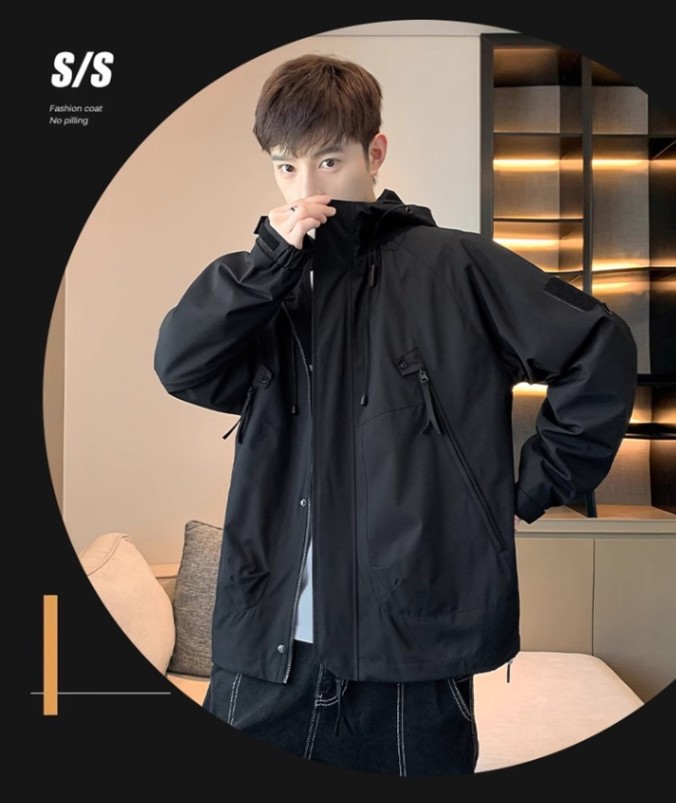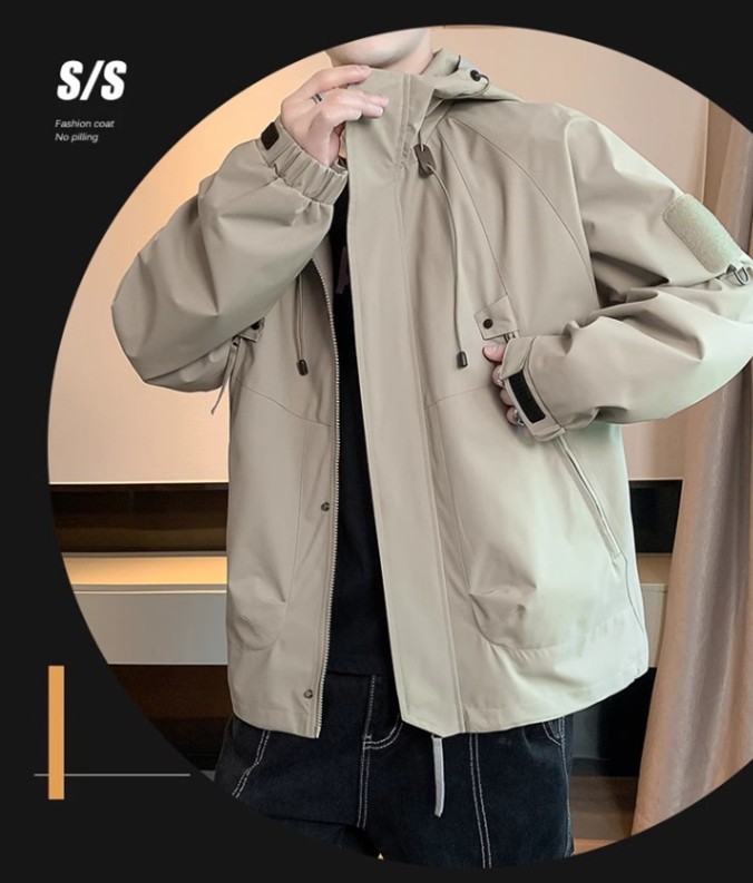 남자 재킷 캐주얼 코트 남자 가을 겨울 2024 새로운 하이 엔드 센스 충전 옷 후드 작업 코트 남성복