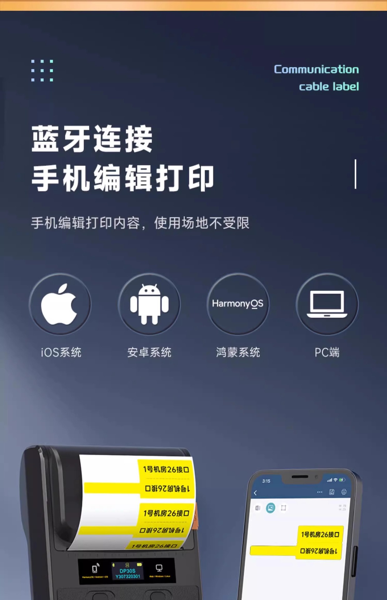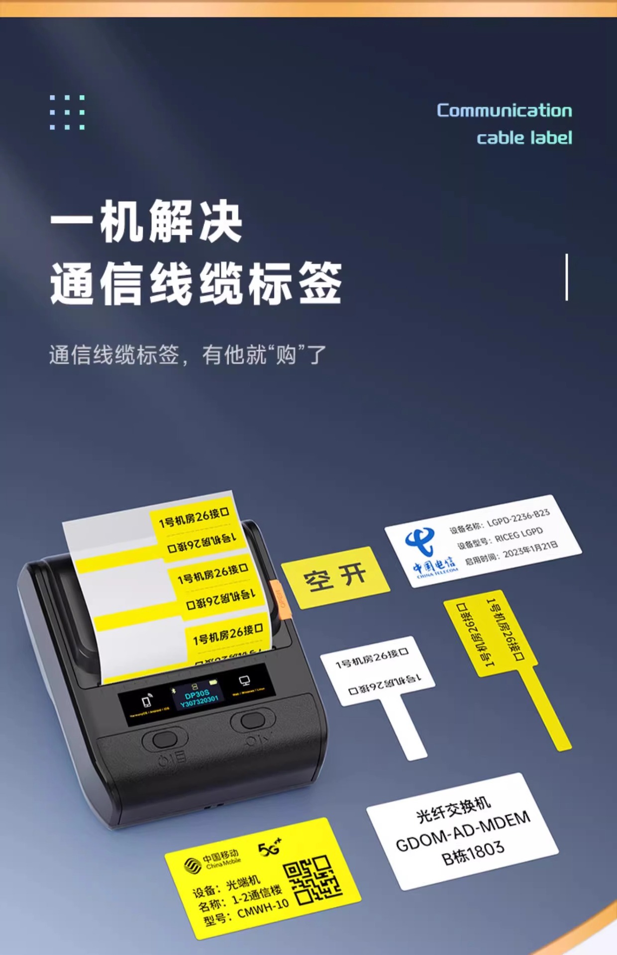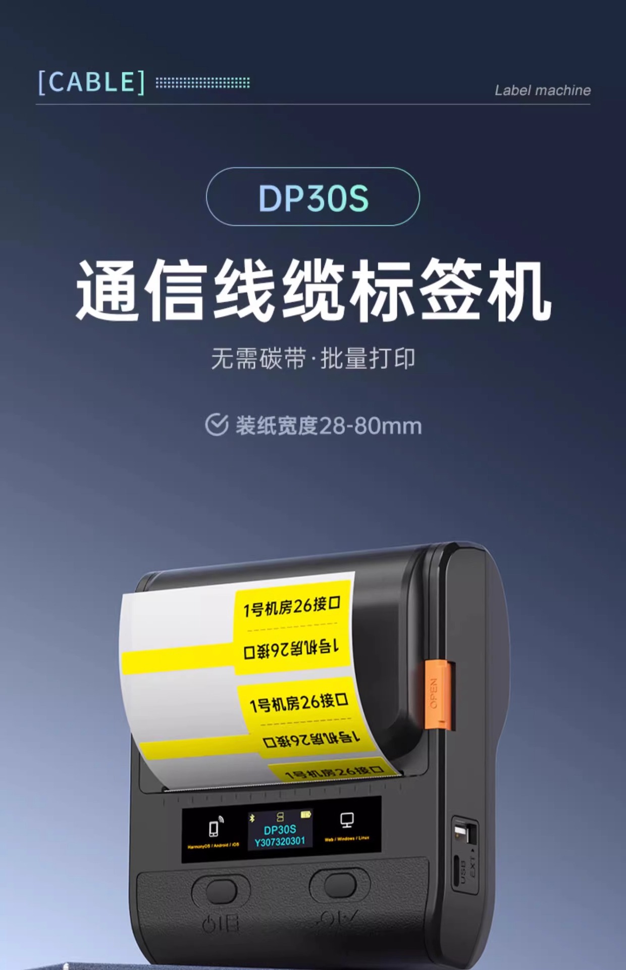 De Tong DP30S 통신 룸 케이블 라벨 프린터 휴대용 소형 휴대용 모바일 통신 광섬유