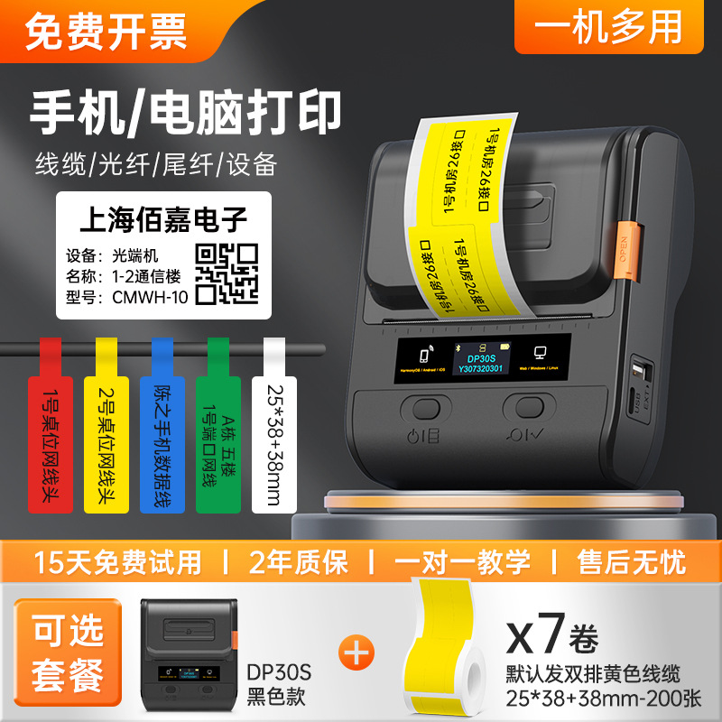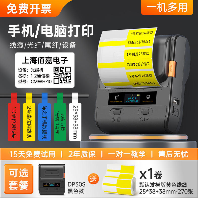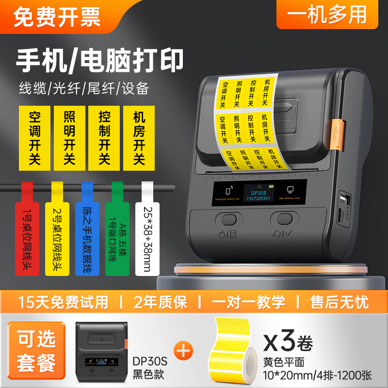 • DP30S [인쇄 폭 20-80mm + 고화질 컬러 스크린] + 무료 가로 케이블 라벨 롤 1개