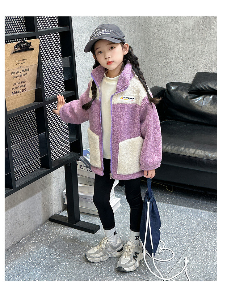 소녀 두꺼운 모직 스웨터 가을과 겨울 2024 새로운 스타일 미드 빅 어린이 스타일리스트 최고의 어린이 인터넷 Celebrous Lamb 캐시미어 재킷 트렌디스토어 가기