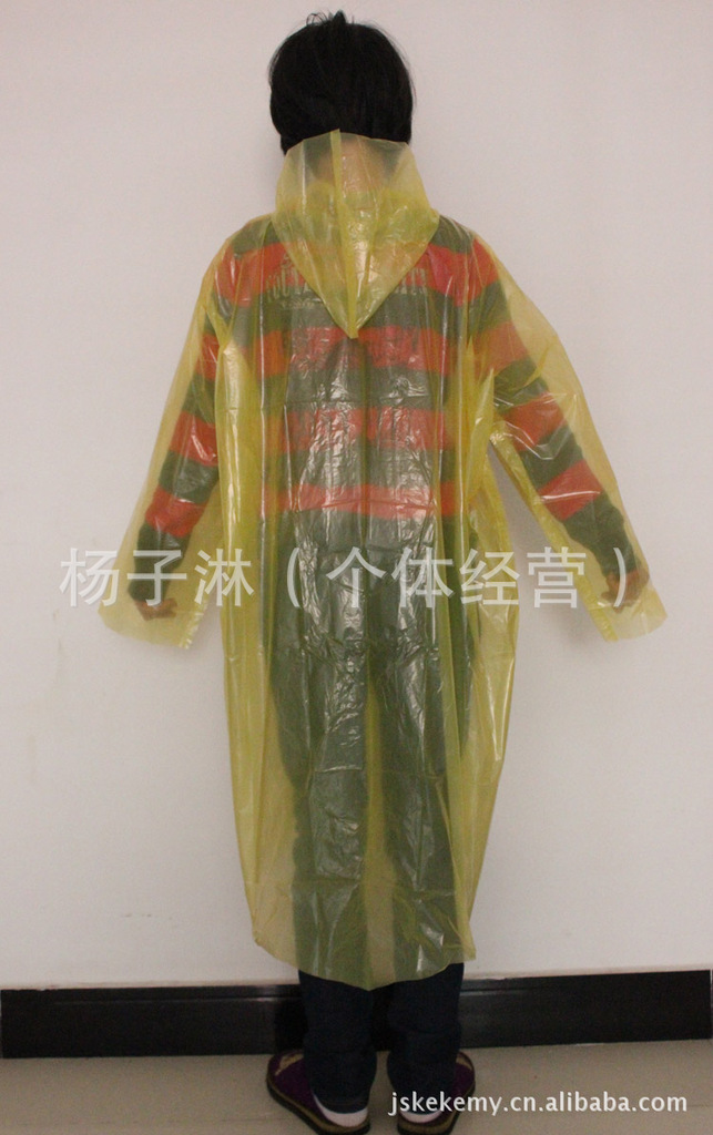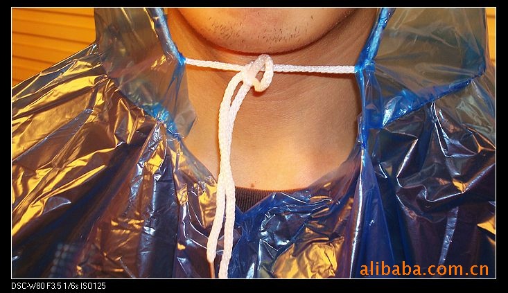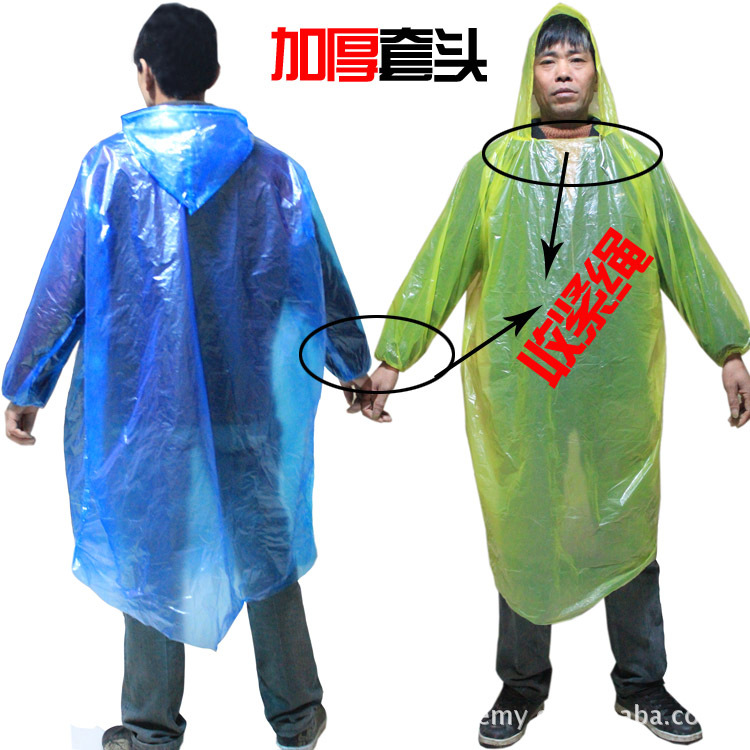 【商品名称】:套头式一次性雨衣带缩颈绳袖筋(加厚型)