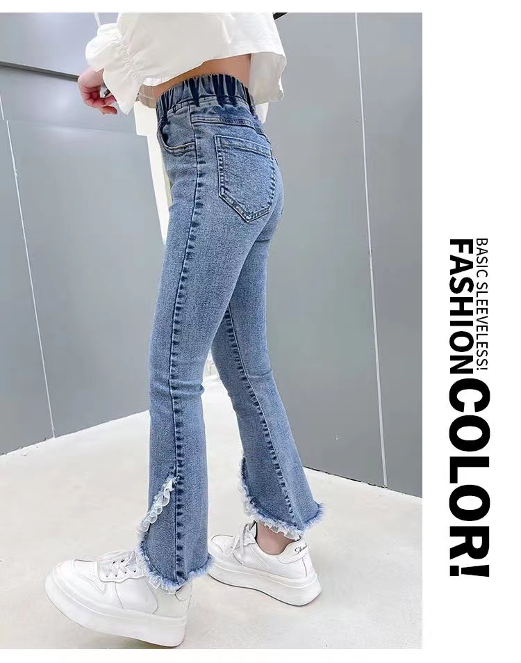 소녀 기모 청바지 가을과 겨울 2024 어린이 가을 소녀 두꺼운 경적 바지 공장 도매