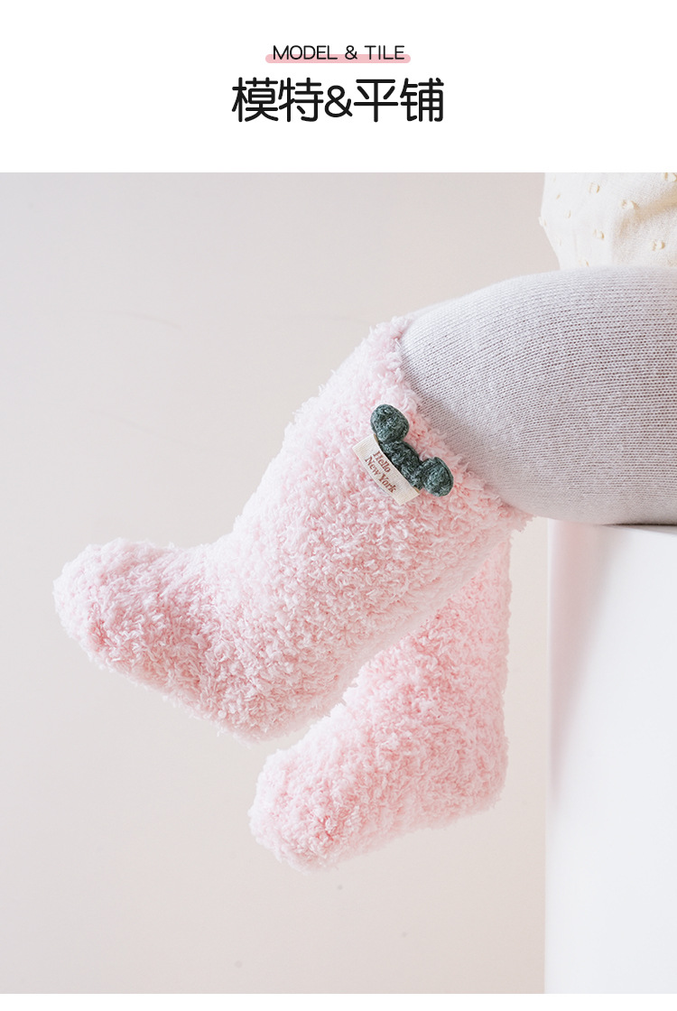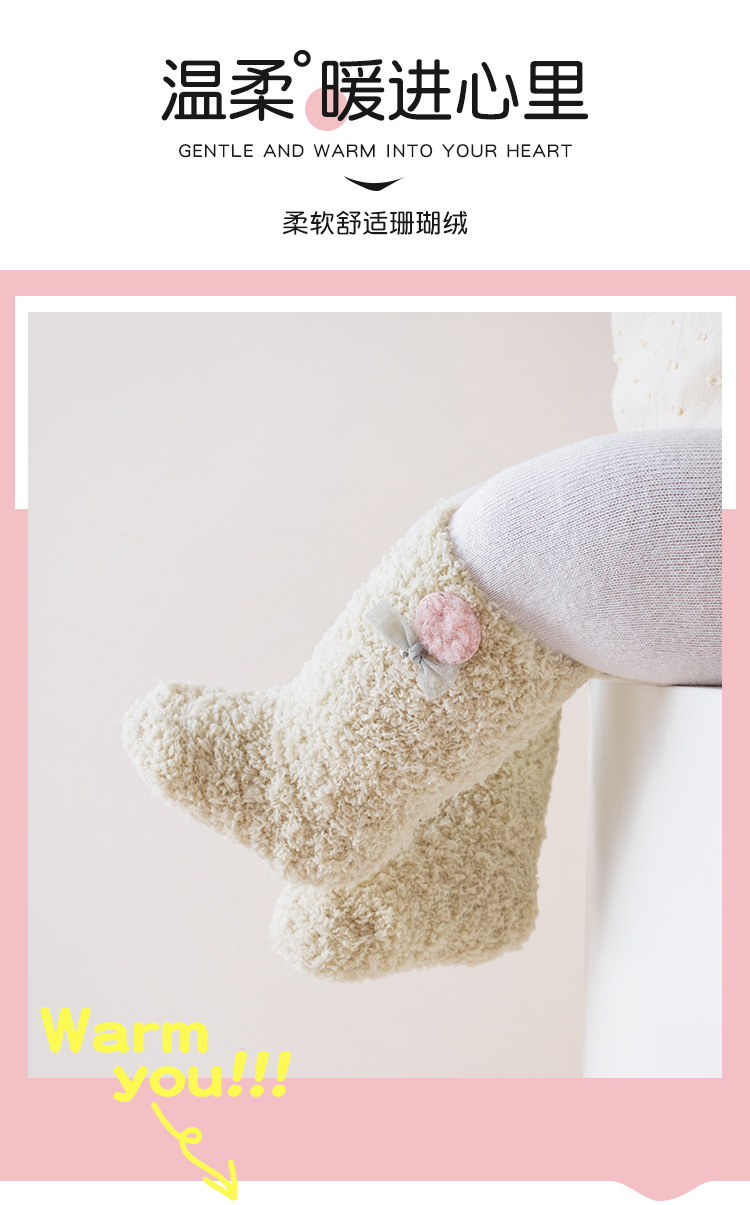 아기 반 벨벳 양말 겨울 기모 두꺼운 바닥 양말 따뜻한 아기 만화 산호 벨벳 어린이 양말스토어 가기