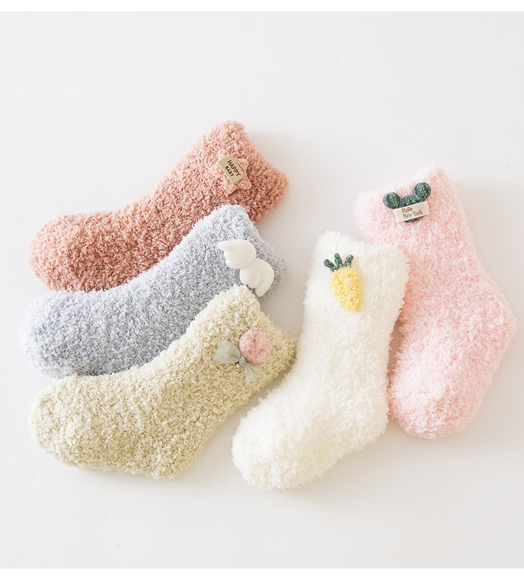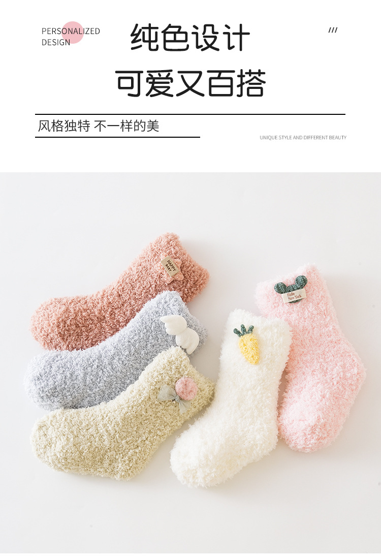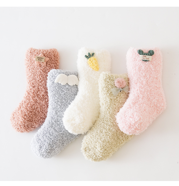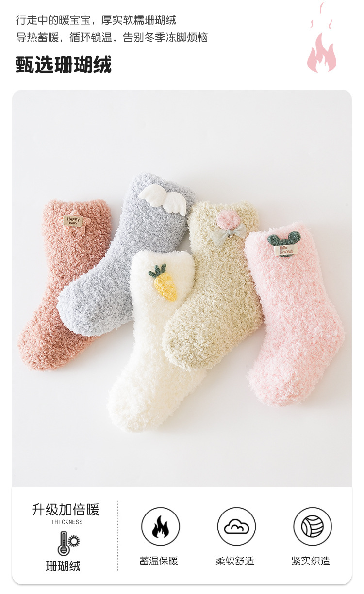 아기 반 벨벳 양말 겨울 기모 두꺼운 바닥 양말 따뜻한 아기 만화 산호 벨벳 어린이 양말