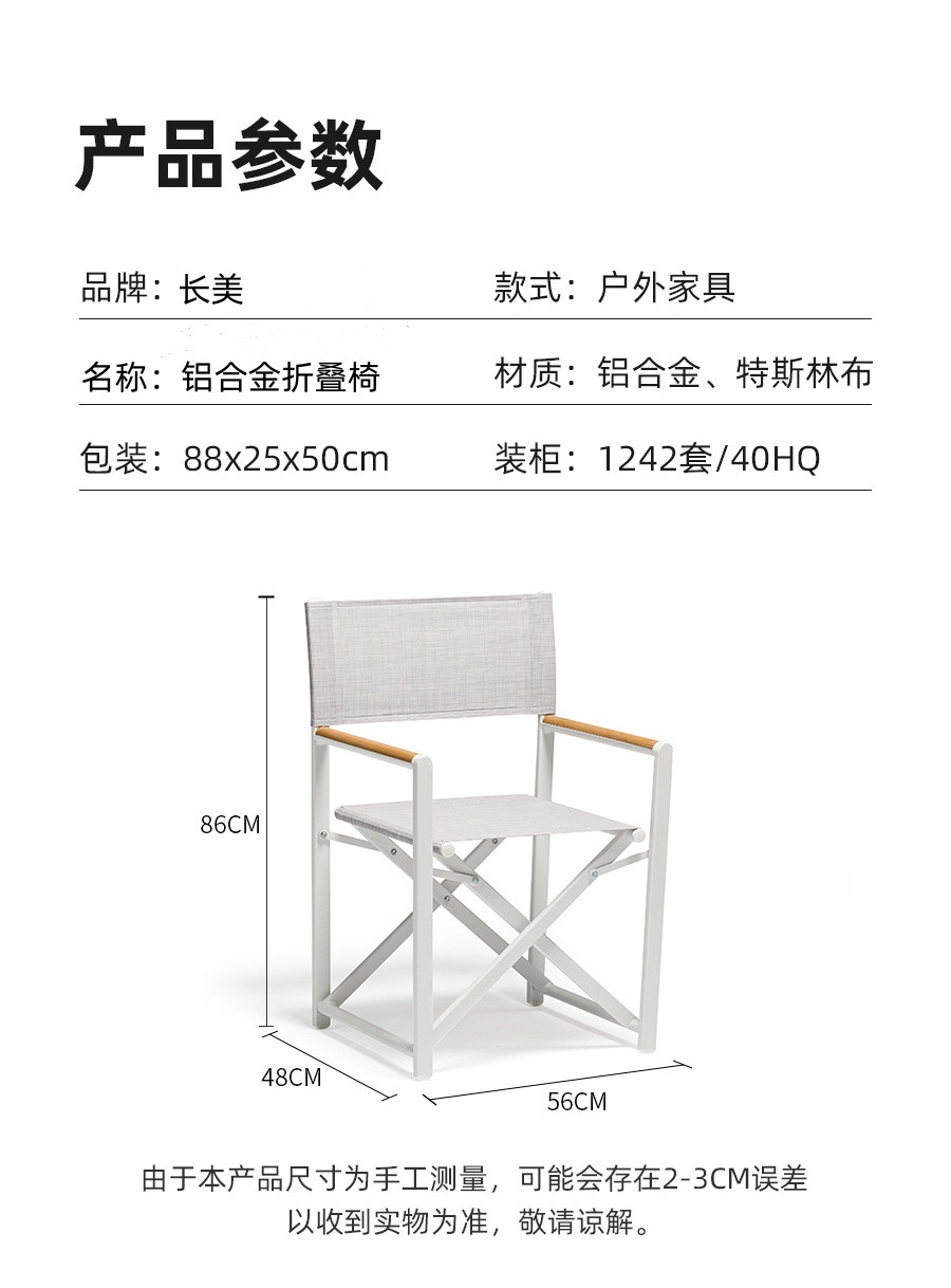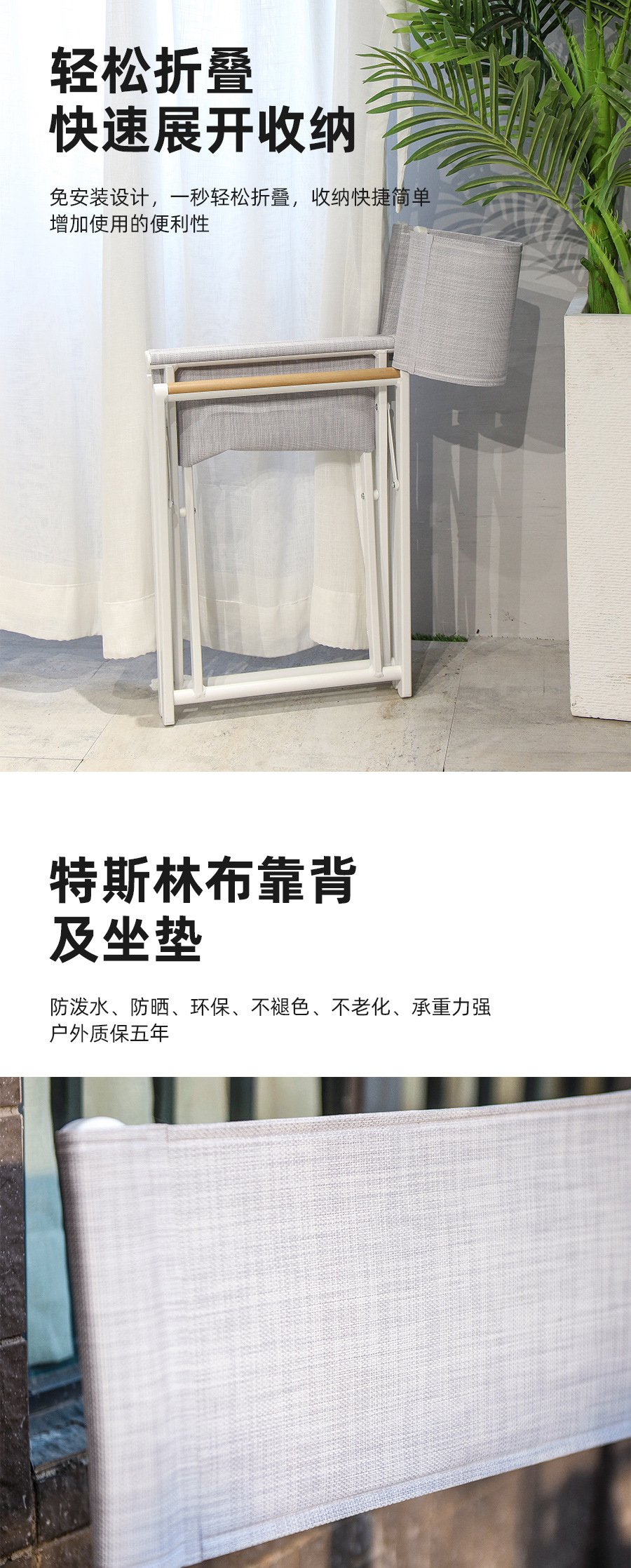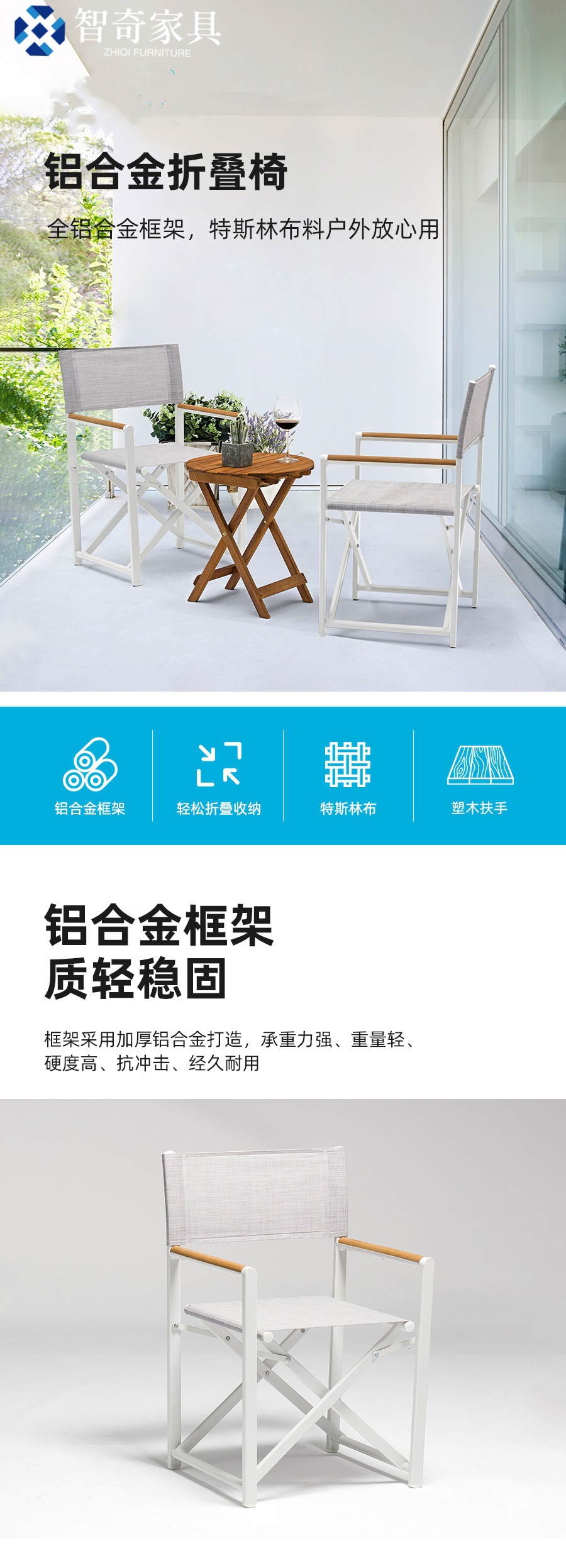 야외 알루미늄 합금 접이식 발코니 의자 팔걸이 레저 플라스틱 우드 테슬린 의자 등받이 휴대용 감독 의자 맞춤형