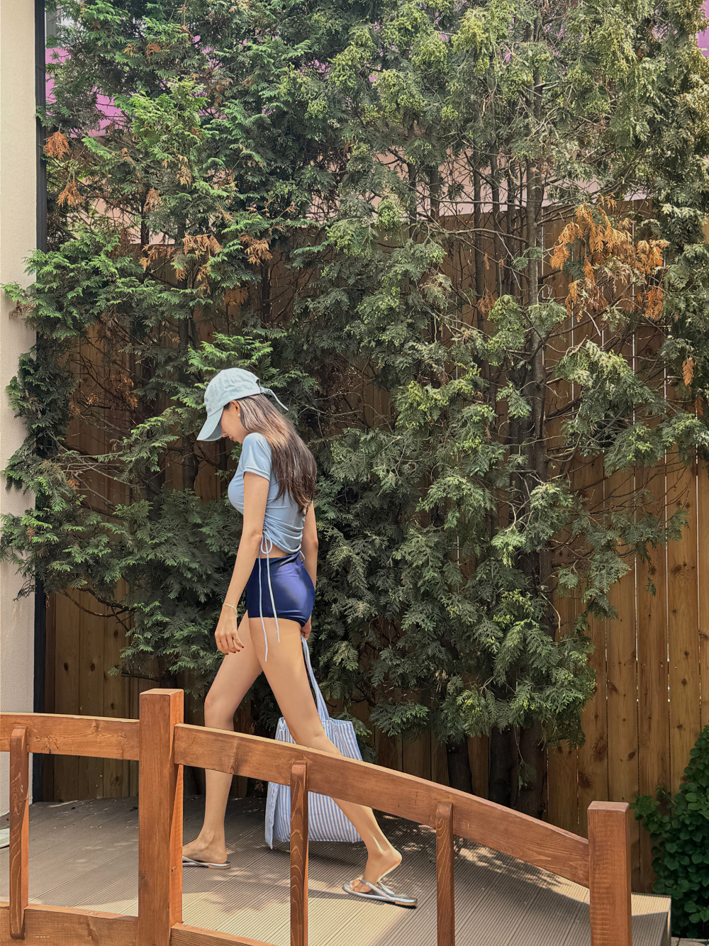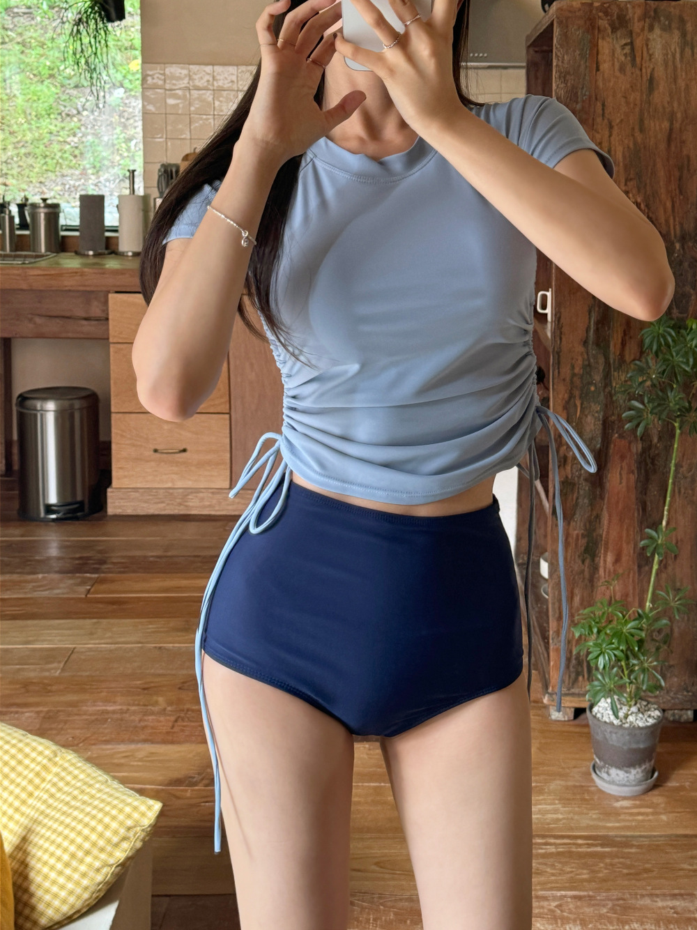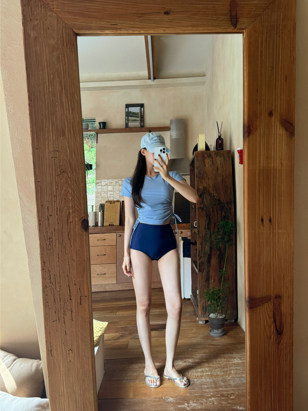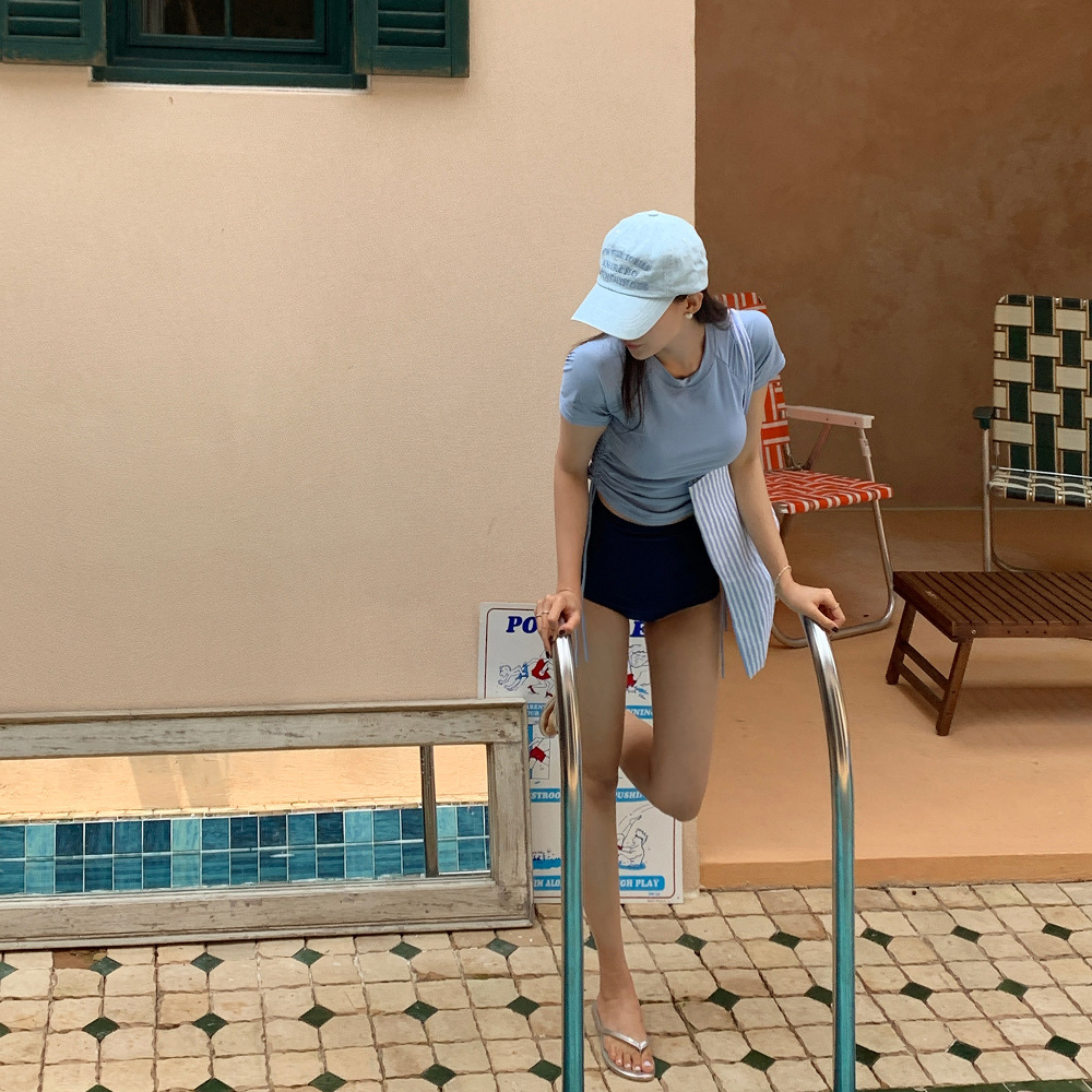 스플릿 수영복 여름 스포츠 슬리밍 하이 웨이스트 스트레치 반바지 핫 소녀 엉덩이 리프팅 대비 색상 반팔 일본 및 한국 온천 수영복스토어 가기