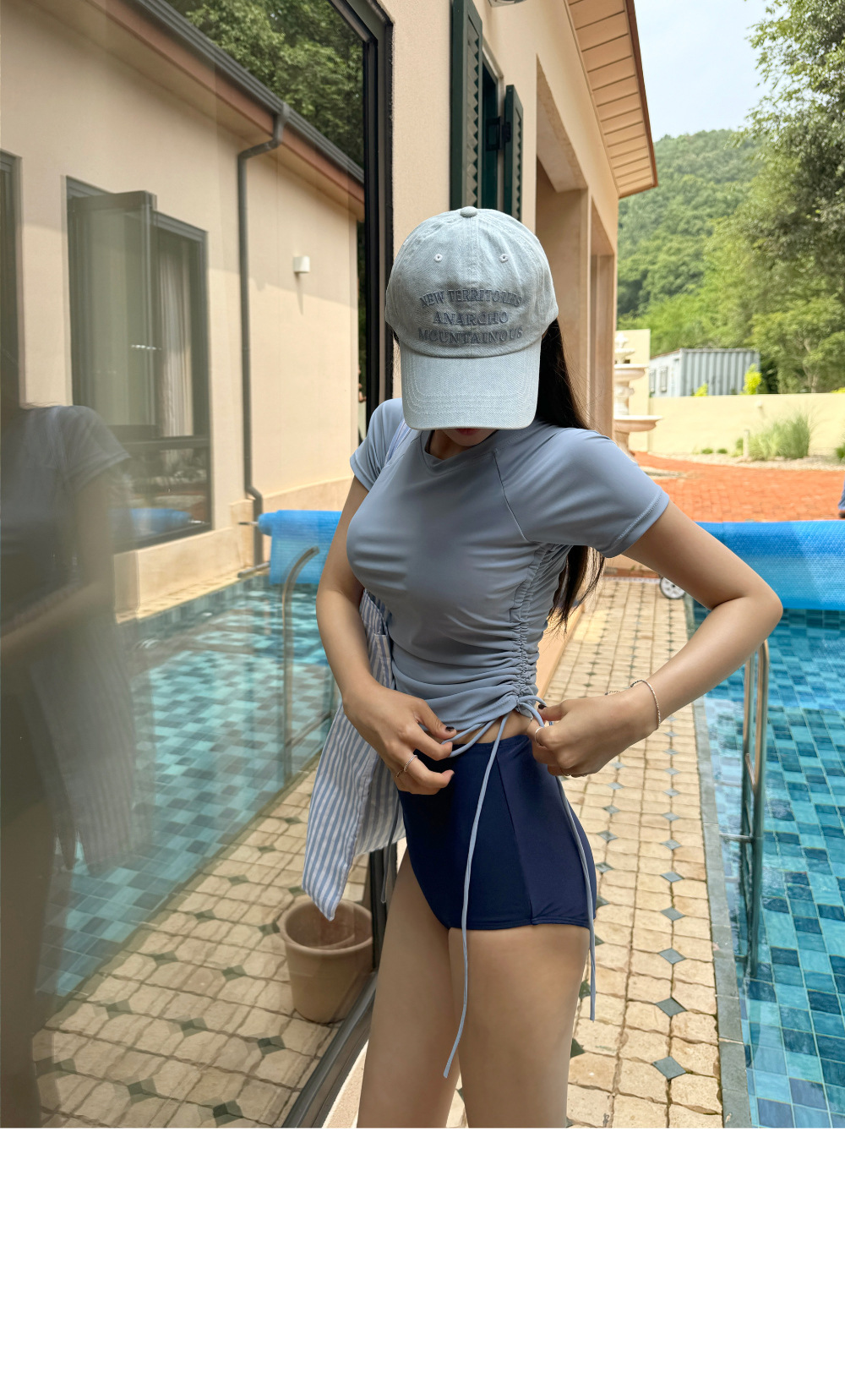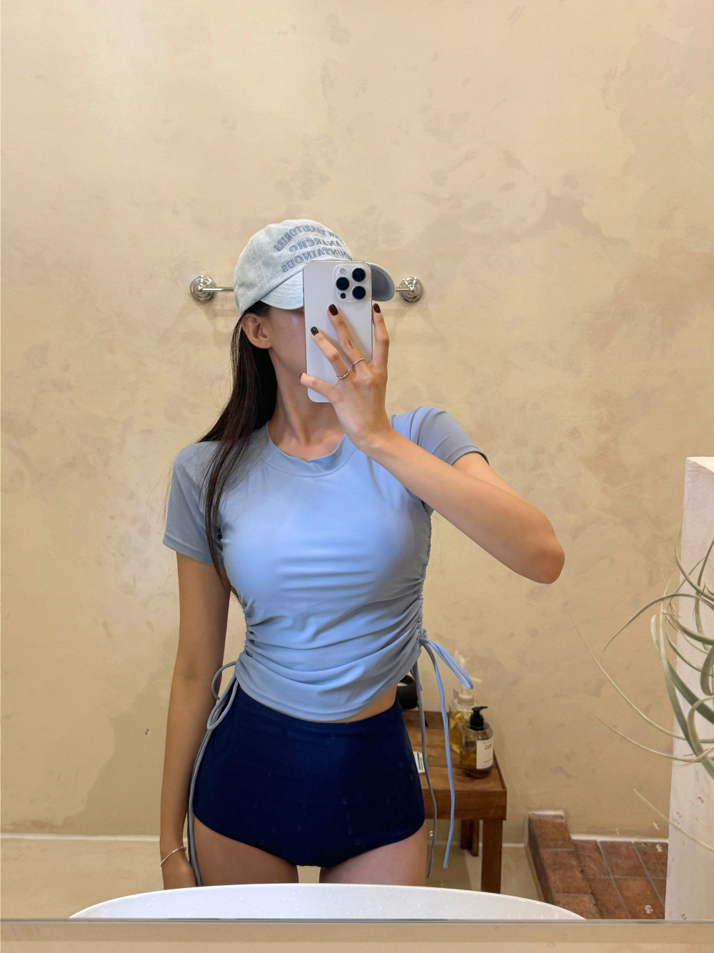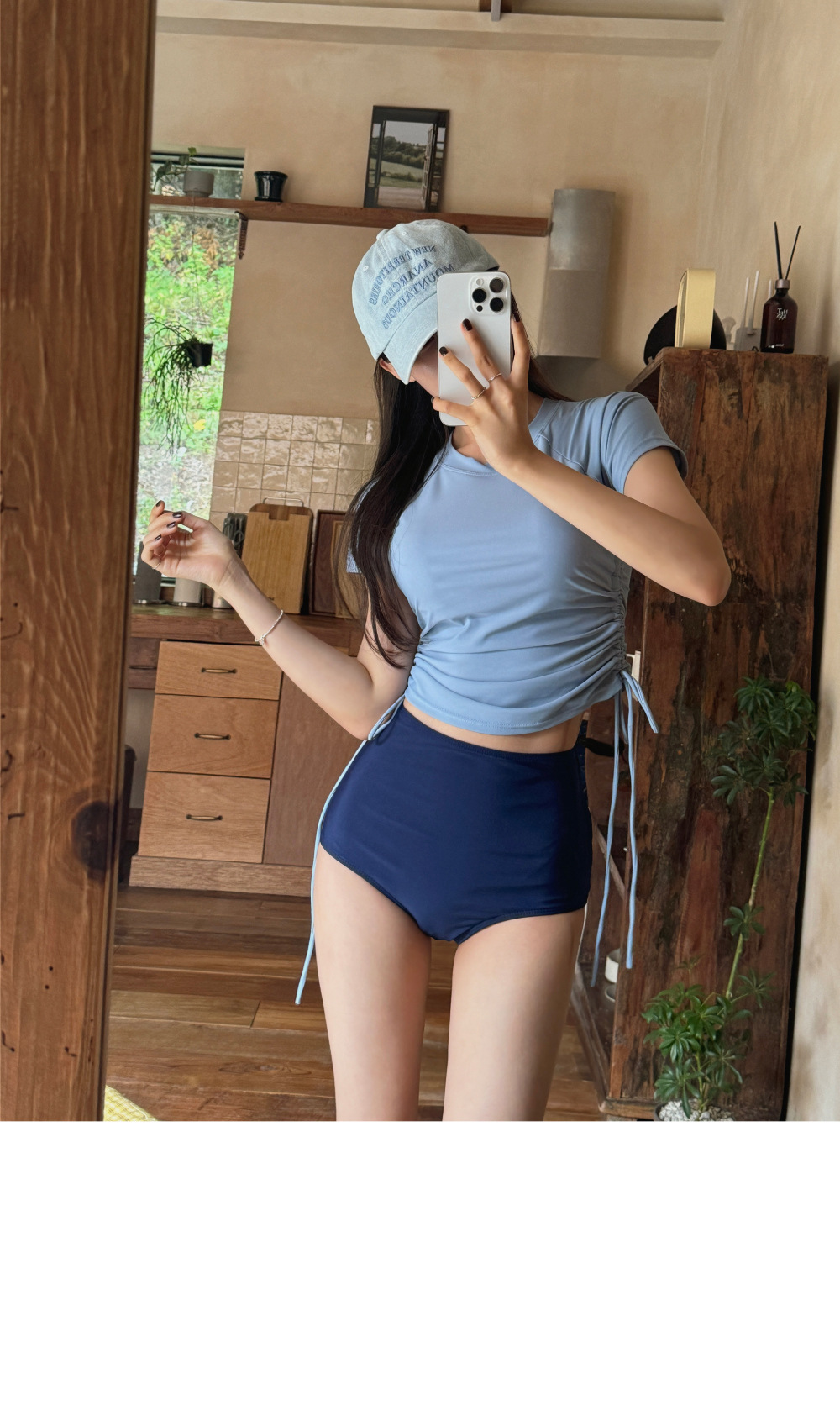 스플릿 수영복 여름 스포츠 슬리밍 하이 웨이스트 스트레치 반바지 핫 소녀 엉덩이 리프팅 대비 색상 반팔 일본 및 한국 온천 수영복스토어 가기