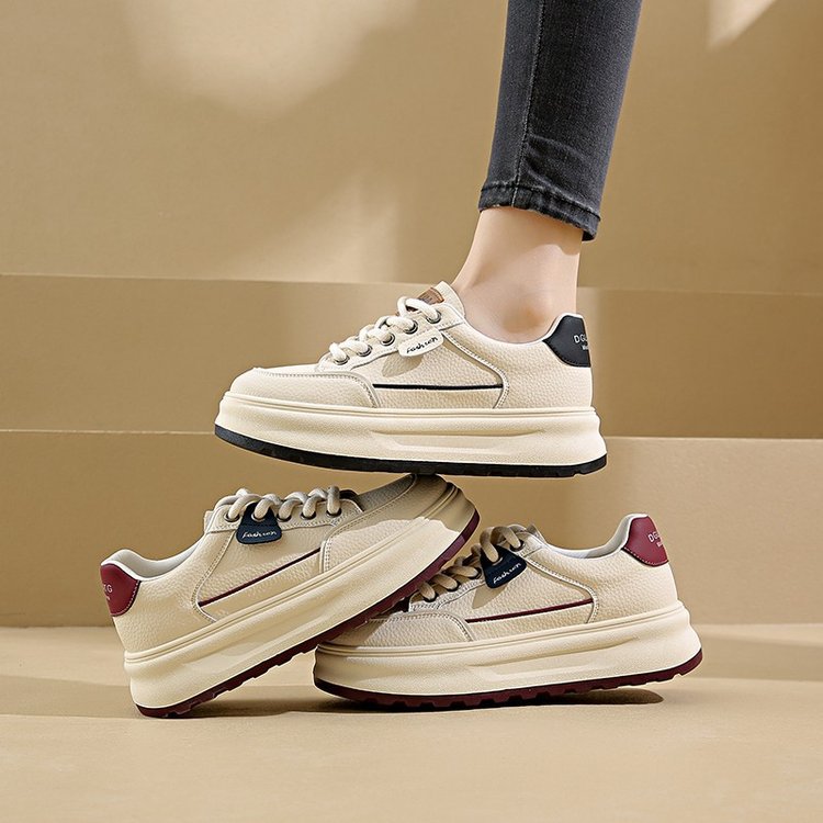 2024 년 가을과 겨울 새로운 한국 스타일, 통기성 대외 무역 화이트 신발 여성 로우 탑 캐주얼 보드 신발 플랫폼 신발