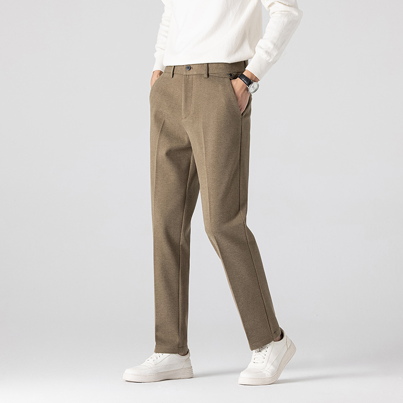 겨울 남성용 우아한 모직 바지, 고급 따뜻한 남성 캐주얼 바지, 가을 겨울 스트레이트 레그 롱 슈트 남성 바지스토어 가기