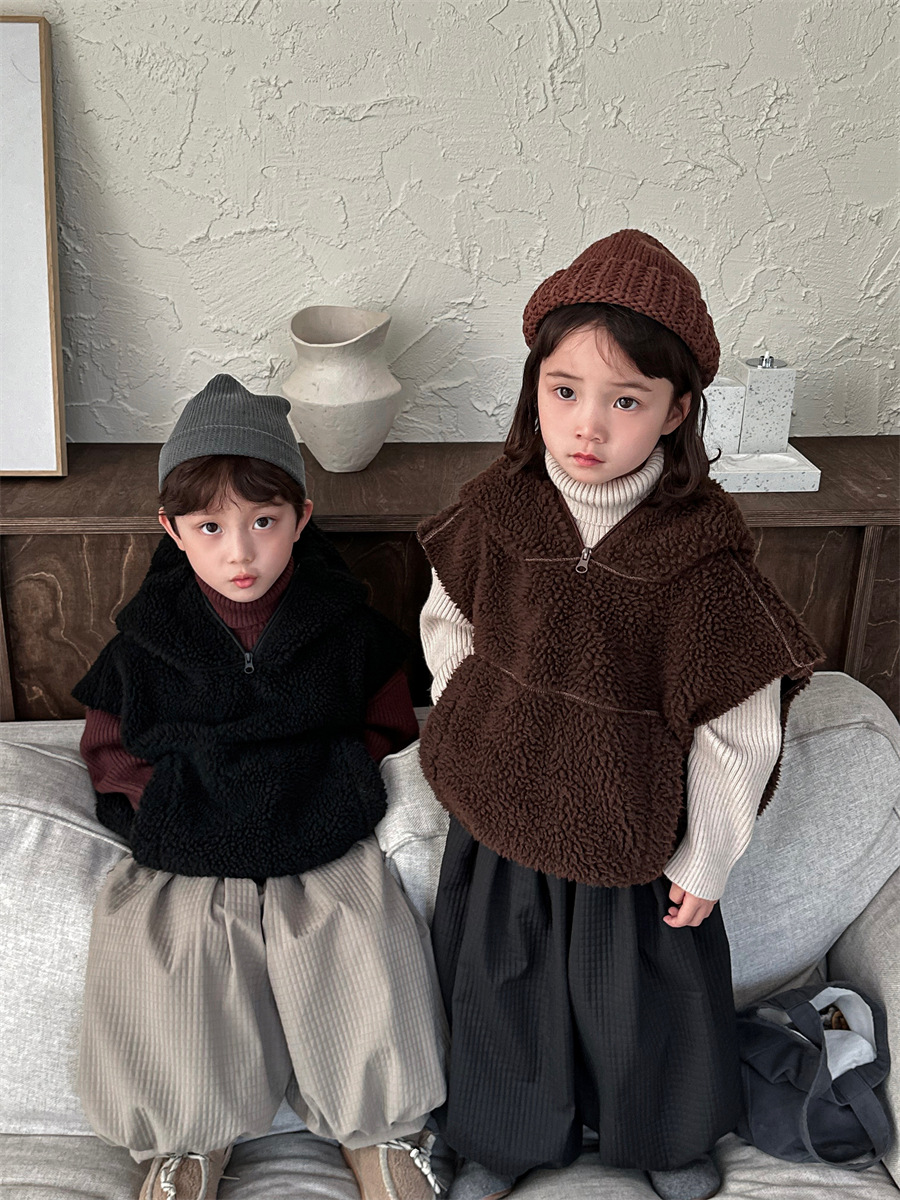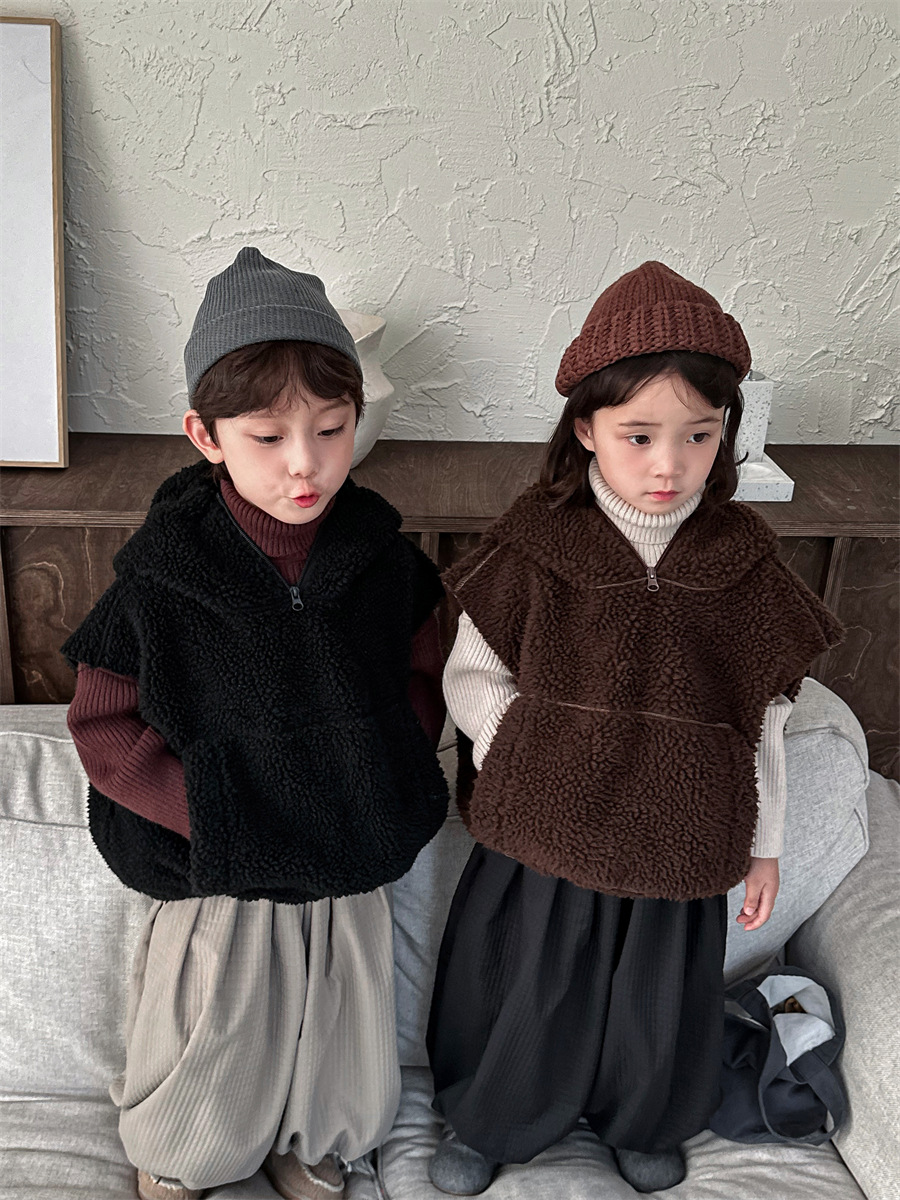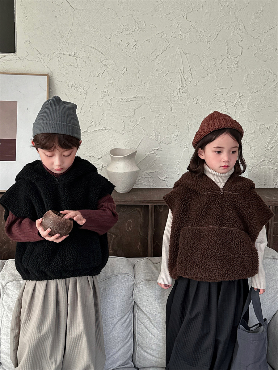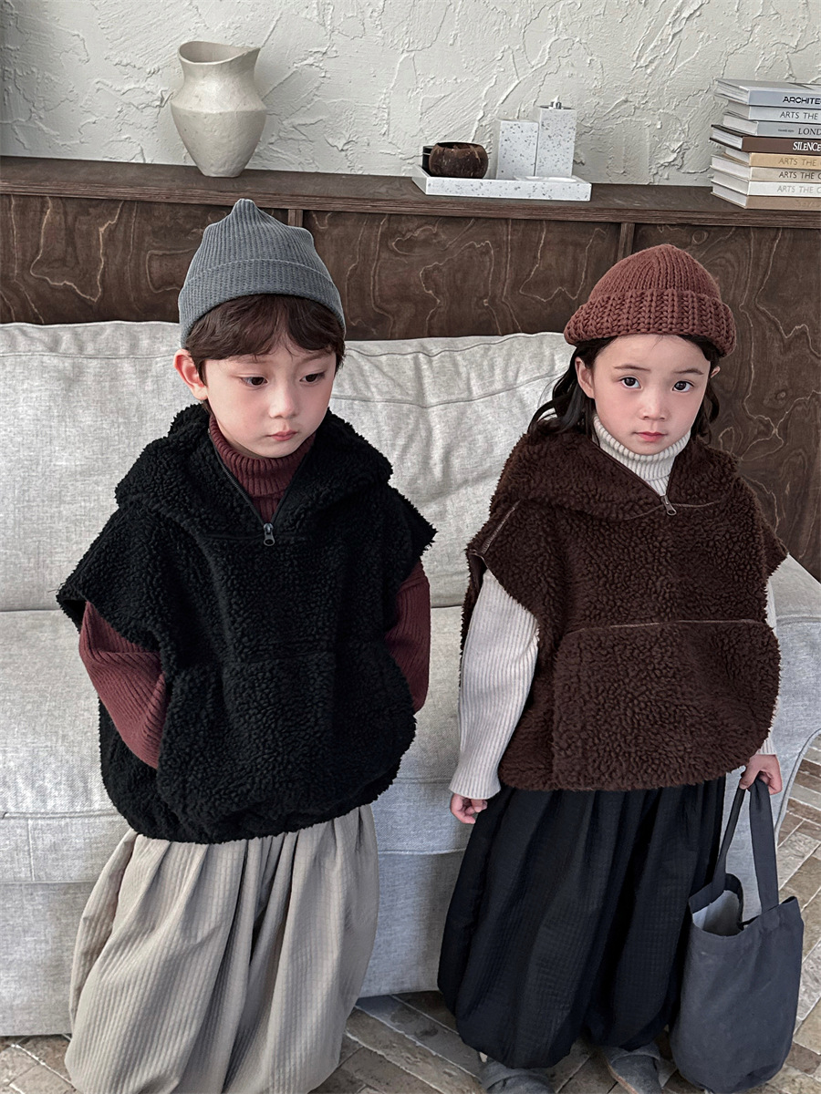 지아예 어린이용 2025 겨울 두꺼운 양털 조끼 남녀공용 루즈핏 따뜻한 두꺼운 조끼 코트스토어 가기