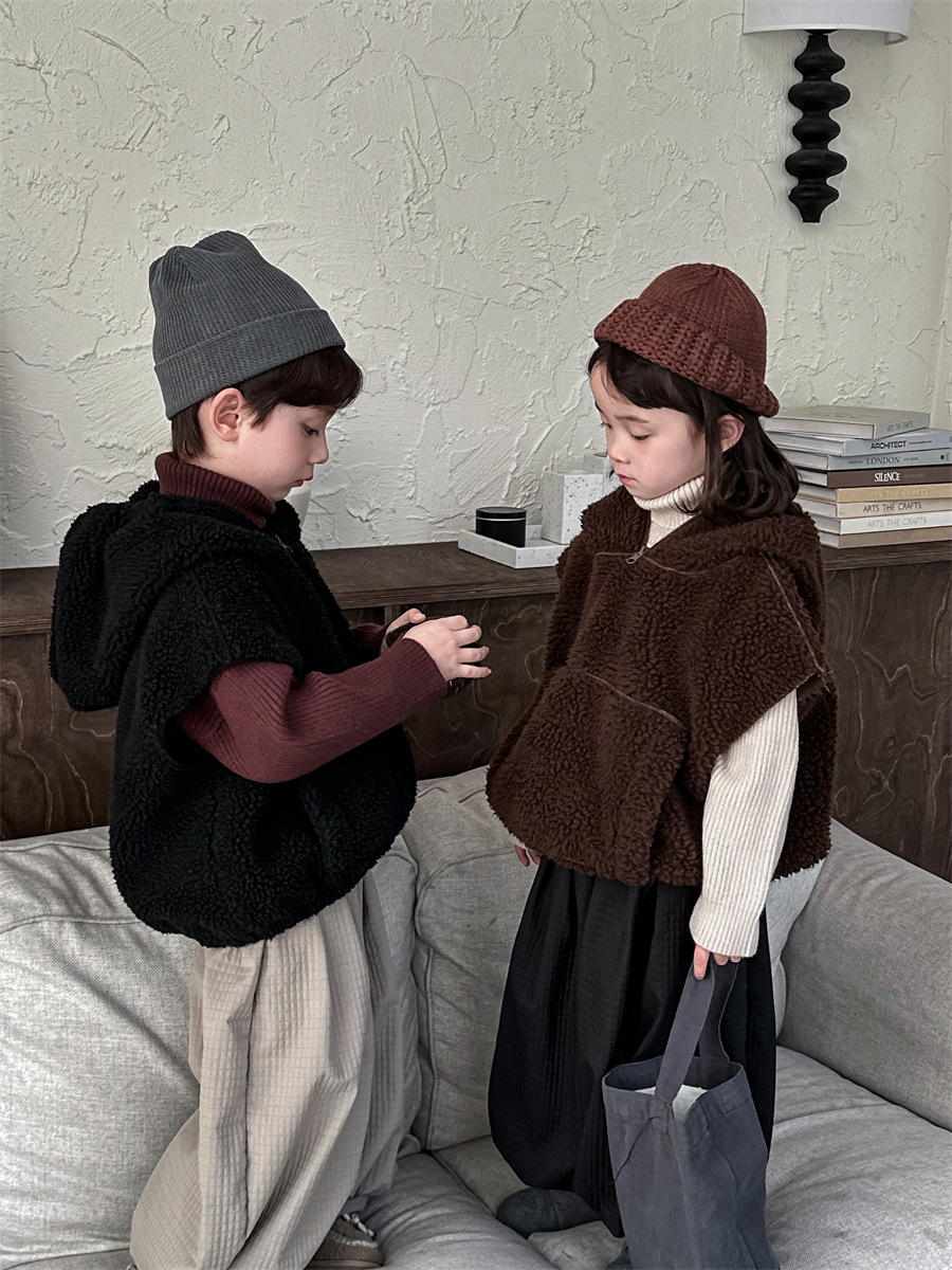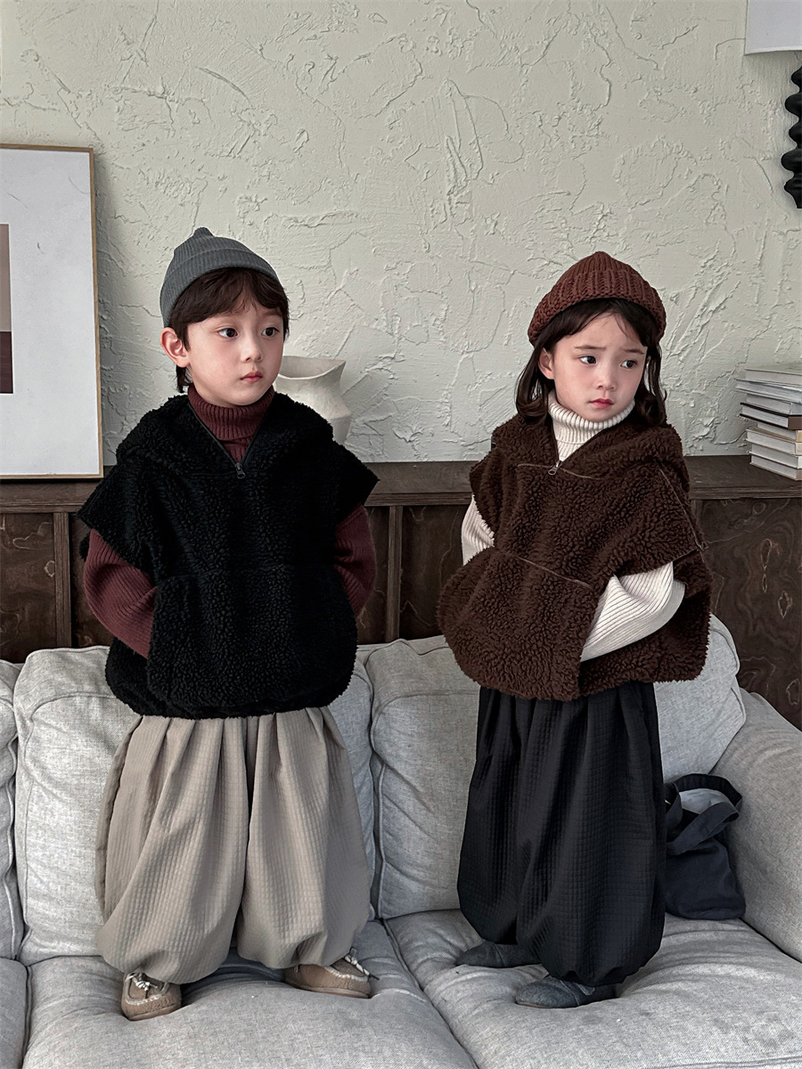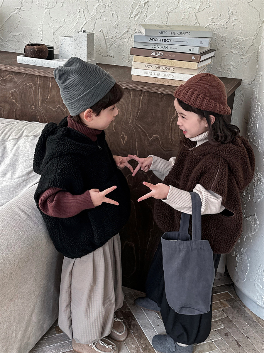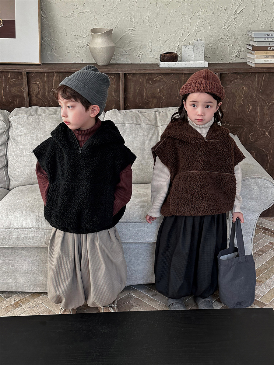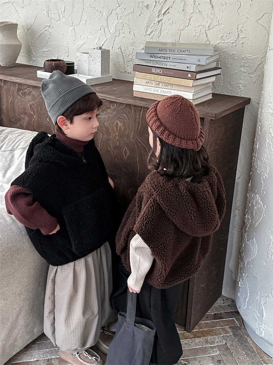 지아예 어린이용 2025 겨울 두꺼운 양털 조끼 남녀공용 루즈핏 따뜻한 두꺼운 조끼 코트스토어 가기