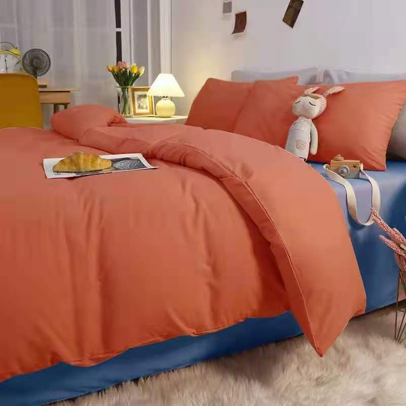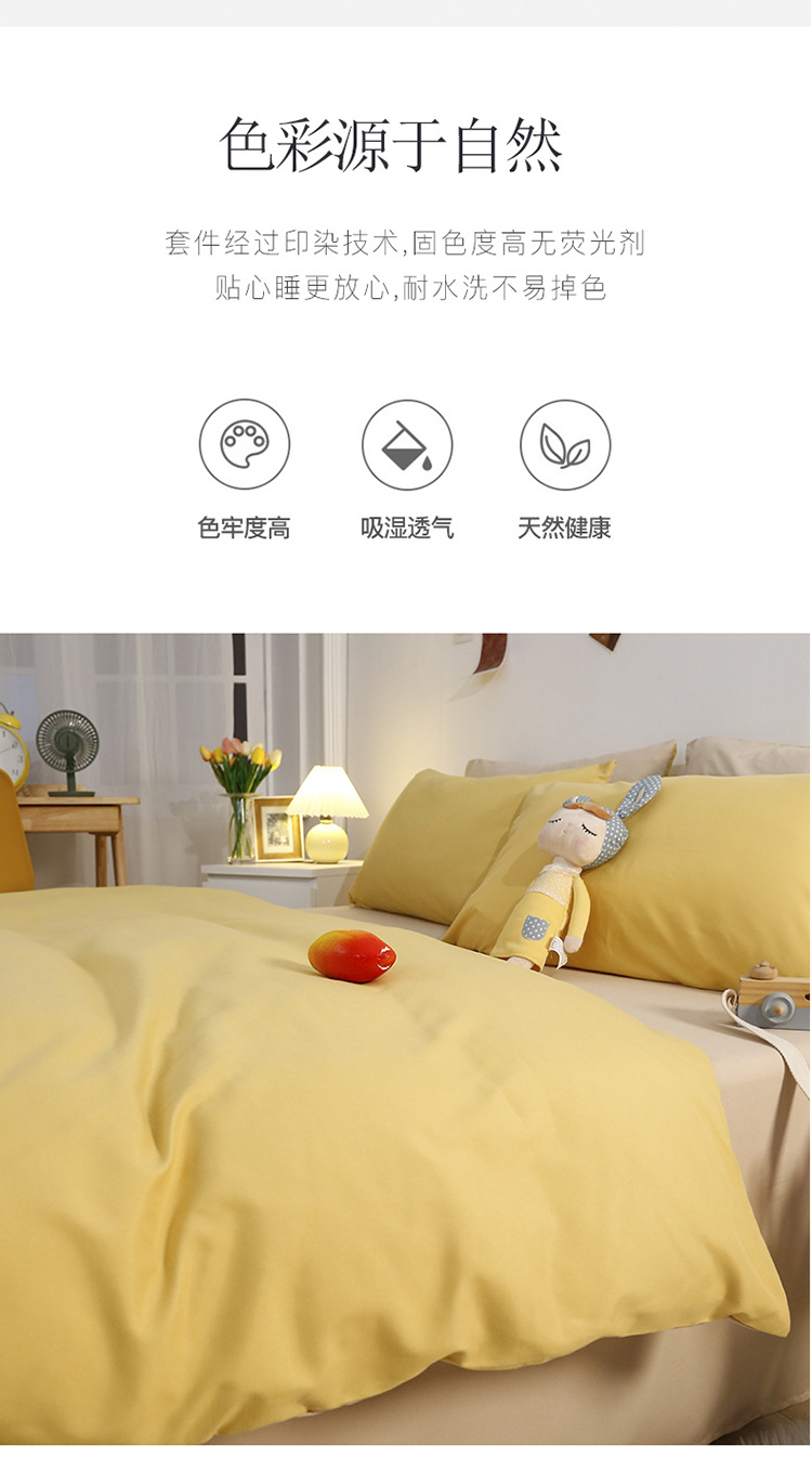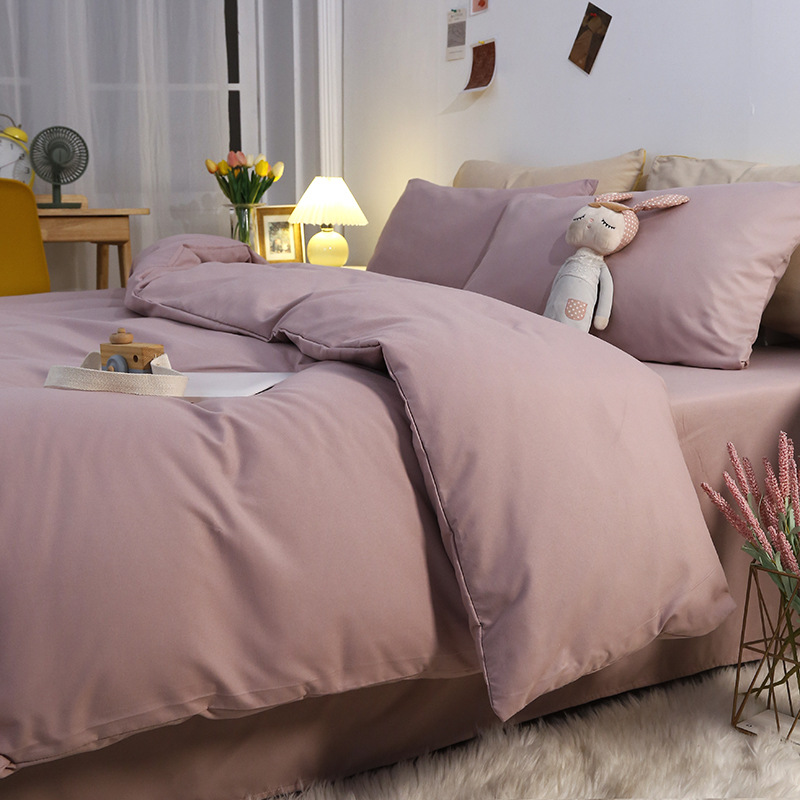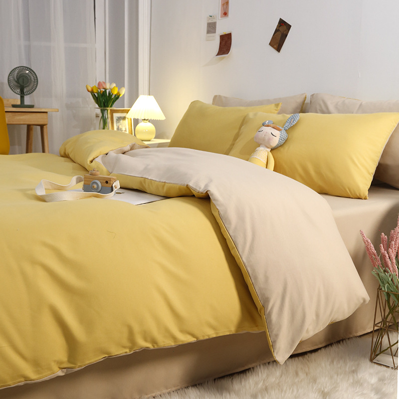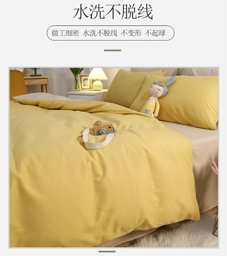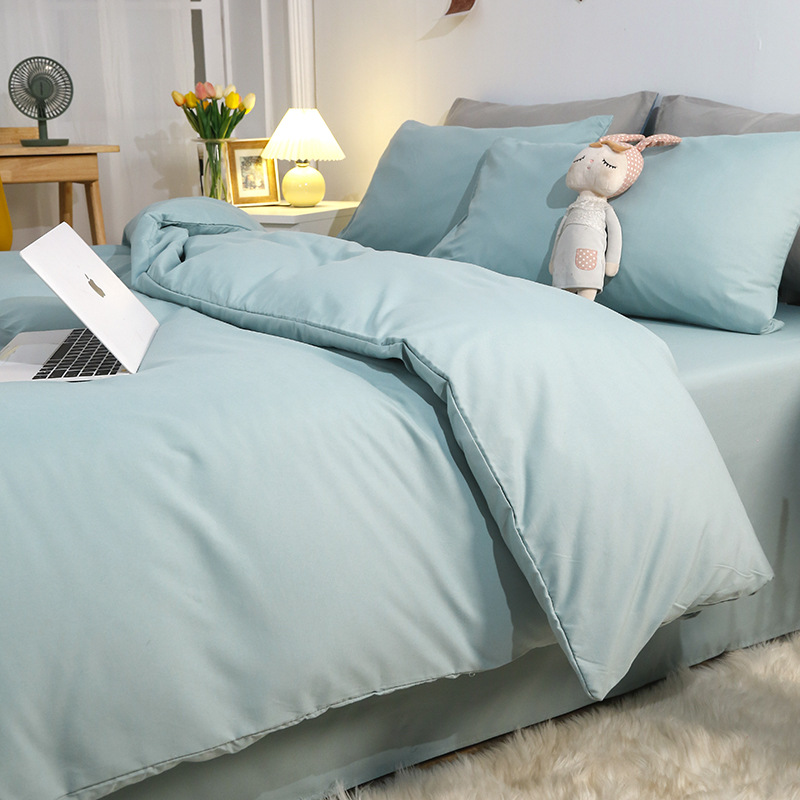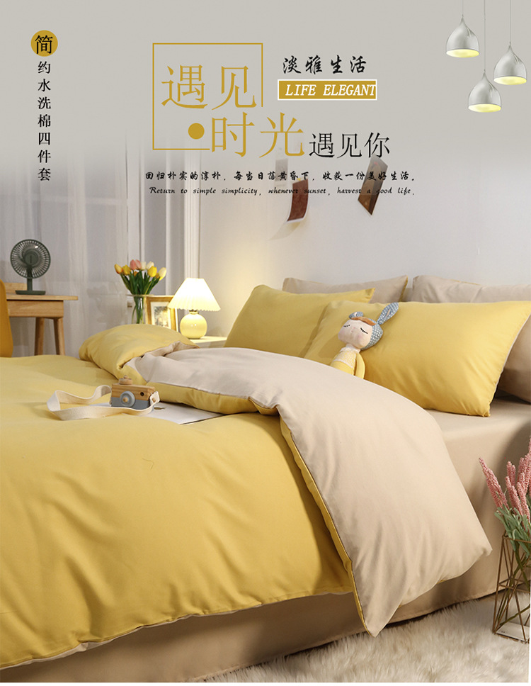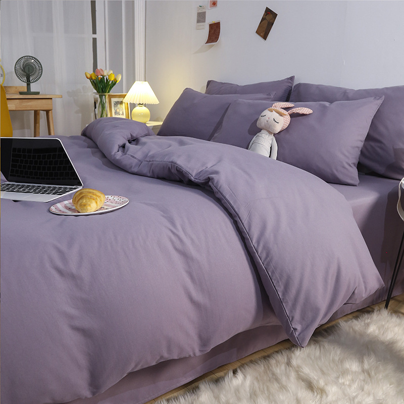 2024 새로운 피부 친화적 인 세척 코튼 4 피스 세트 간단한 퀼트 커버 침대 시트 3 피스 세트 싱글 더블 솔리드 컬러 침구스토어 가기