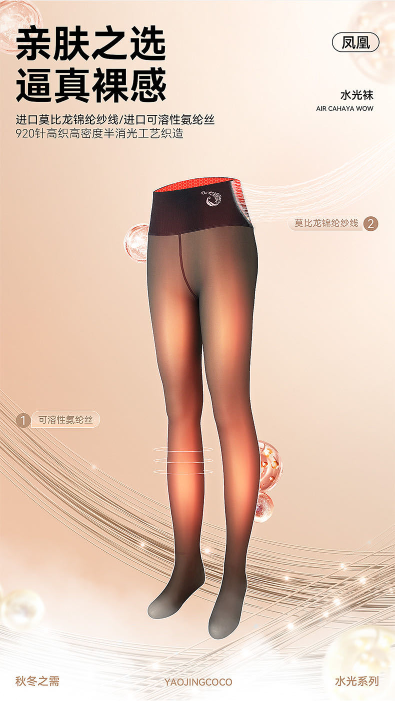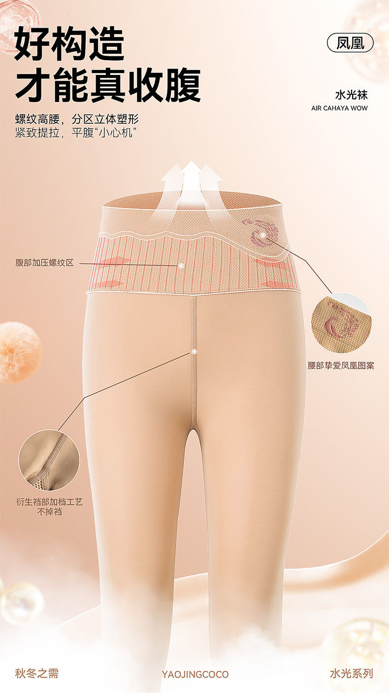 요정 코코 피닉스 투명 광택 양말 겨울용 플러스 벨벳 블랙 투명 피부색 레깅스 자연스러운 살색 광택 다리 마법의 양말