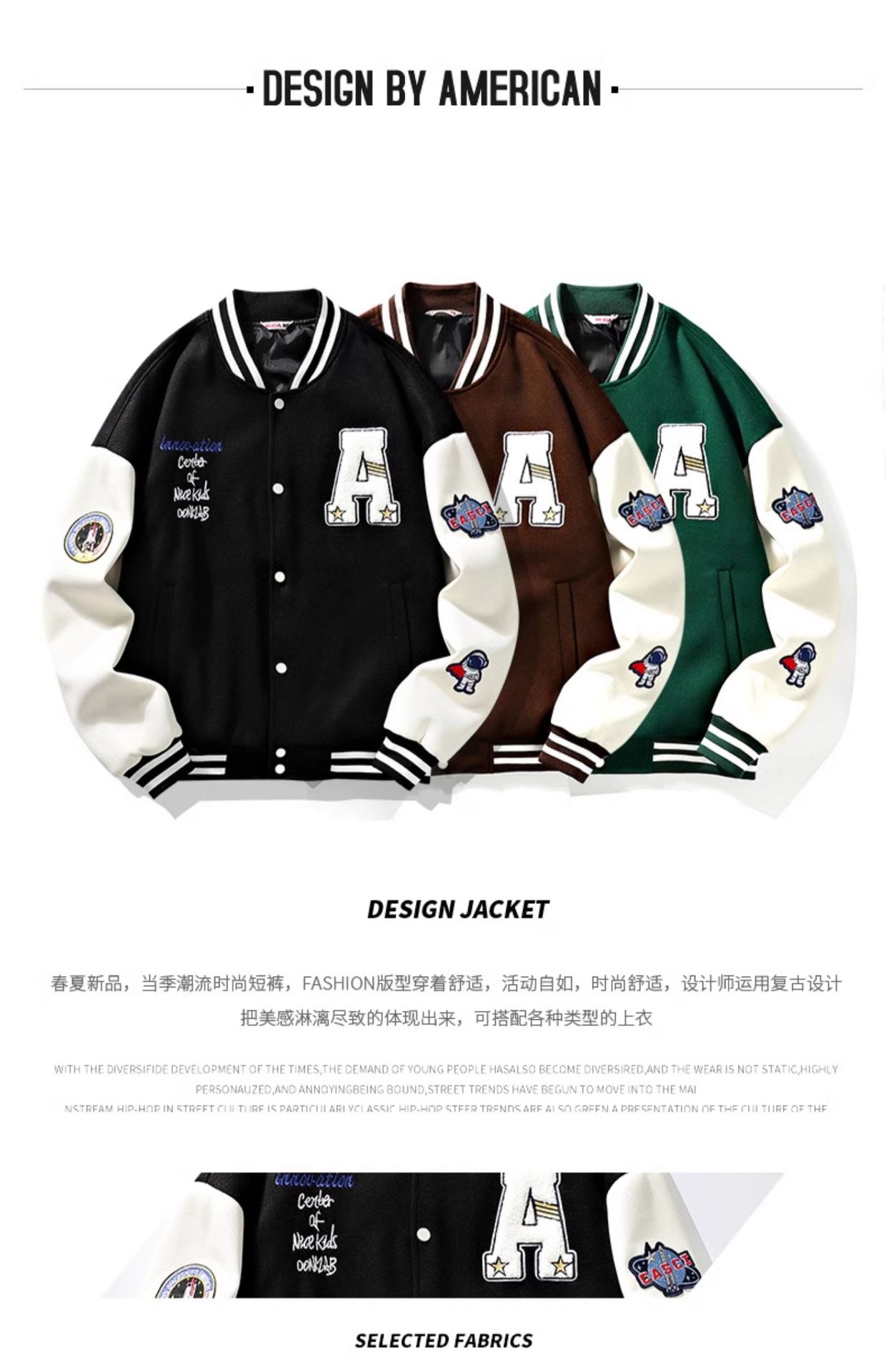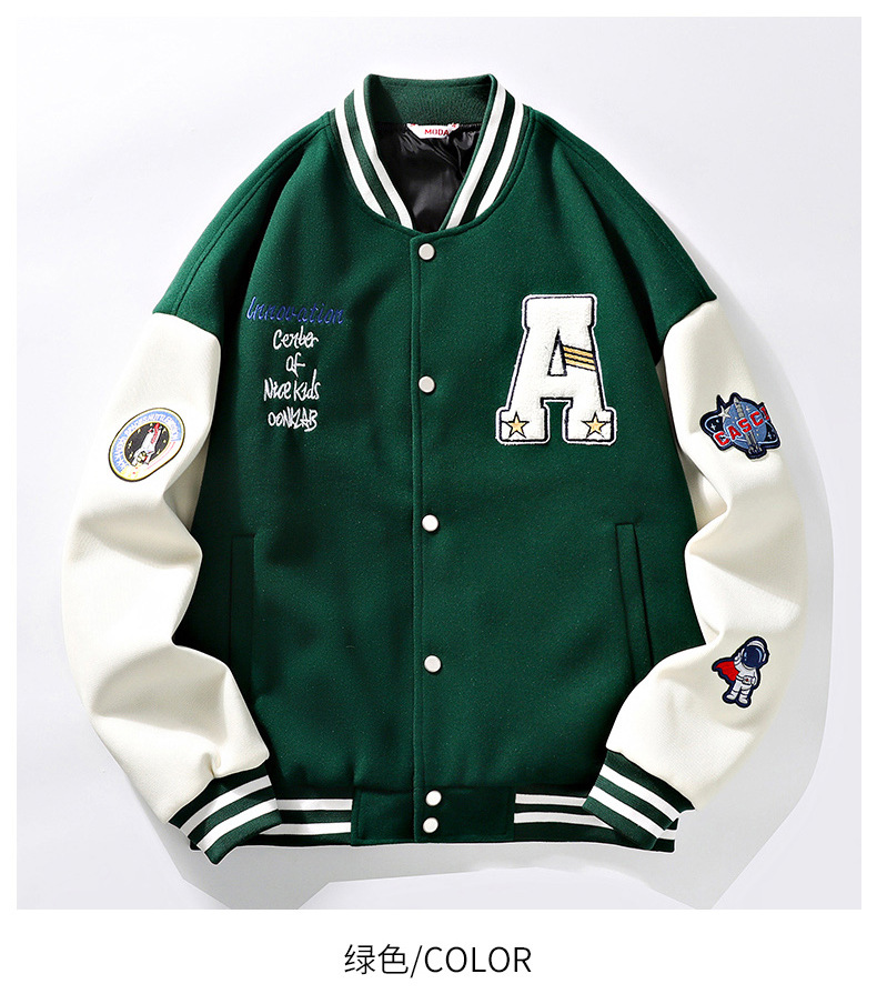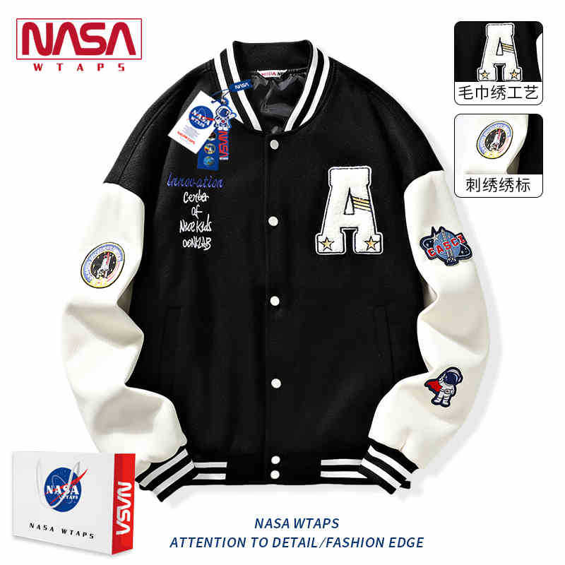 NASA 남자 가을과 겨울 2024 아메리칸 스타일 재킷 패션 브랜드 잘 생긴 느슨한 야구 세트 누빔안감 캐주얼 자켓