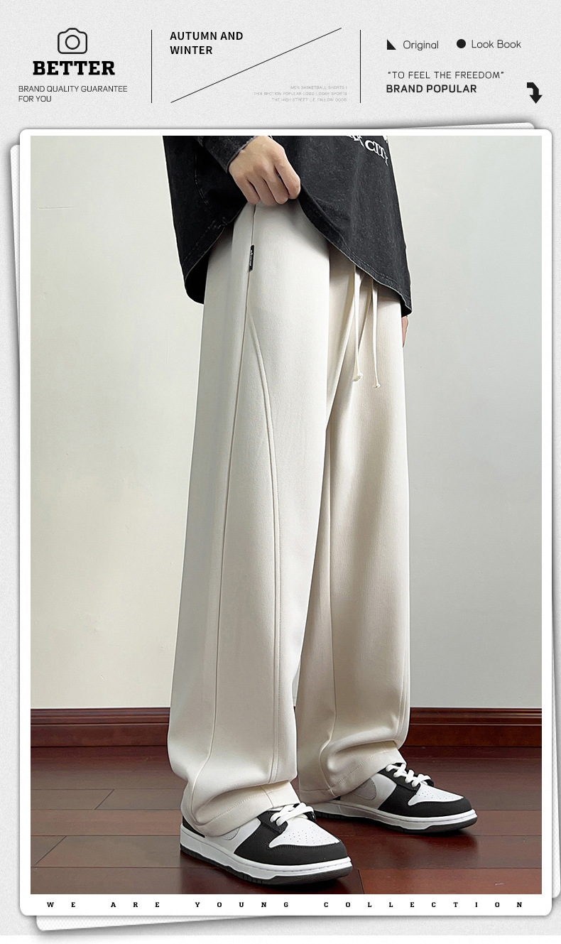 커브드 팬츠 트렌디 브랜드 스트레이트 레그 스웨트팬츠 남성용 봄 가을 2025 신상 스포츠 캐주얼 팬츠 루즈핏 남성용 긴바지스토어 가기
