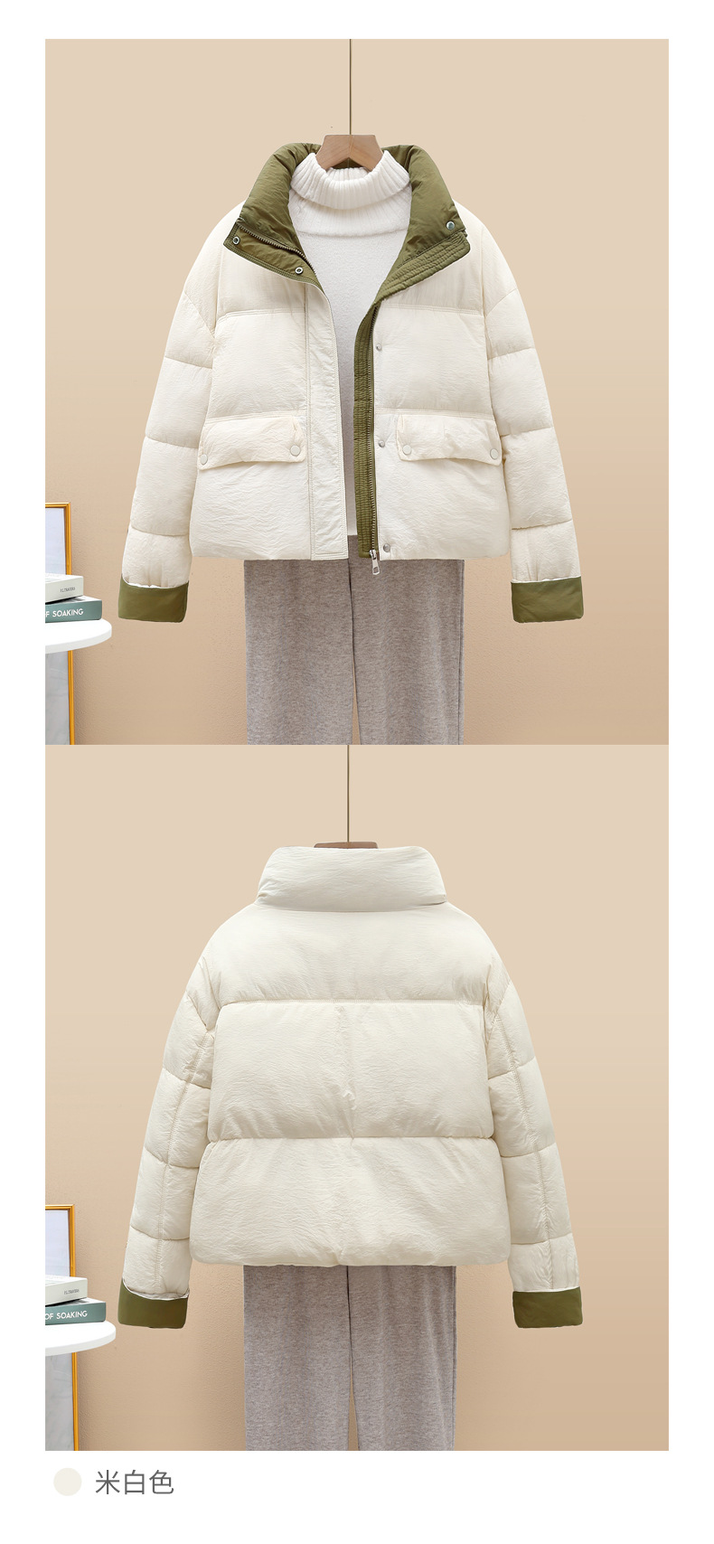 폭발 2024 겨울 새로운 패션 다운 코튼 패딩 재킷 여성의 짧은 컬러 매칭 두꺼운 빵 의류 작은 코트 한국어 버전스토어 가기