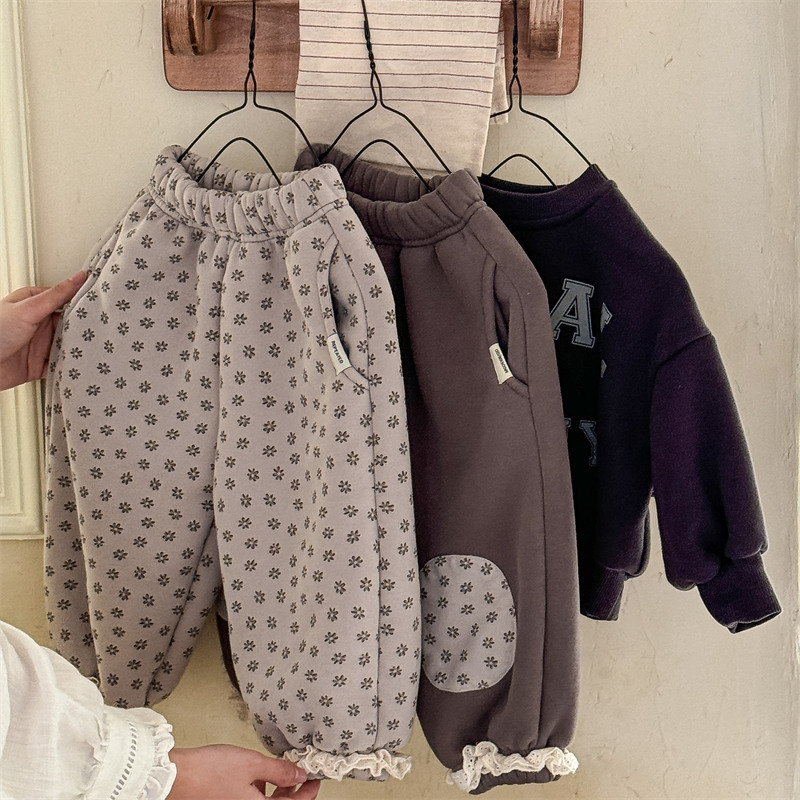 2025 아동복 가을 겨울 의류 아동용 한국 스타일 플리스 스웨트팬츠 긴바지 여아 가을옷 남아 겨울바지 5716