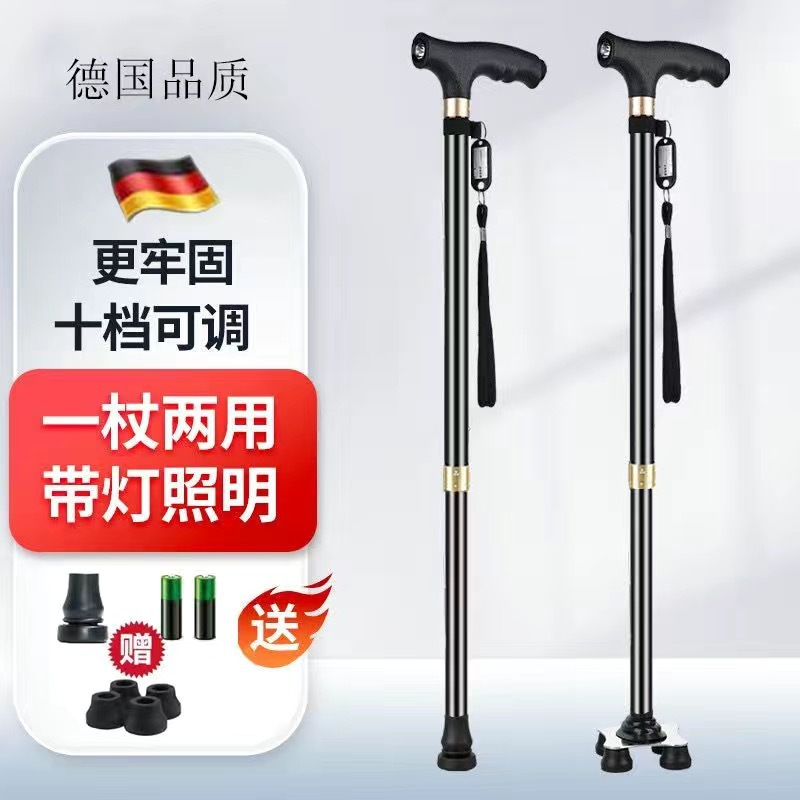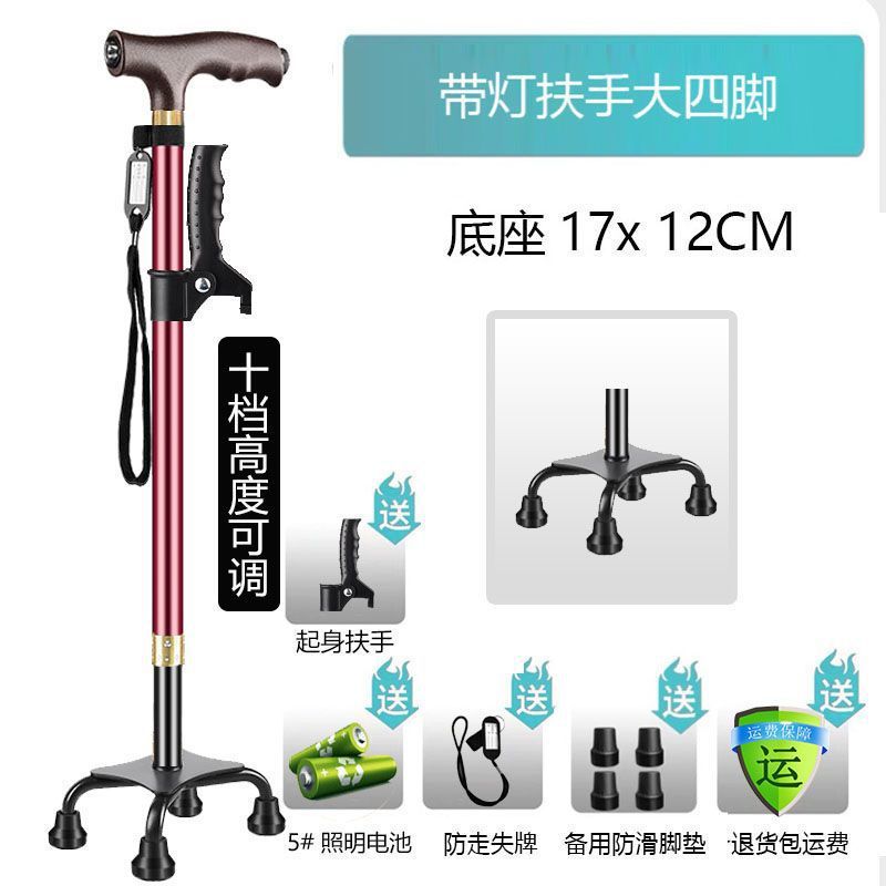 가벼운 미끄럼 방지 튼튼한 낙하 워킹 스틱 노인 4 코너 보행 보조 장치를 위해 텔레스코픽 접이식 4 다리 목발을 가진 노인을위한 목발