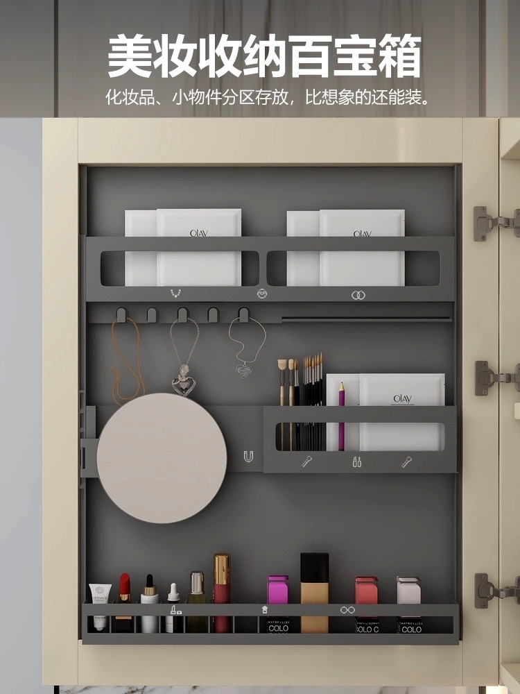 욕실 플라스틱 화장품 무타공 수납선반 거울장 문 뒤 수납 현대적이고 심플한 구멍판 수납선반