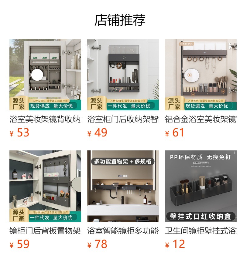 욕실 플라스틱 화장품 무타공 수납선반 거울장 문 뒤 수납 현대적이고 심플한 구멍판 수납선반스토어 가기