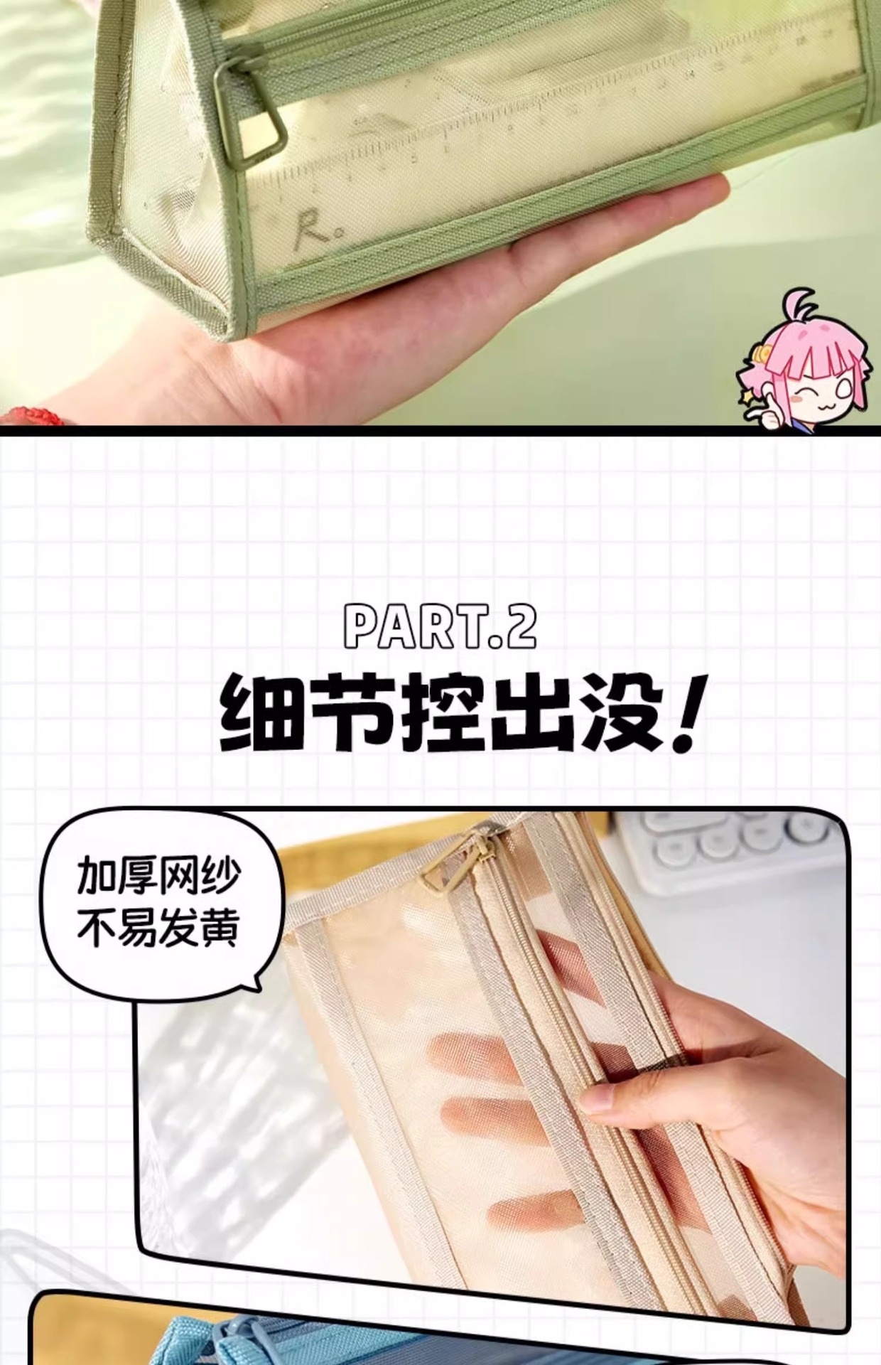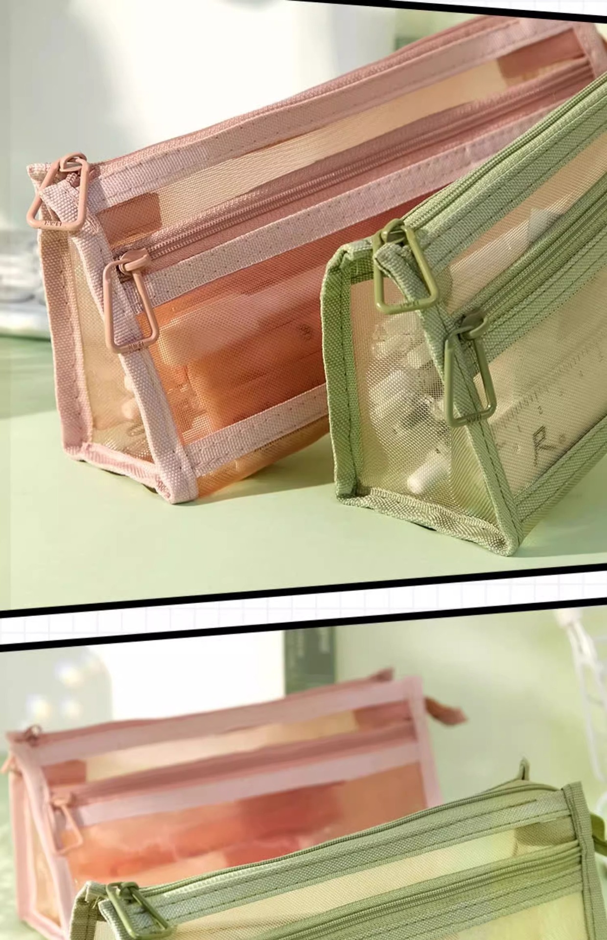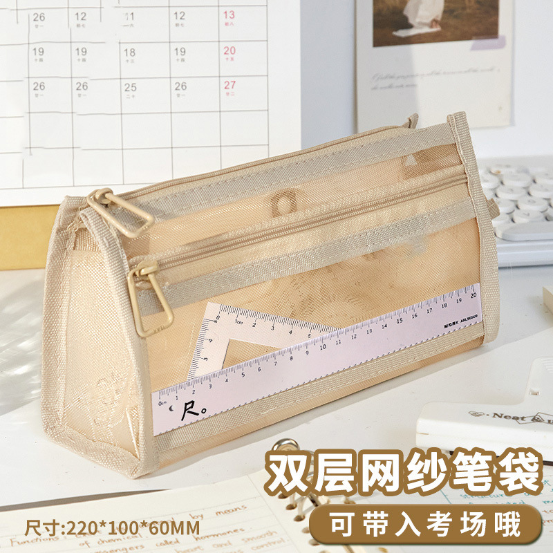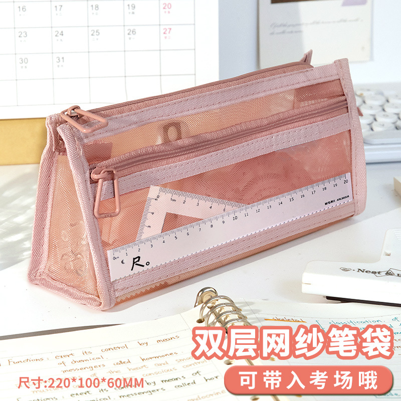 메쉬 연필 가방 더블 레이어 대용량 투명 문구 가방 학생 시험 연필 가방 높은 색상 가치 대외 무역 도매스토어 가기