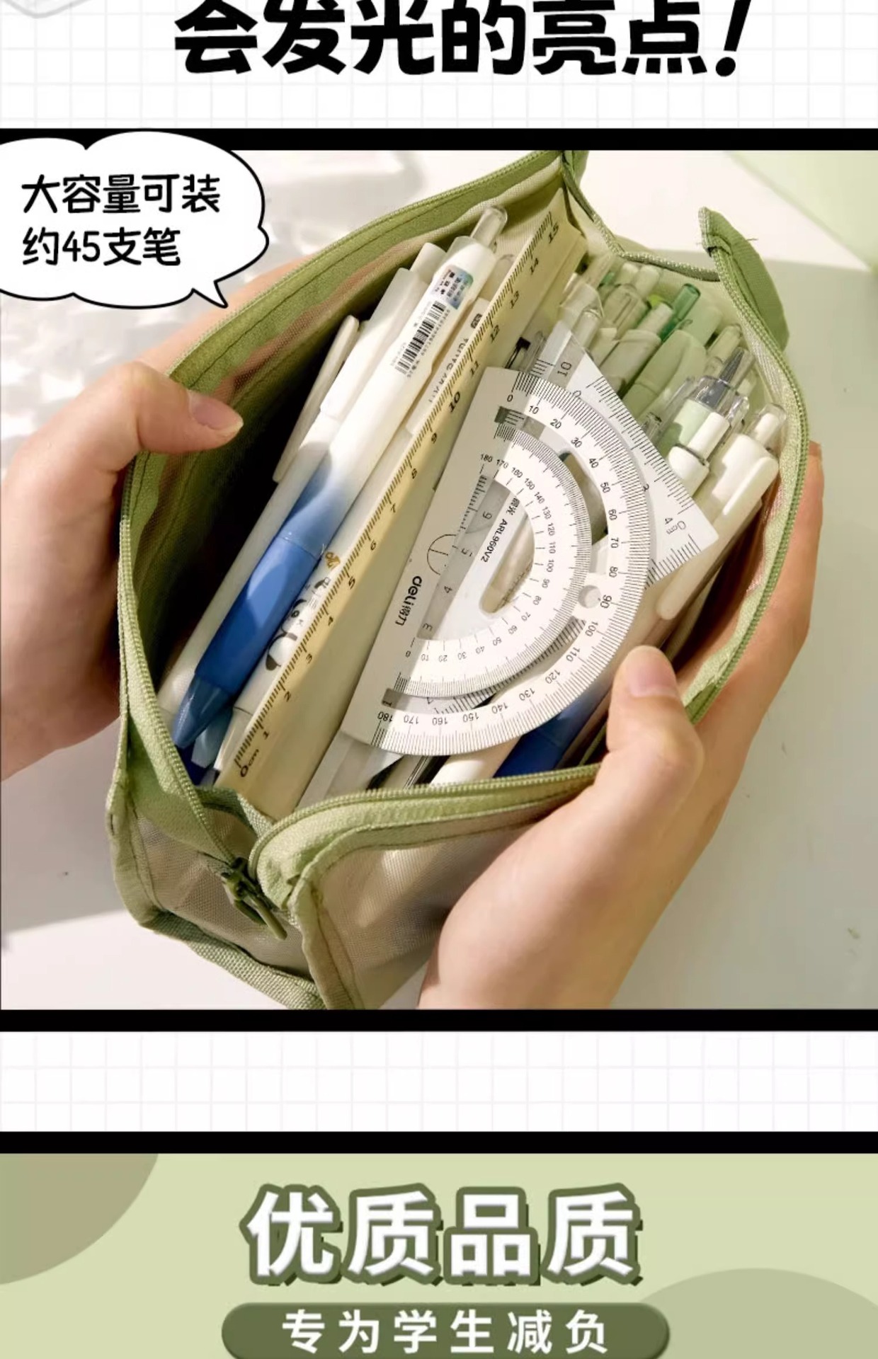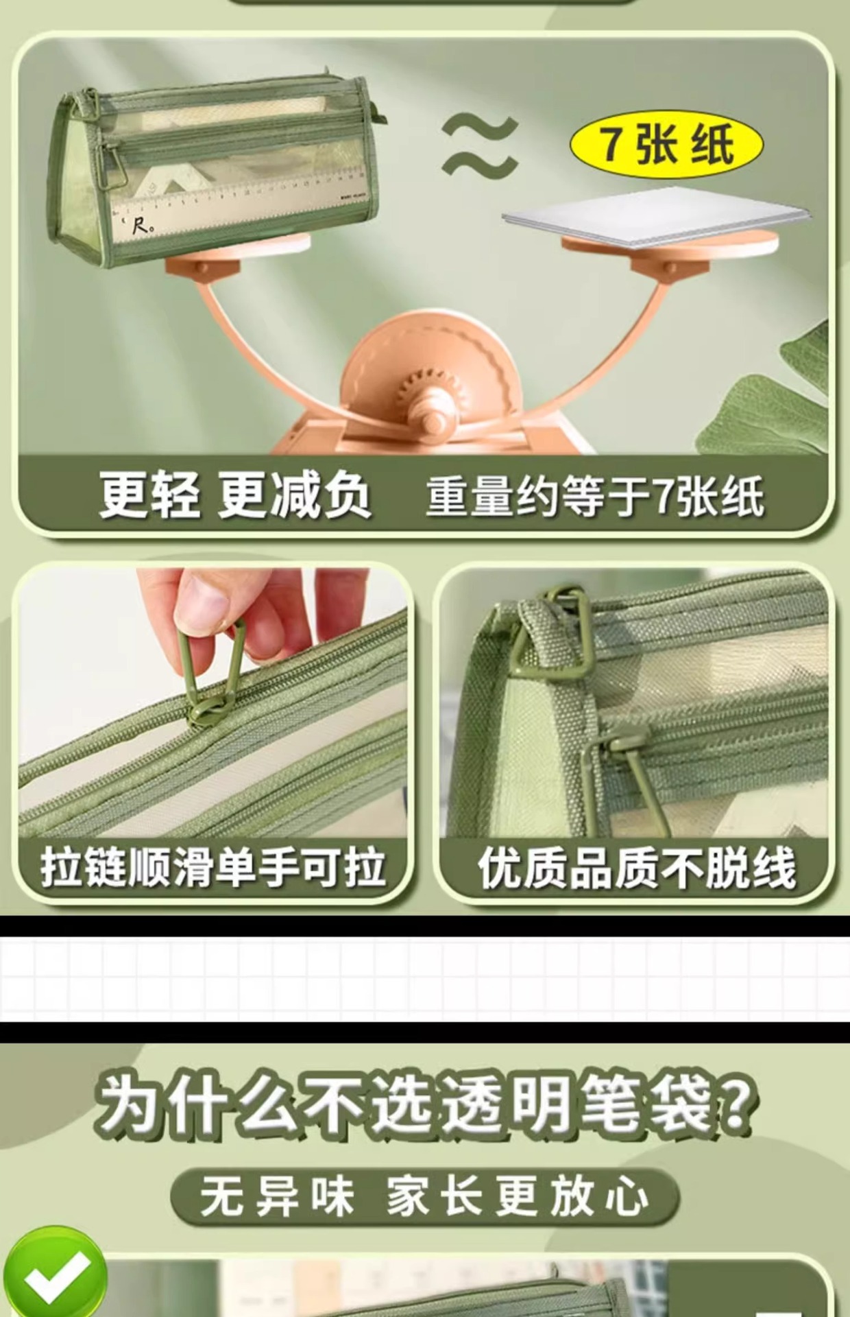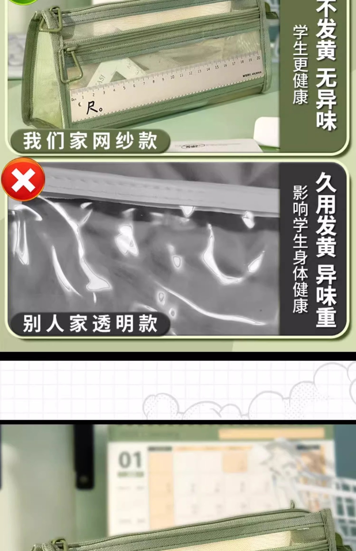 메쉬 연필 가방 더블 레이어 대용량 투명 문구 가방 학생 시험 연필 가방 높은 색상 가치 대외 무역 도매스토어 가기
