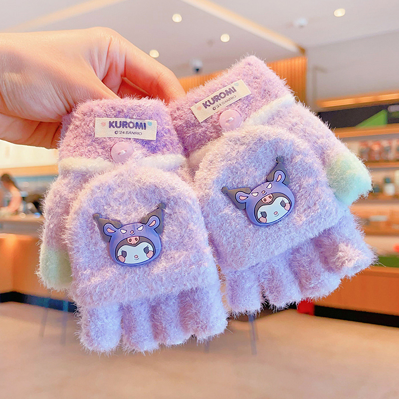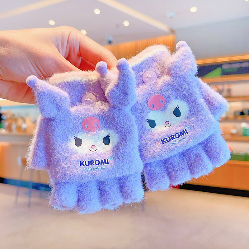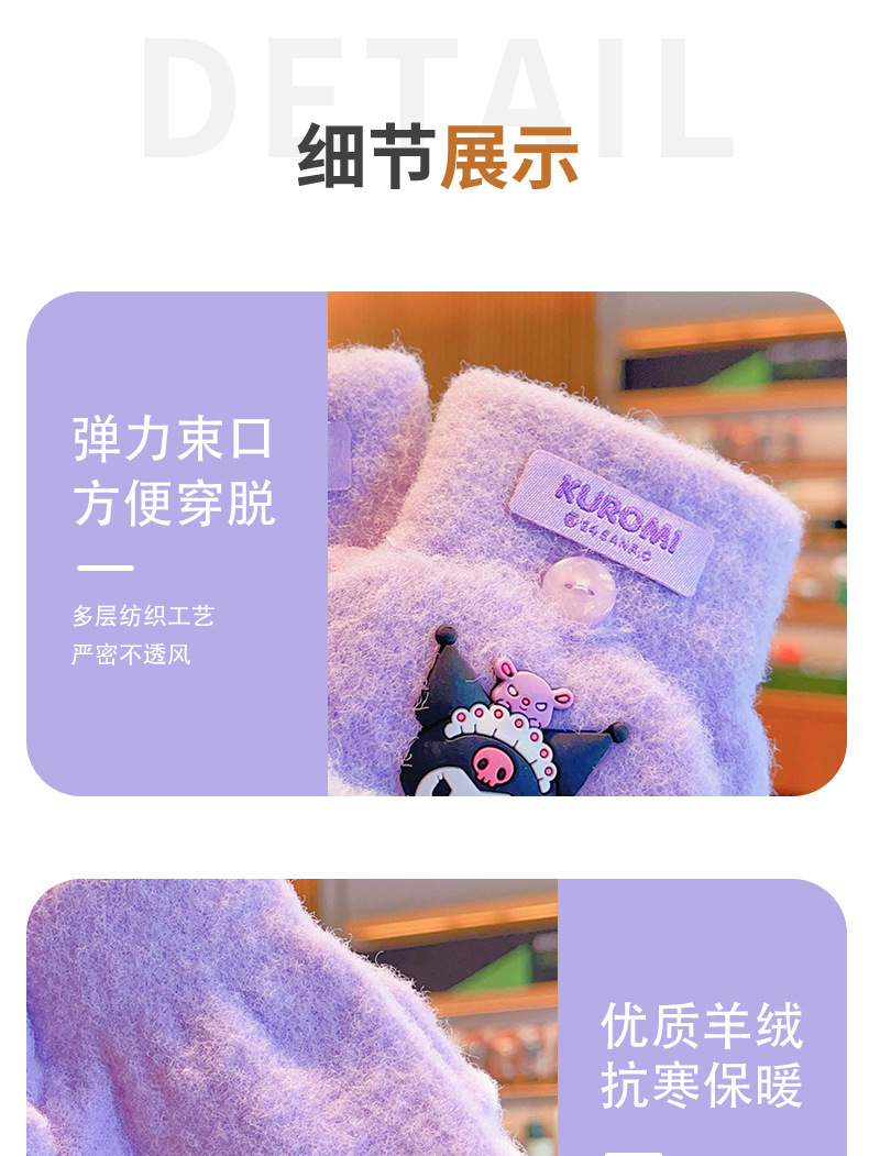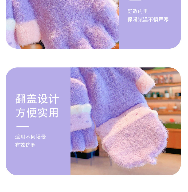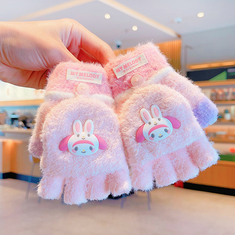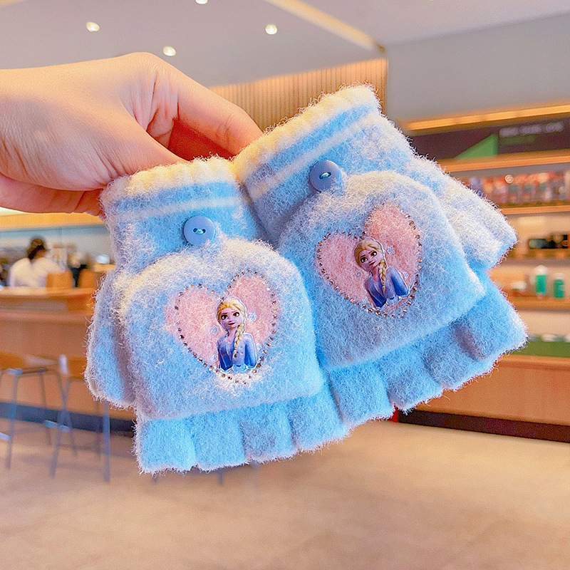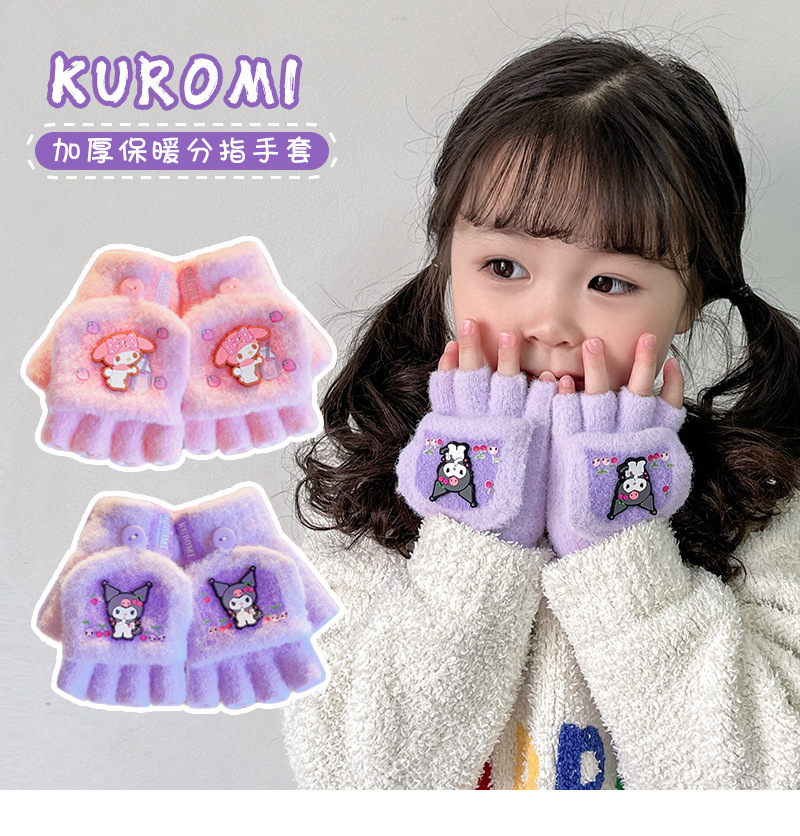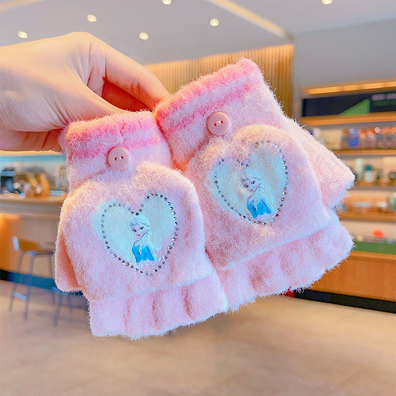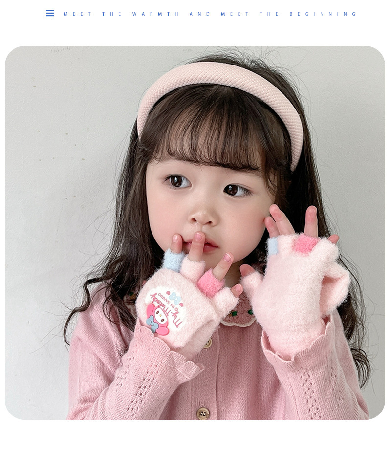Kulomi 어린이 플립 장갑 가을과 겨울 귀여운 만화 기모 다섯 손가락 세트 소녀 방풍 따뜻한 손가락 세트스토어 가기