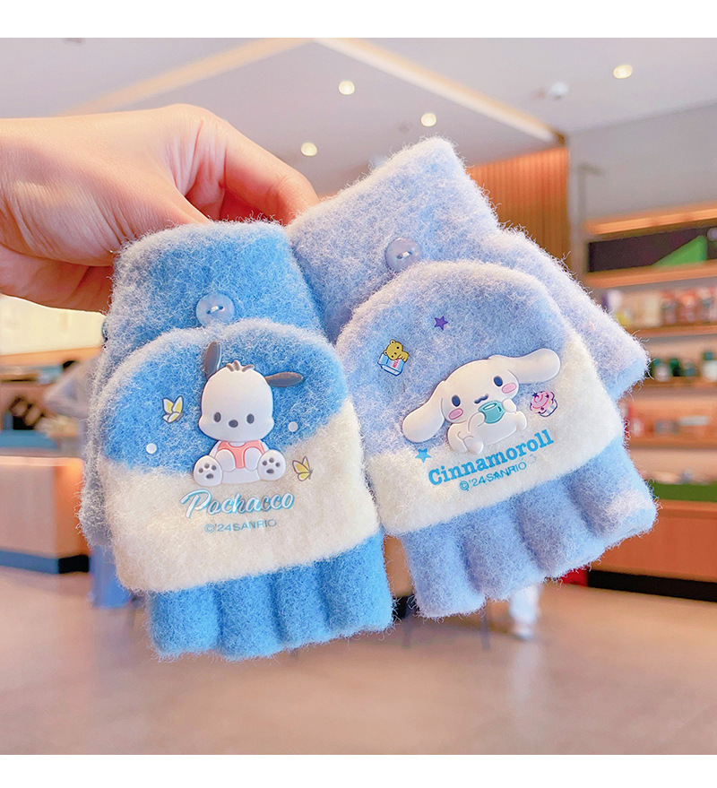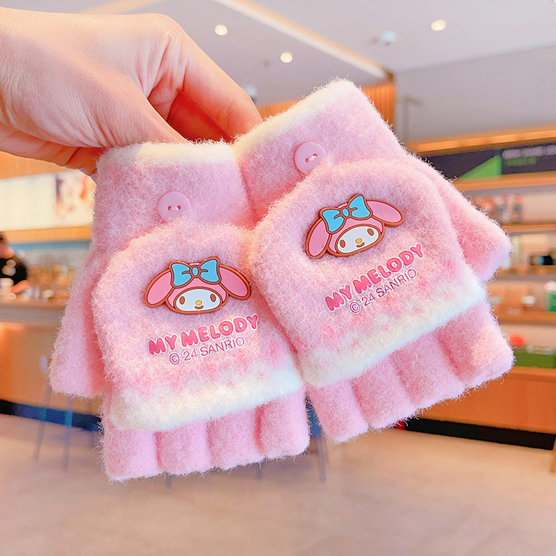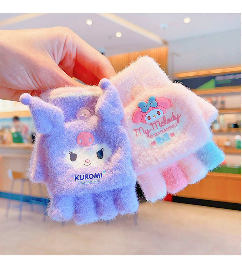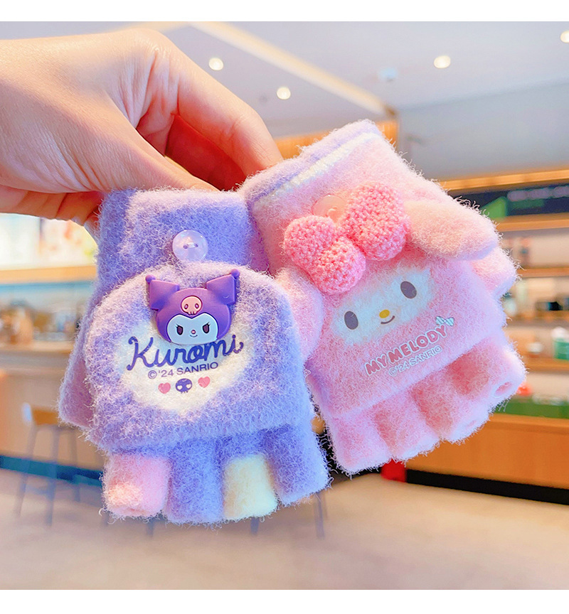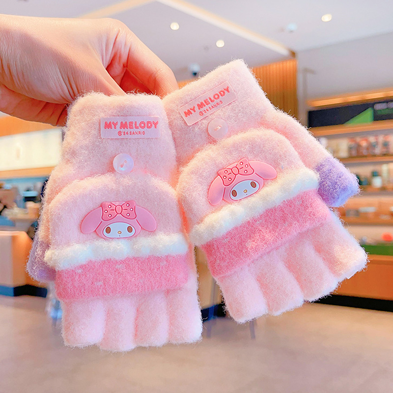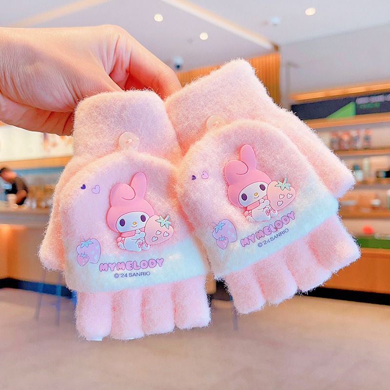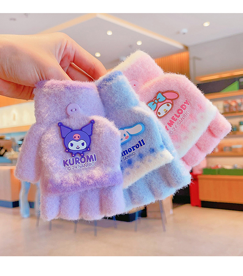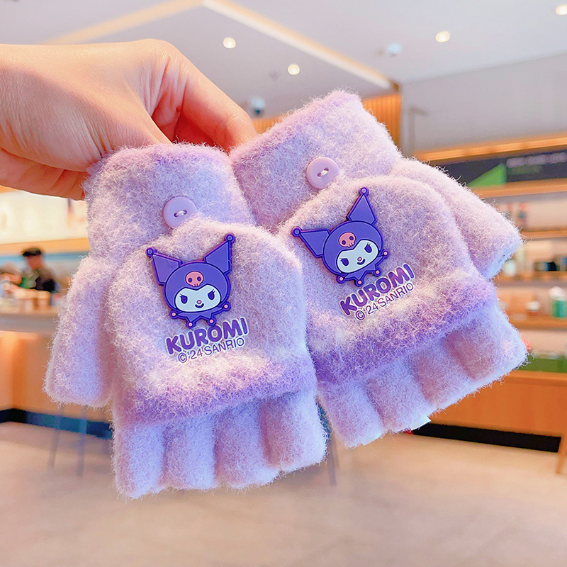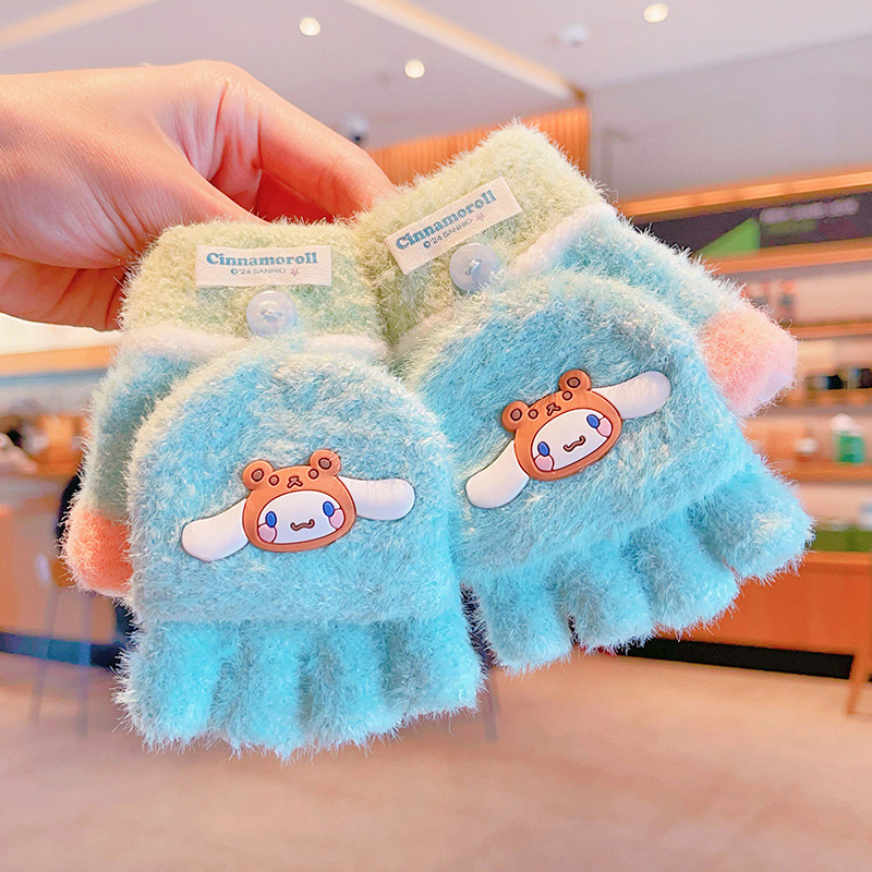 Kulomi 어린이 플립 장갑 가을과 겨울 귀여운 만화 기모 다섯 손가락 세트 소녀 방풍 따뜻한 손가락 세트스토어 가기