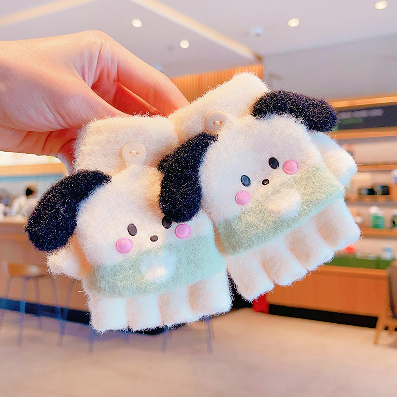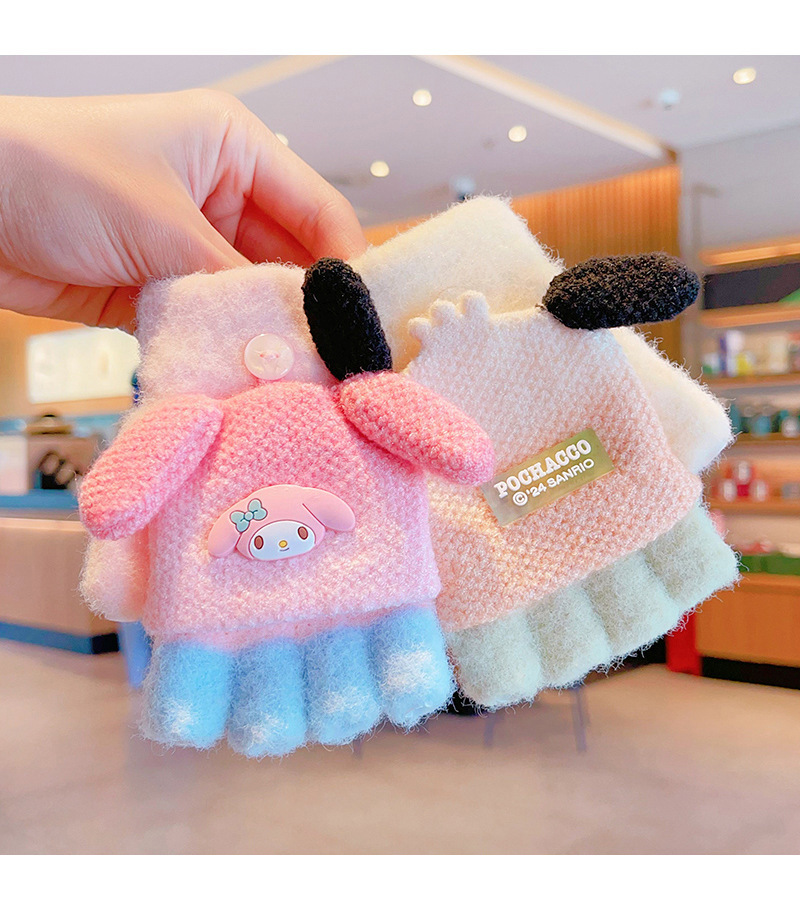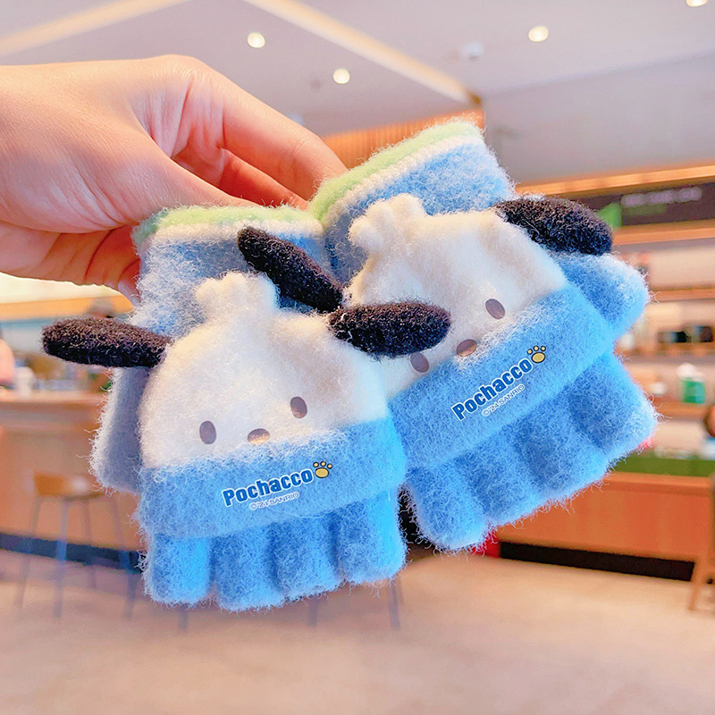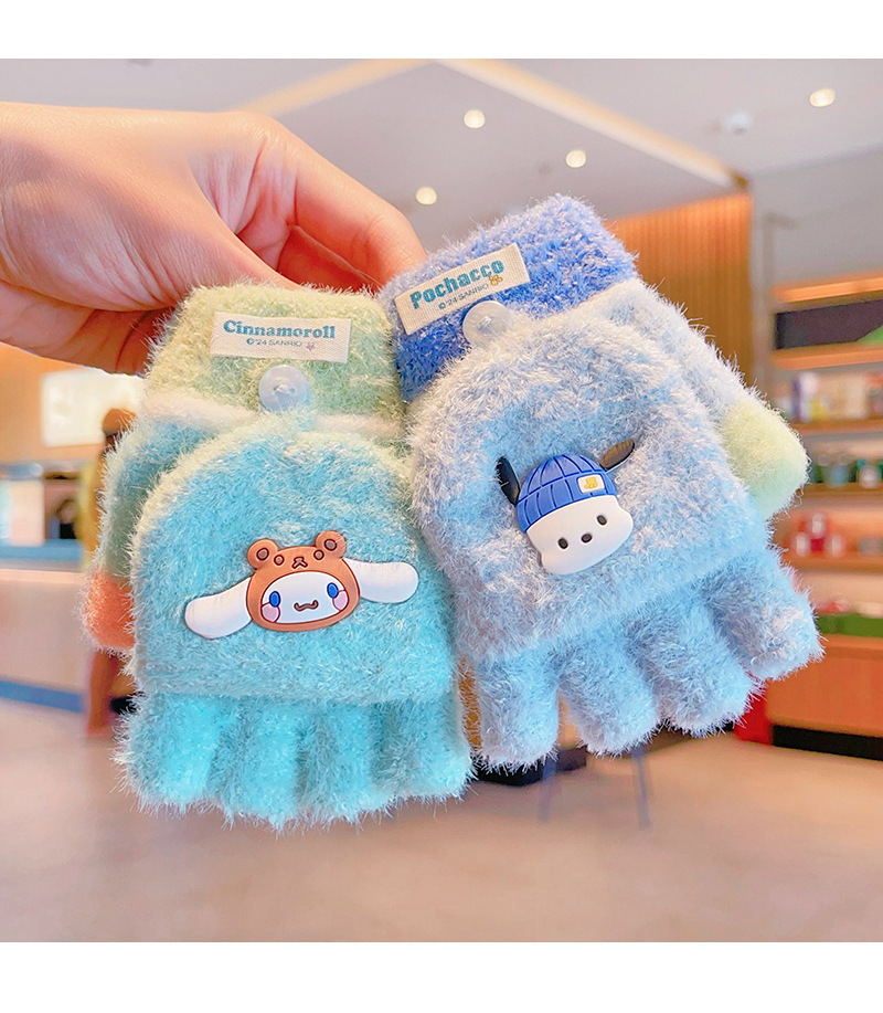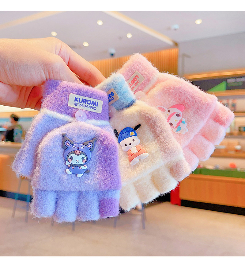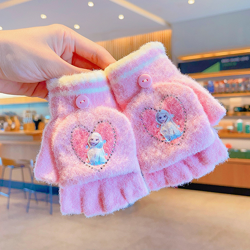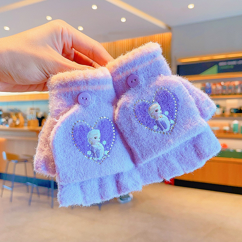 Kulomi 어린이 플립 장갑 가을과 겨울 귀여운 만화 기모 다섯 손가락 세트 소녀 방풍 따뜻한 손가락 세트