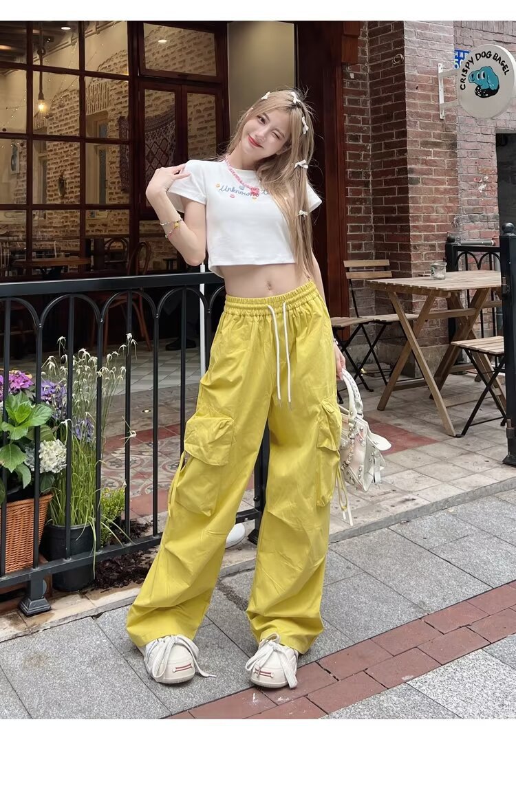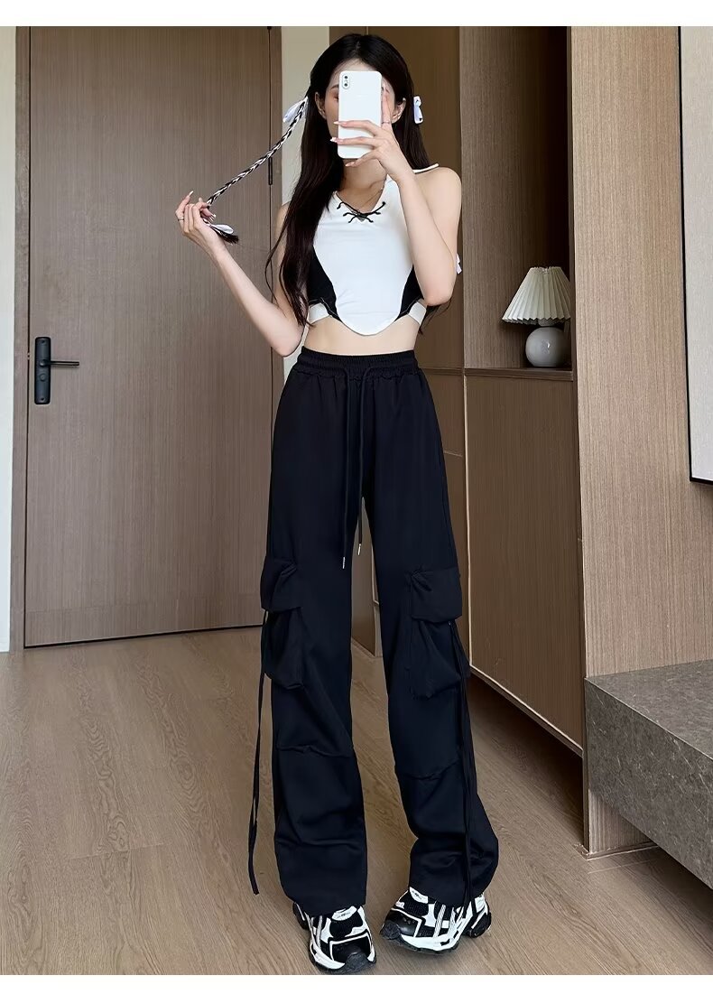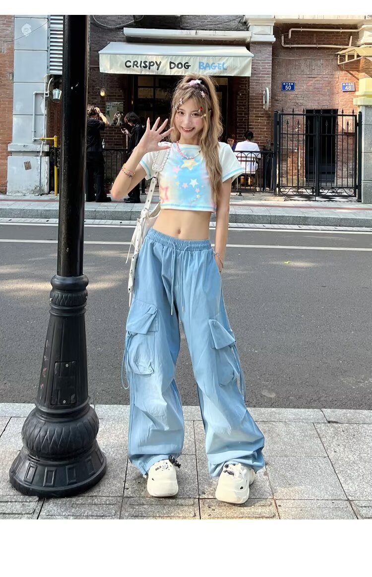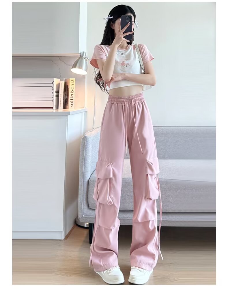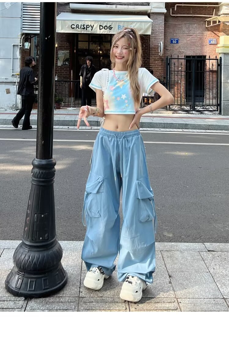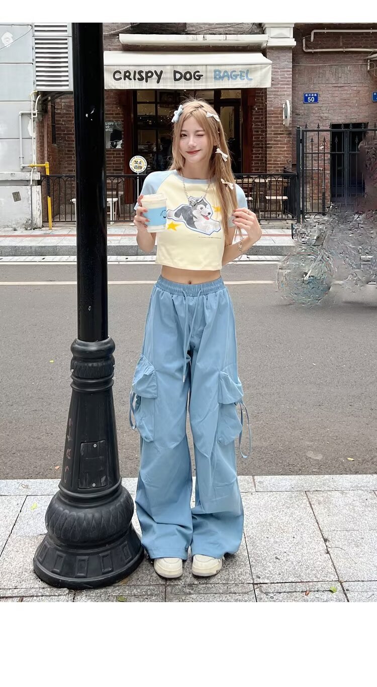 블루 크레인 바지 여성의 가을과 겨울 기모 두꺼운 양조 바지 미국 스타일 하이 스트리트 캐주얼 와이드 다리 낙하산 바지
