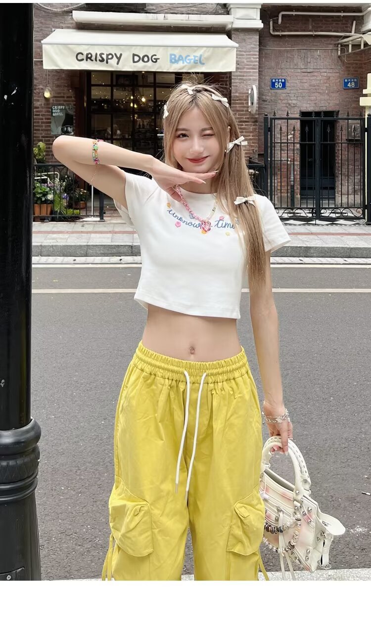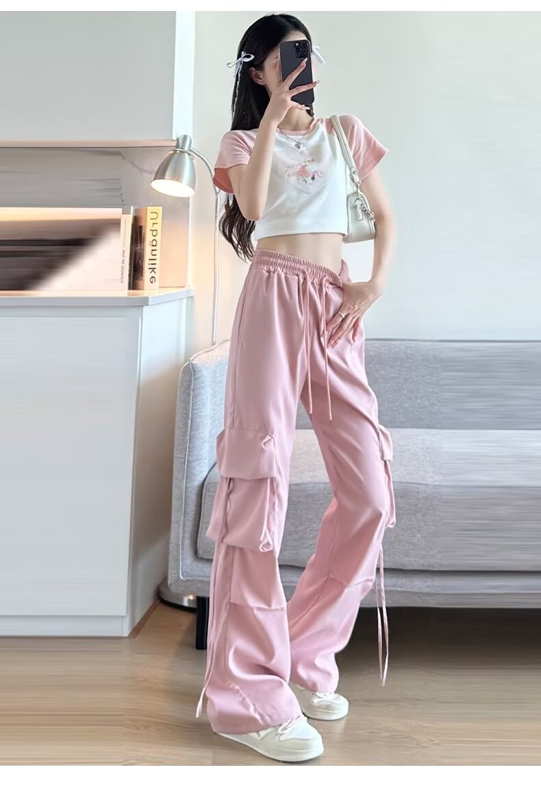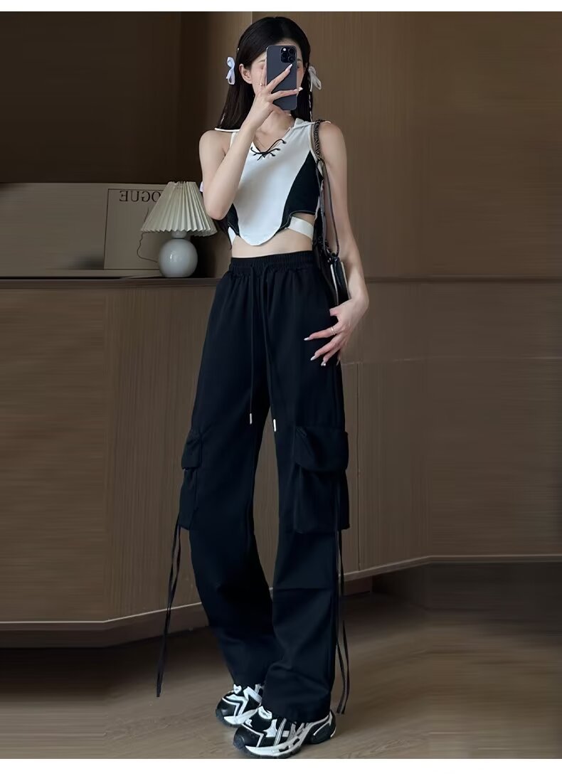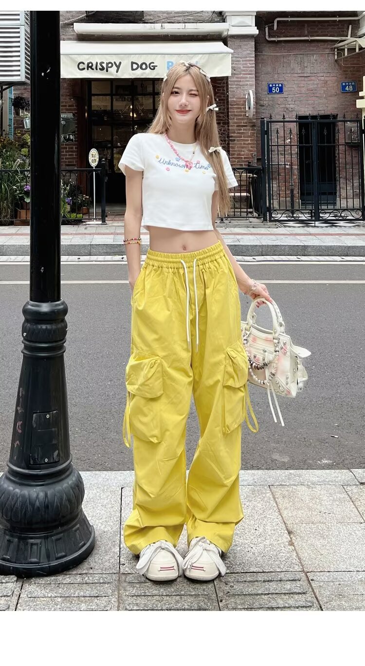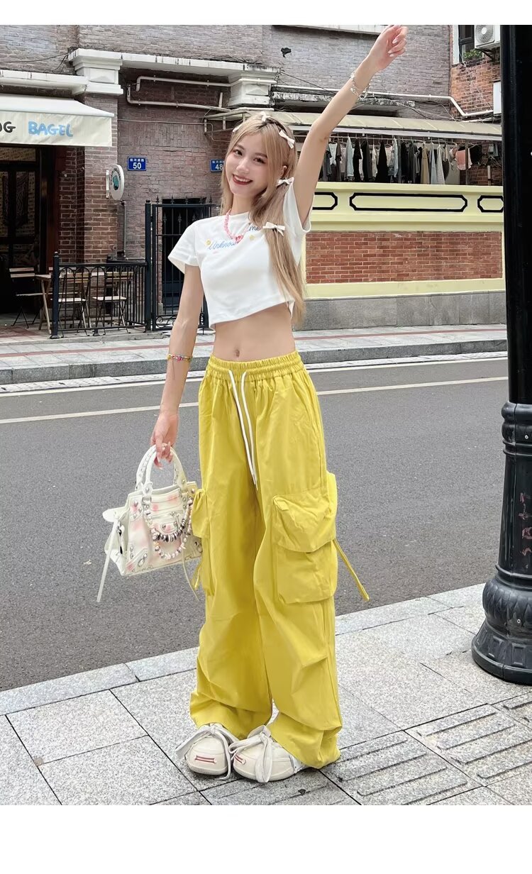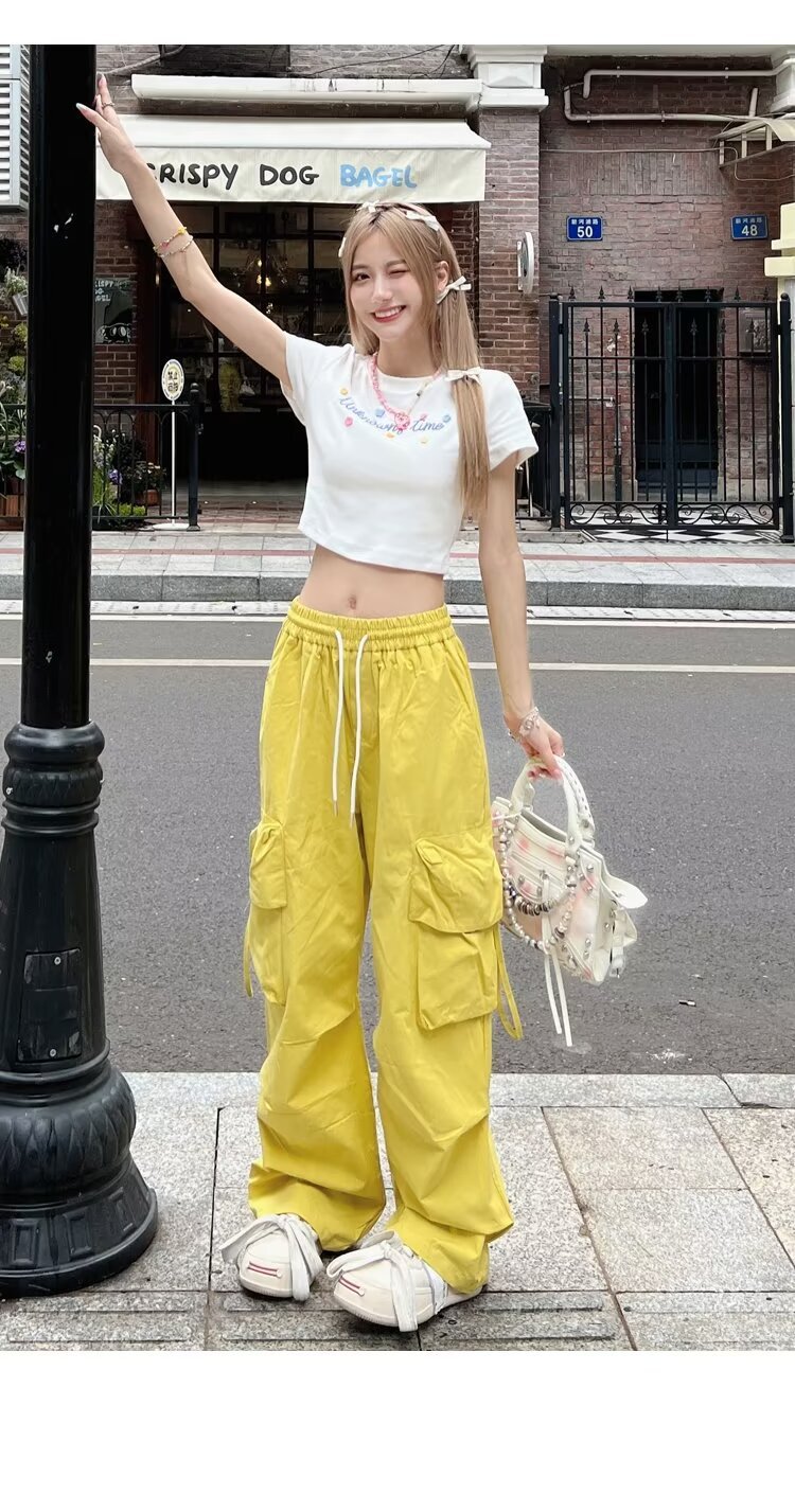 블루 크레인 바지 여성의 가을과 겨울 기모 두꺼운 양조 바지 미국 스타일 하이 스트리트 캐주얼 와이드 다리 낙하산 바지