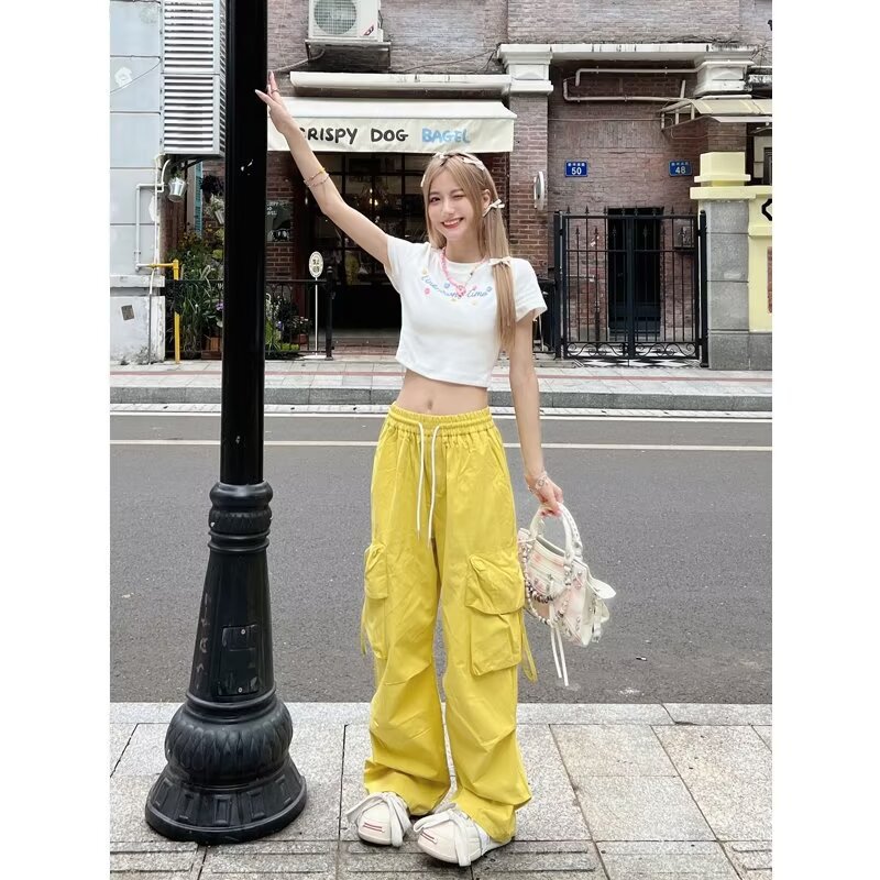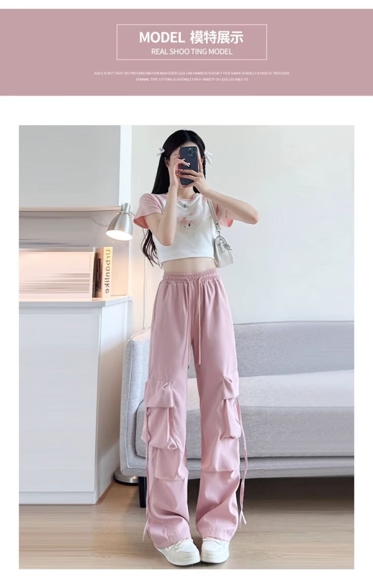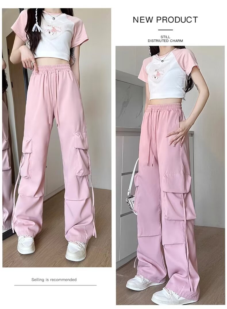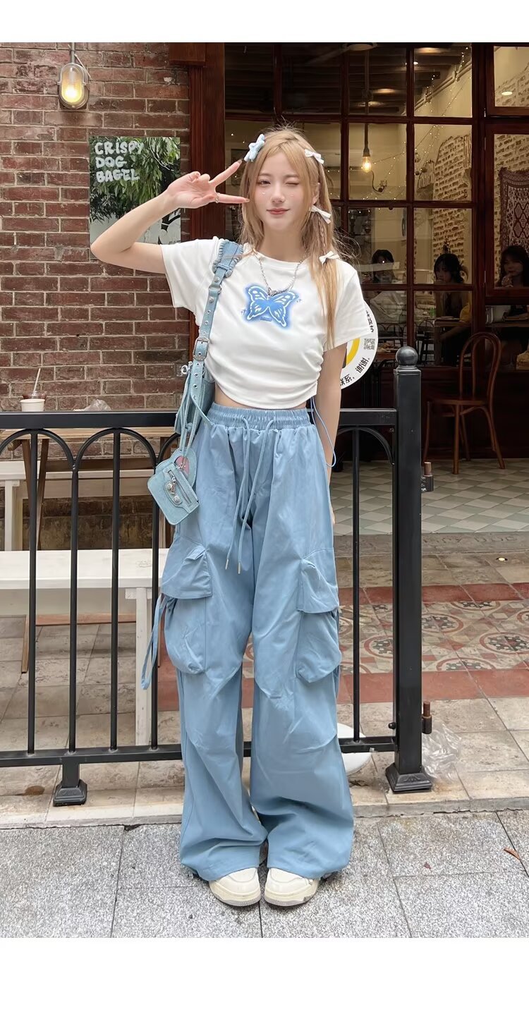 블루 크레인 바지 여성의 가을과 겨울 기모 두꺼운 양조 바지 미국 스타일 하이 스트리트 캐주얼 와이드 다리 낙하산 바지스토어 가기