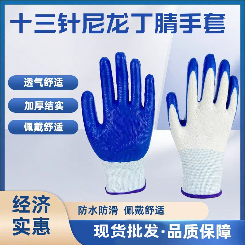 13겹 니트릴 작업용 장갑, 고무 코팅, 보호, 내마모성, 내유성, 미끄럼 방지, 통기성, 건설 현장 작업용, 방유, 미끄럼 방지