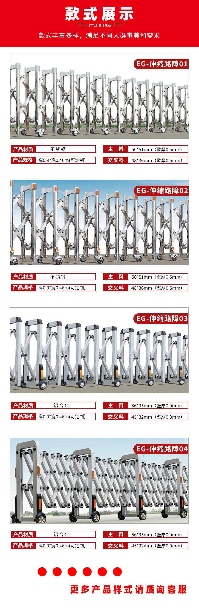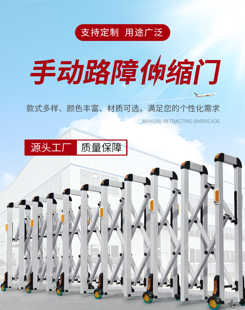 간단한 수동 푸시-풀 수축 울타리 스테인레스 스틸 접이식 텔레스코픽 고속 도로 장벽 교통 알루미늄 합금 모바일 가드 레일스토어 가기