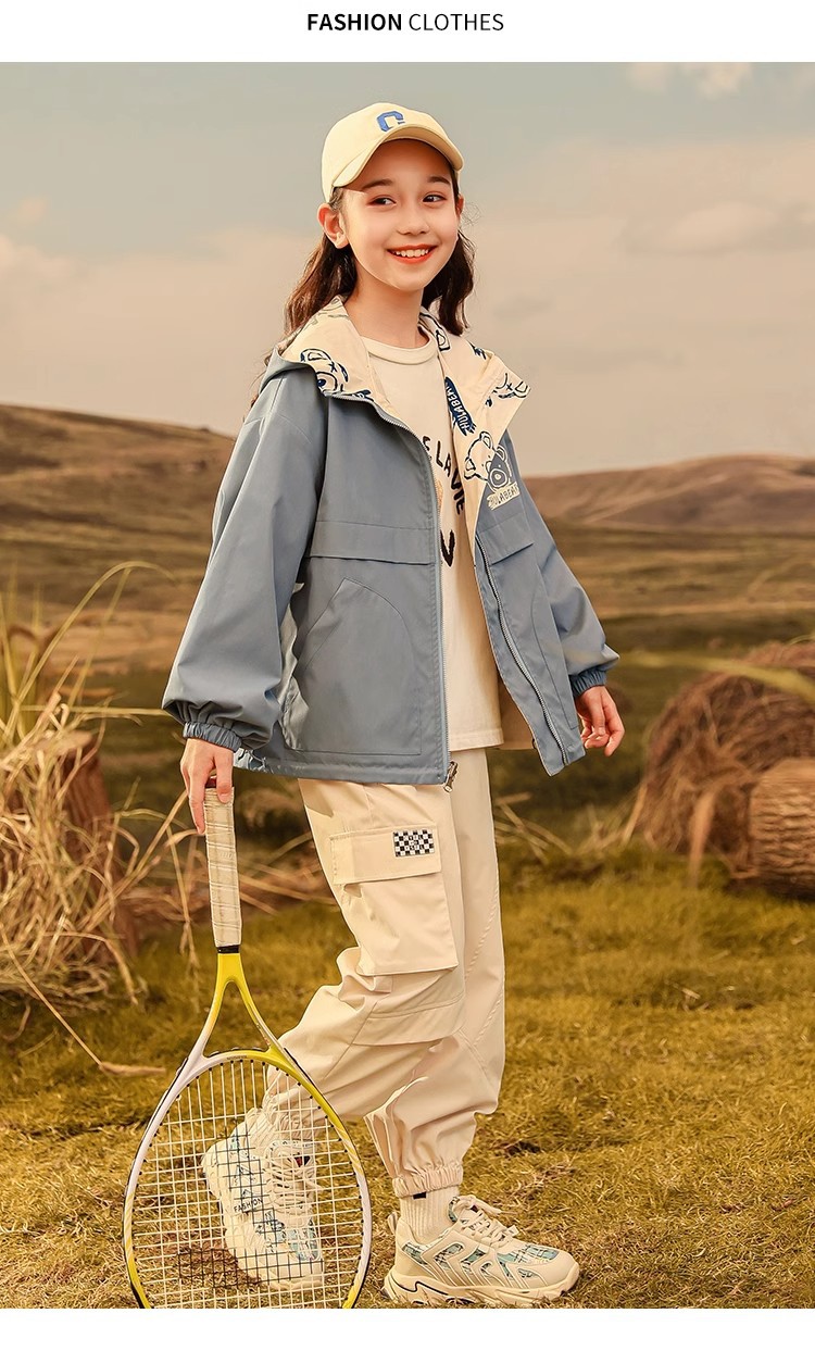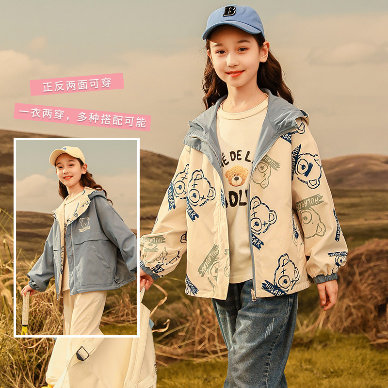 소녀 소녀 양면 코트 2024 재킷 새로운 도착 코트 Trendier 스타일 어린이 봄과 가을 재킷