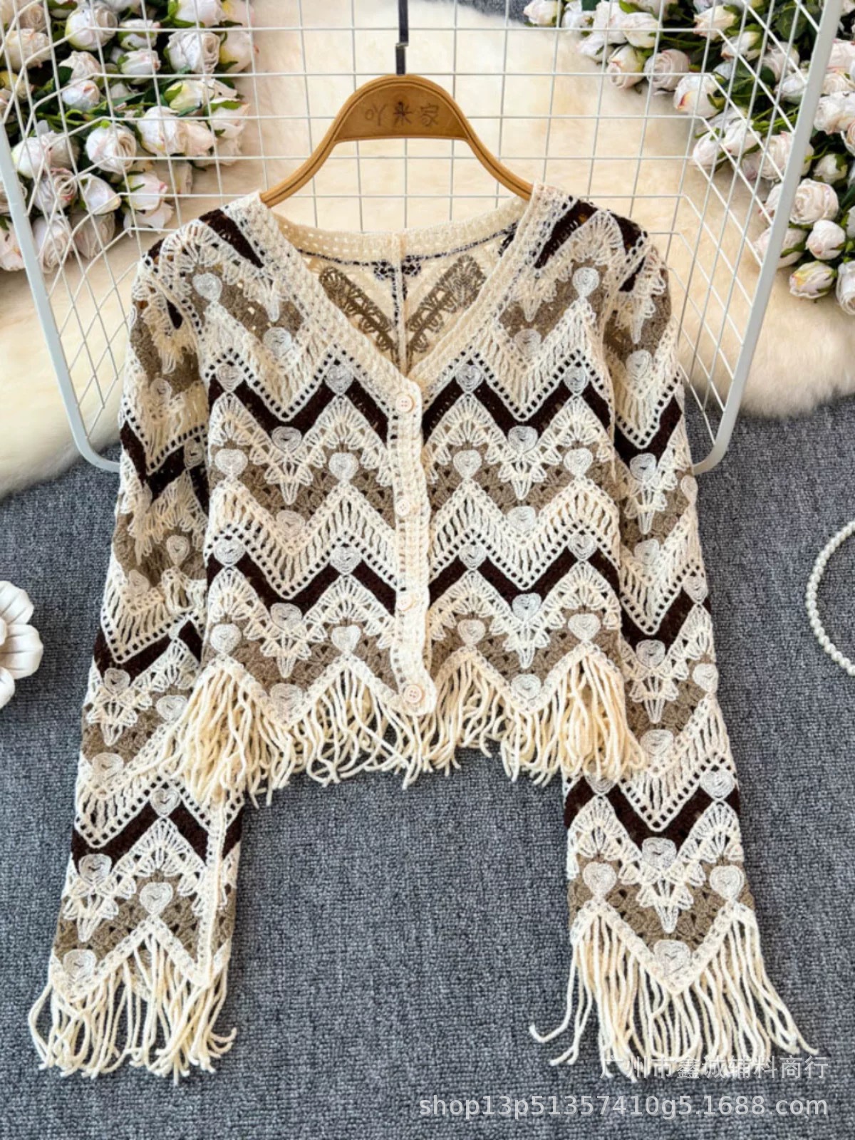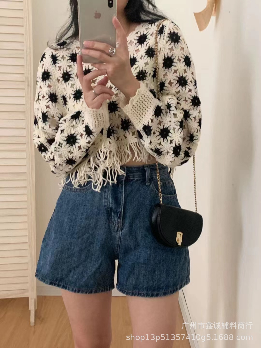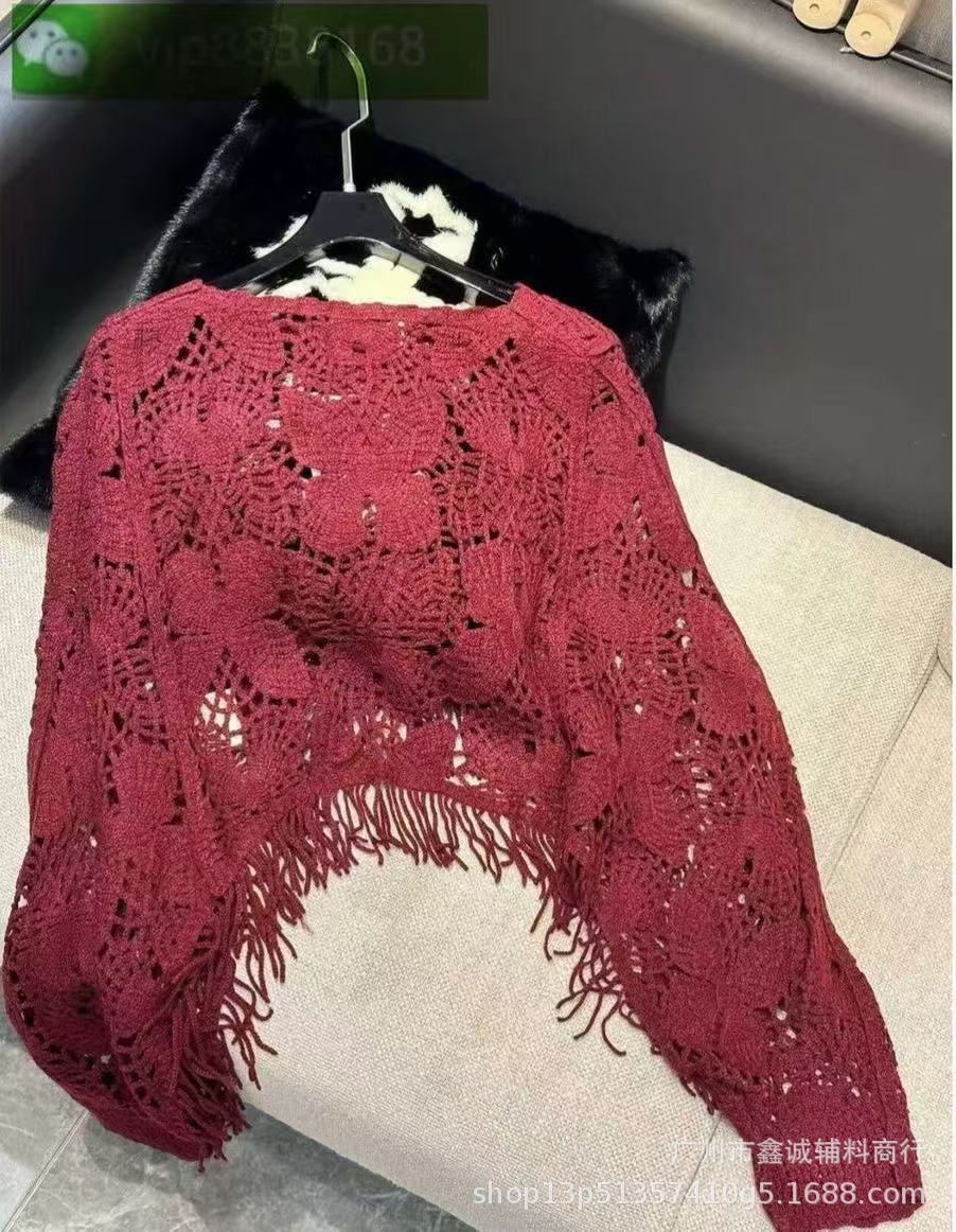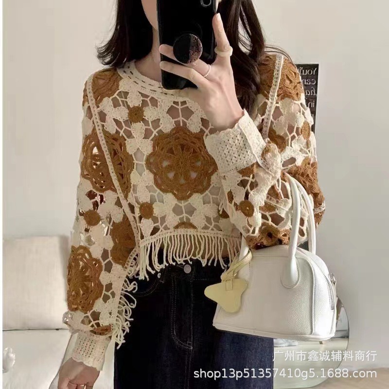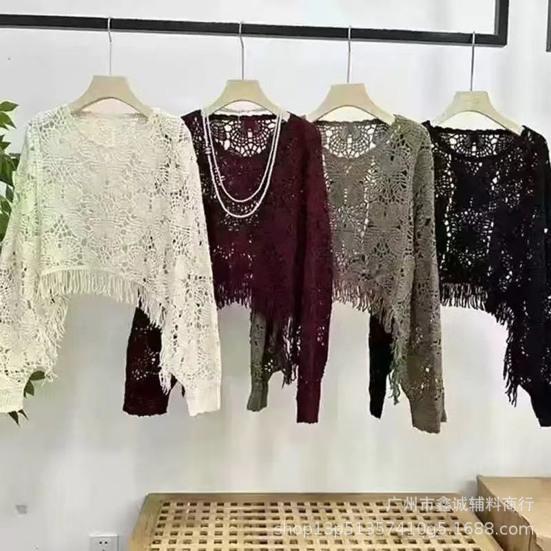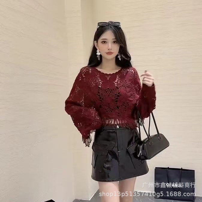 속이 빈 짧은 스웨터 울 니트 디자인 솔리드 컬러 새로운 가을 짧은 스웨터 에어컨 프린지 코트스토어 가기