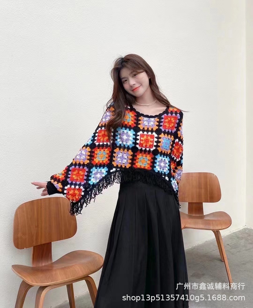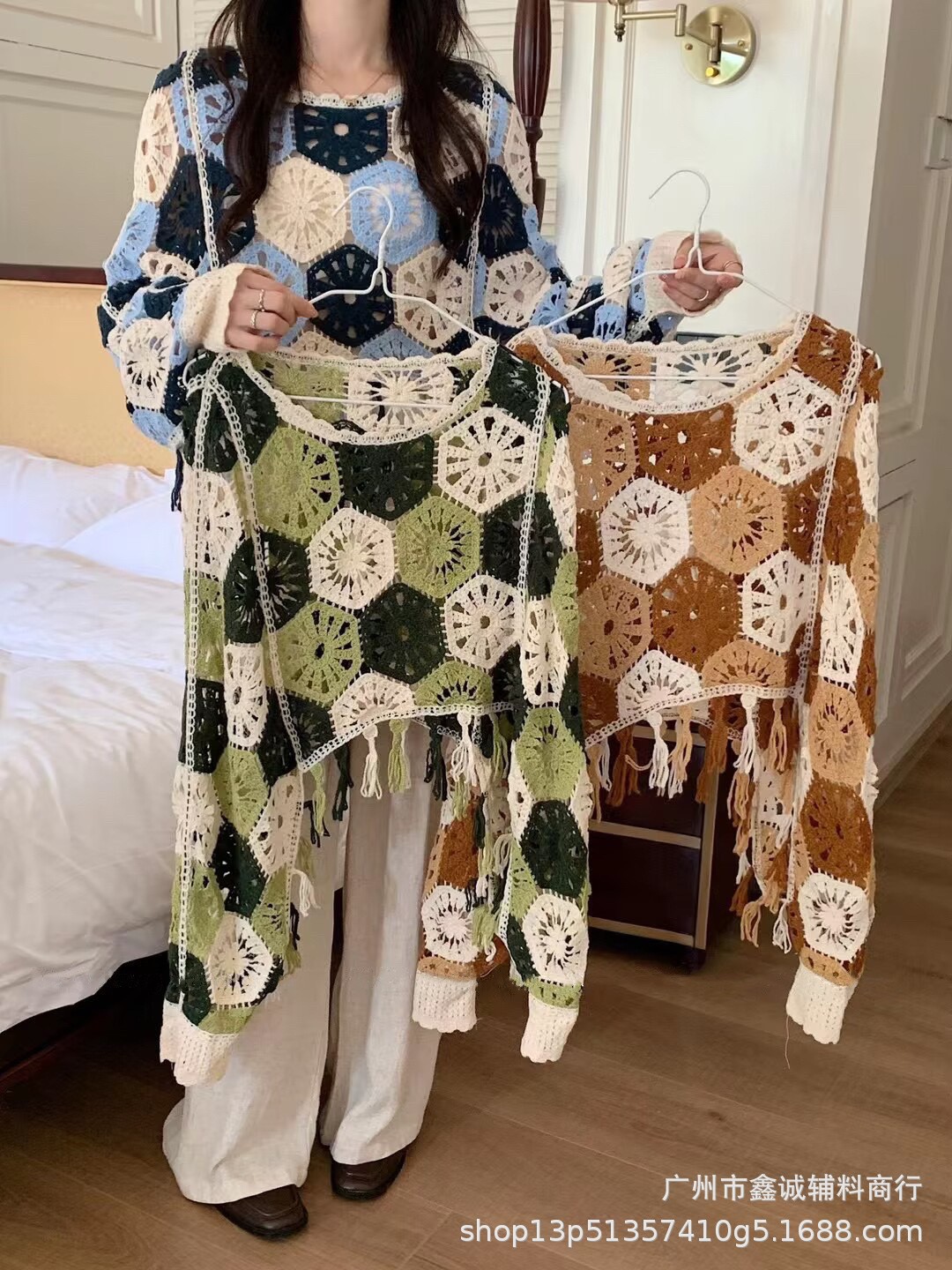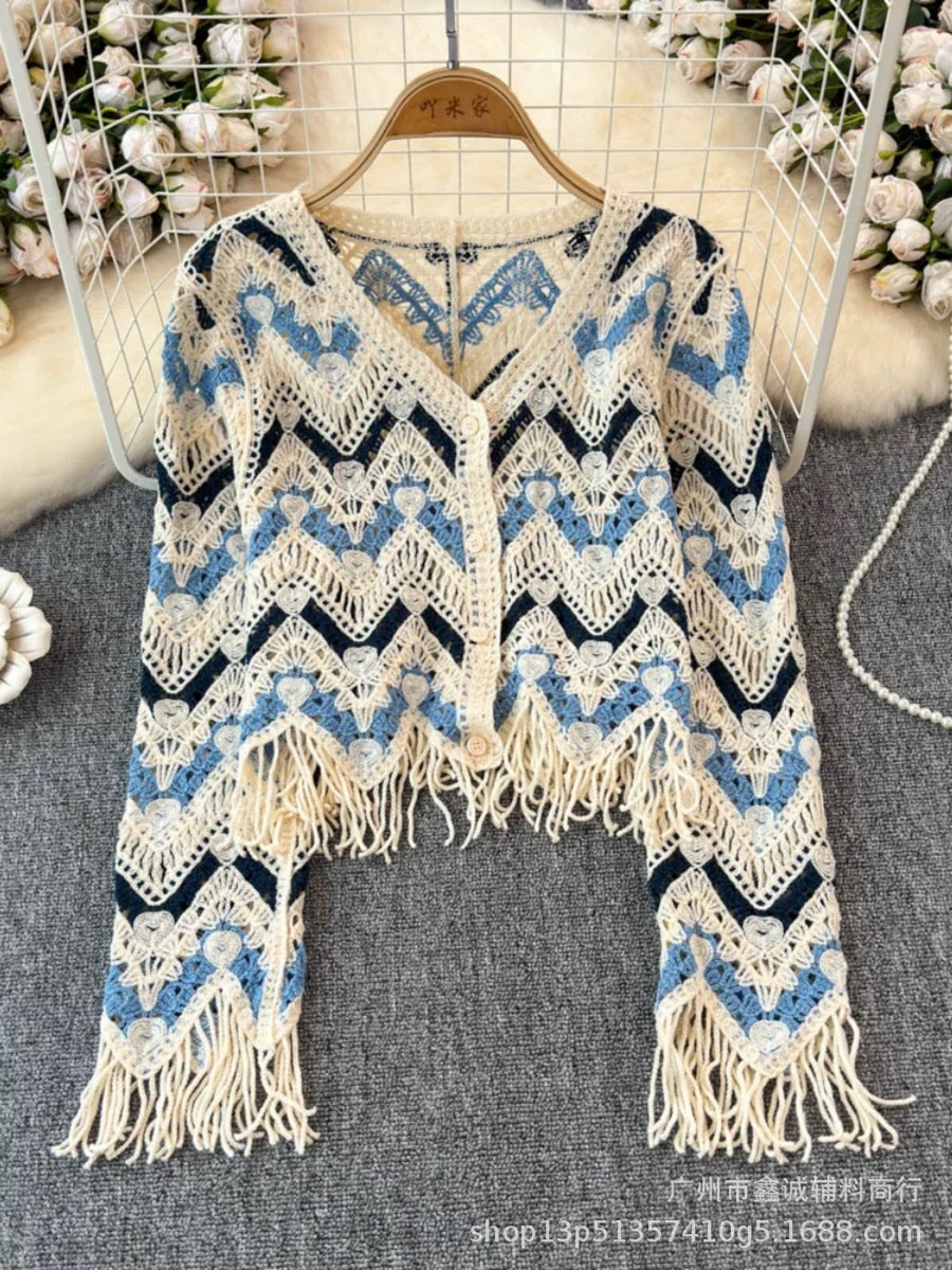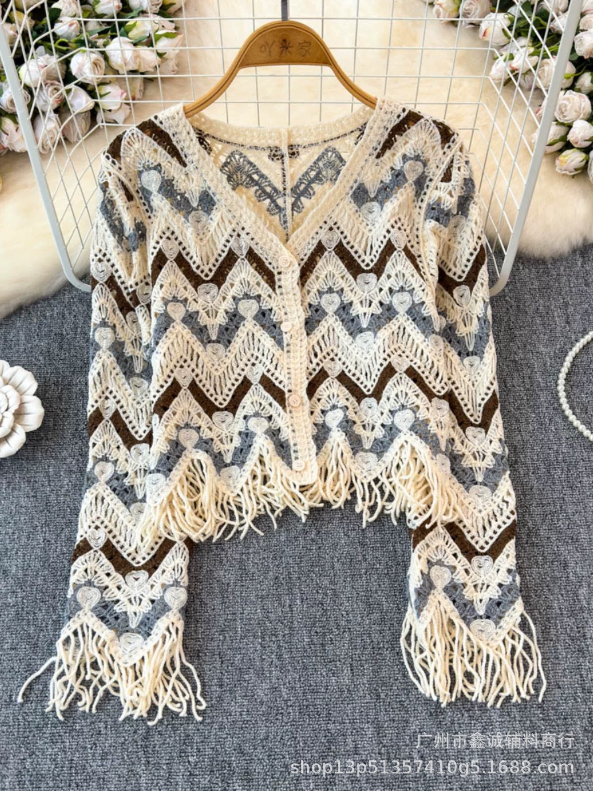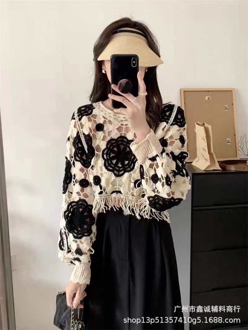 속이 빈 짧은 스웨터 울 니트 디자인 솔리드 컬러 새로운 가을 짧은 스웨터 에어컨 프린지 코트스토어 가기