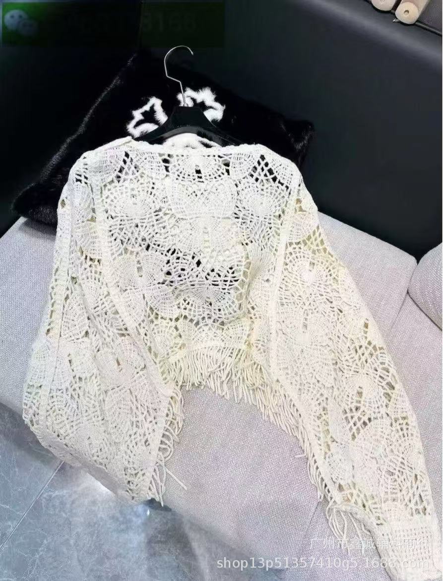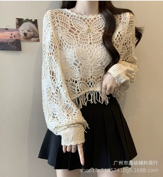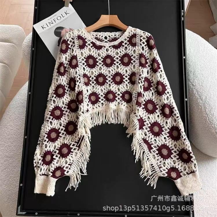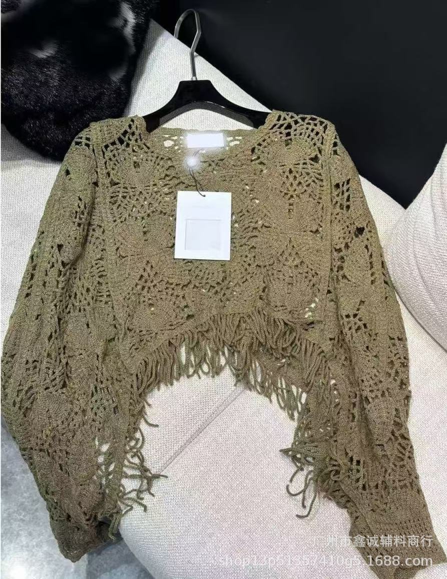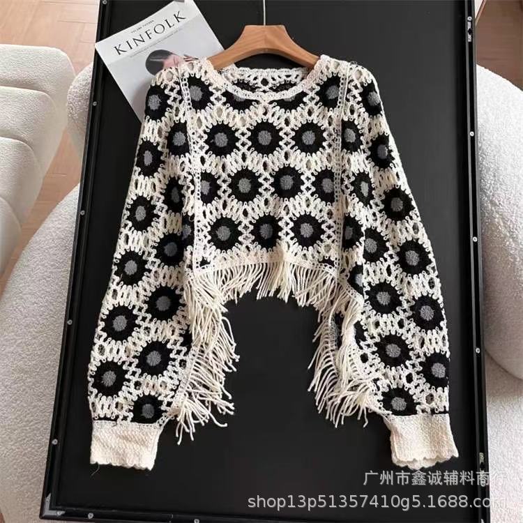 속이 빈 짧은 스웨터 울 니트 디자인 솔리드 컬러 새로운 가을 짧은 스웨터 에어컨 프린지 코트