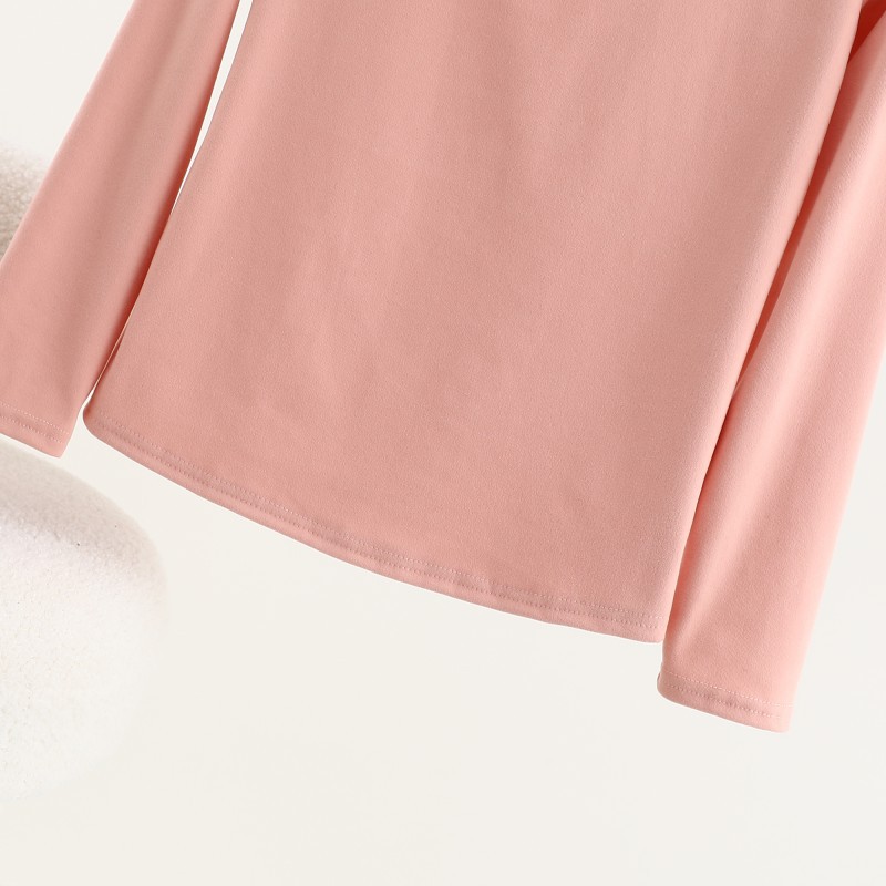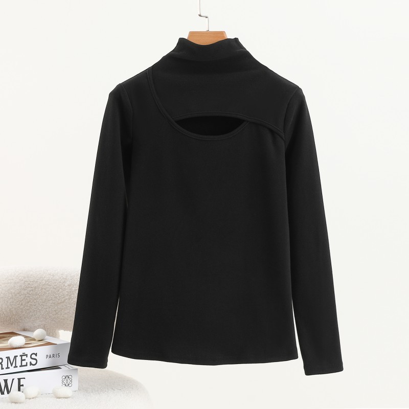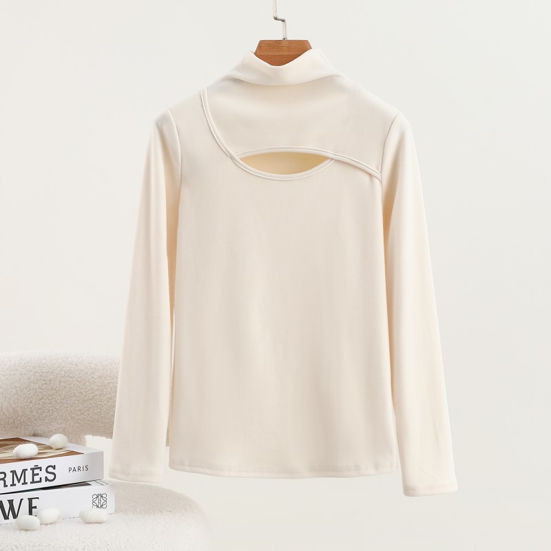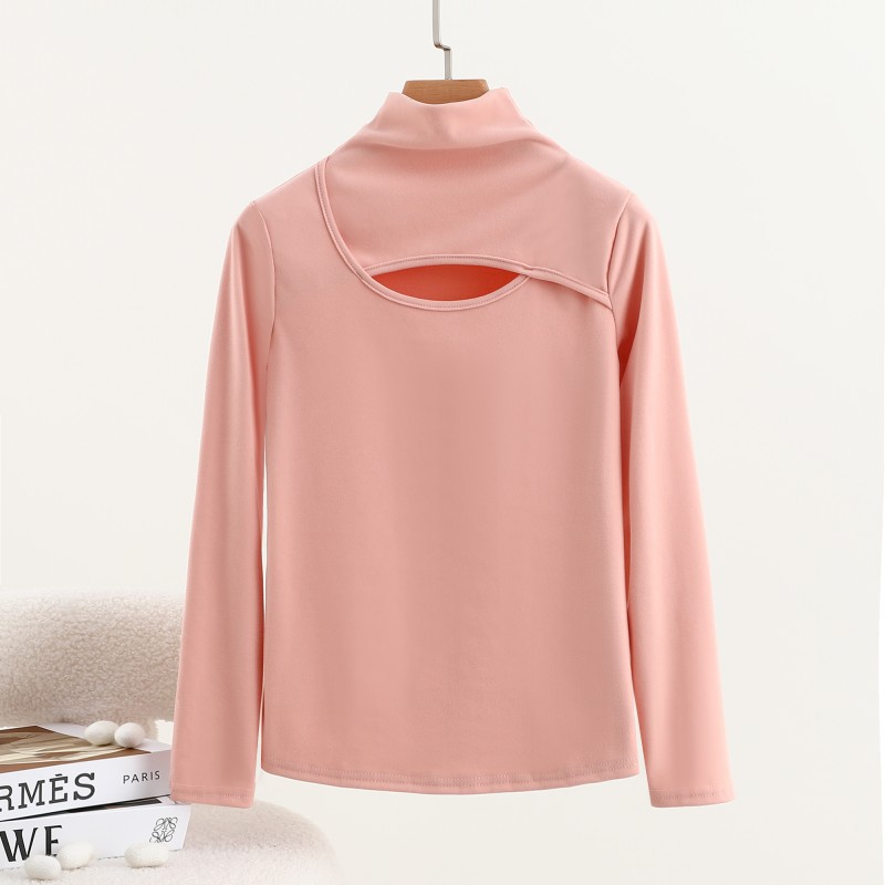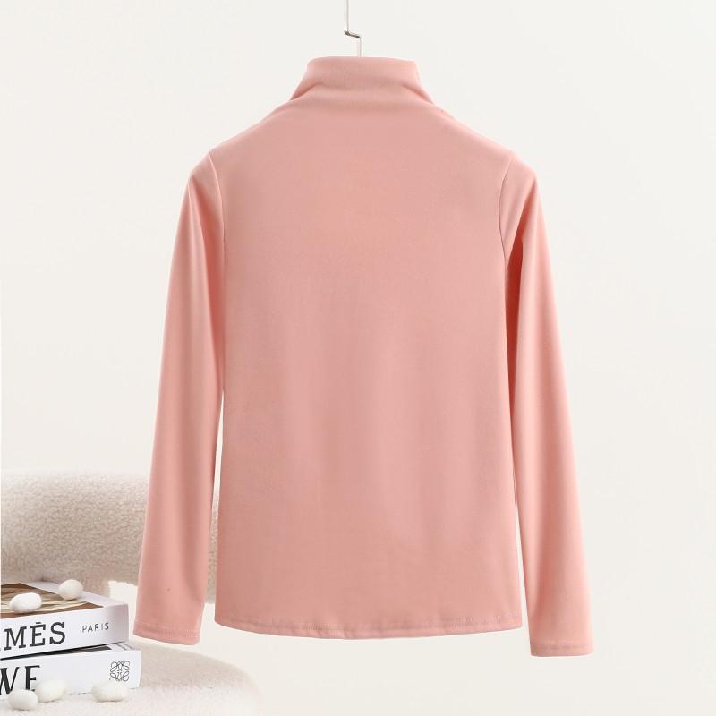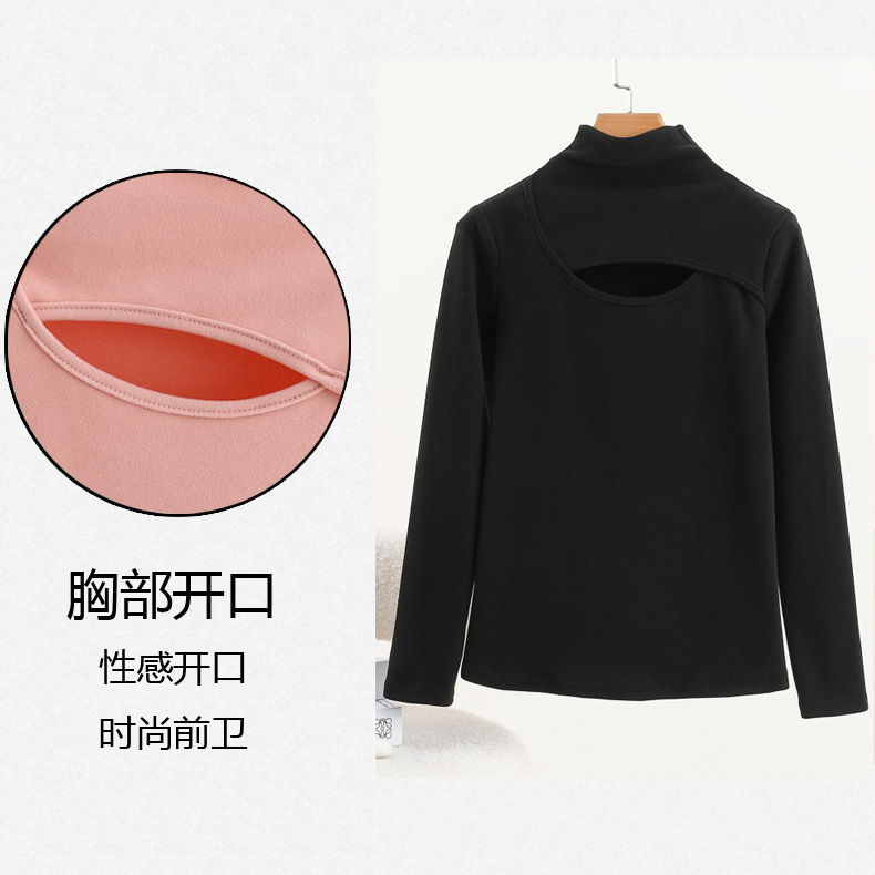 가을과 겨울을위한 여성용 양털 반 높이 칼라베이스 셔츠 두꺼운 기모 중공 중공 긴팔 따뜻한 옷 슬리밍 내부 탑