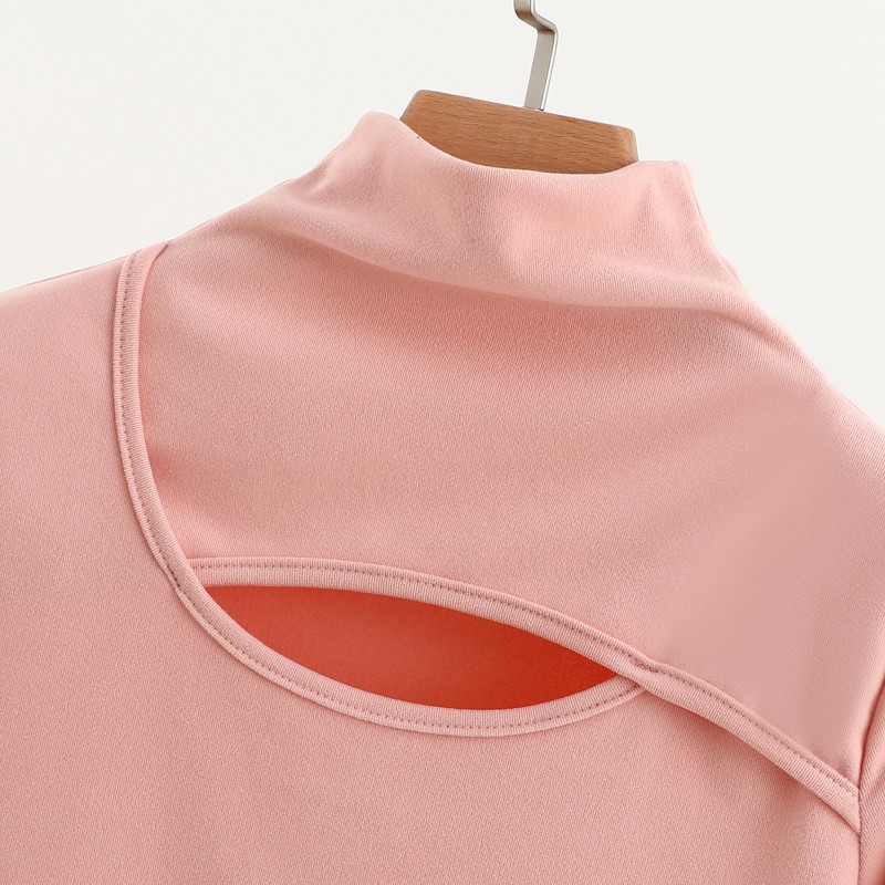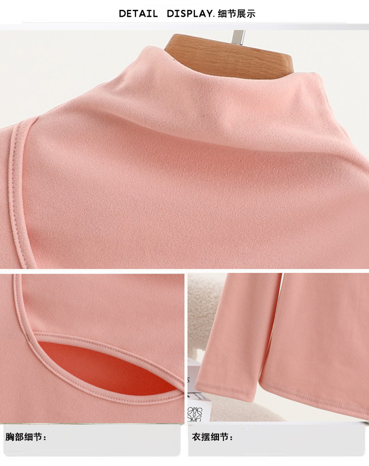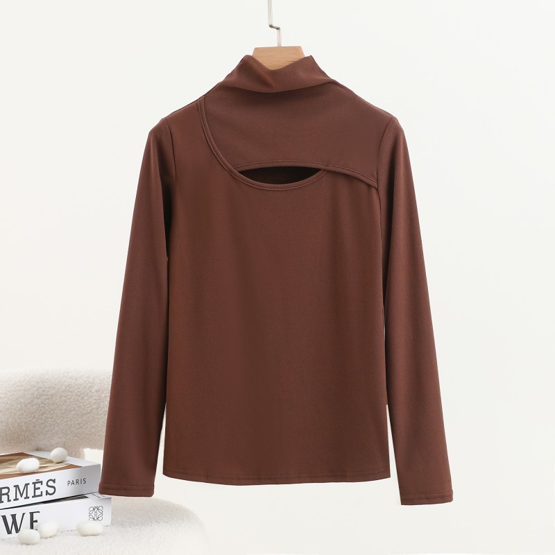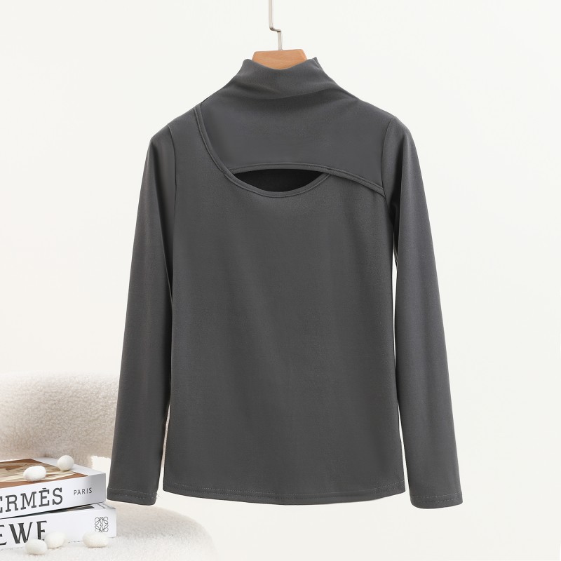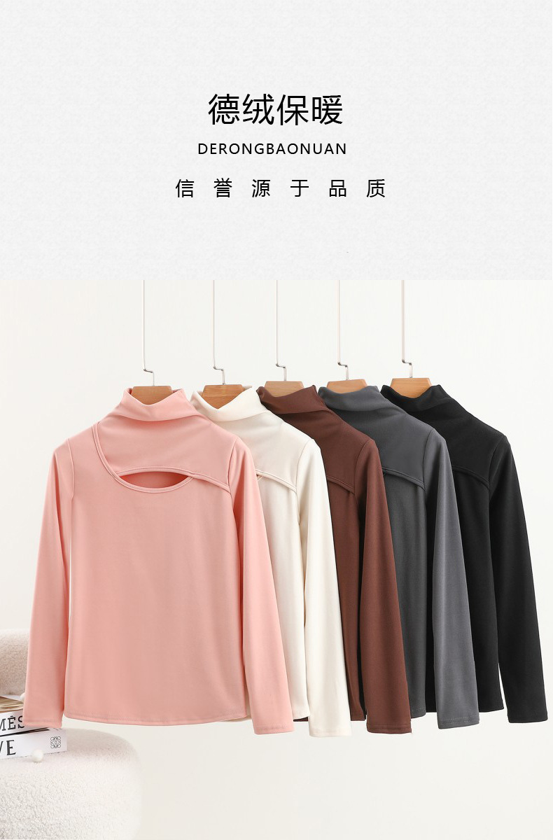 가을과 겨울을위한 여성용 양털 반 높이 칼라베이스 셔츠 두꺼운 기모 중공 중공 긴팔 따뜻한 옷 슬리밍 내부 탑