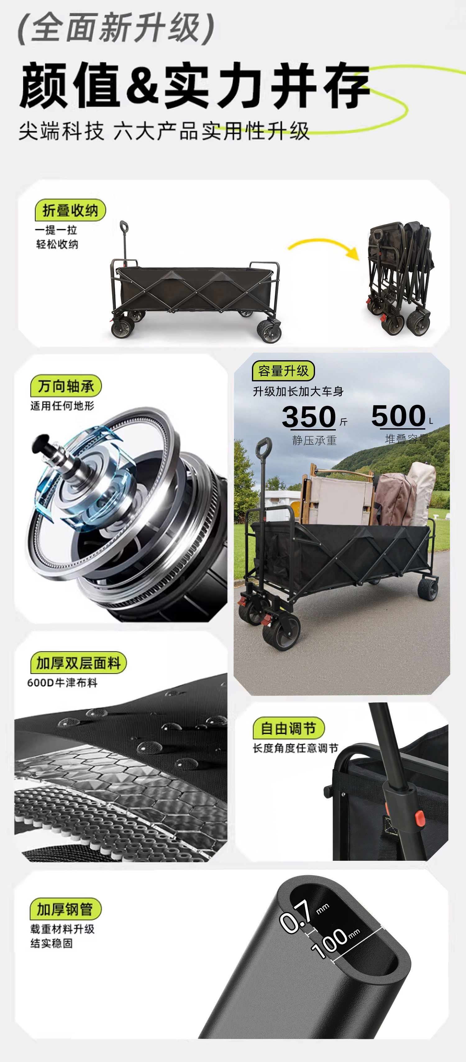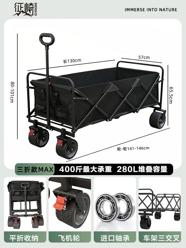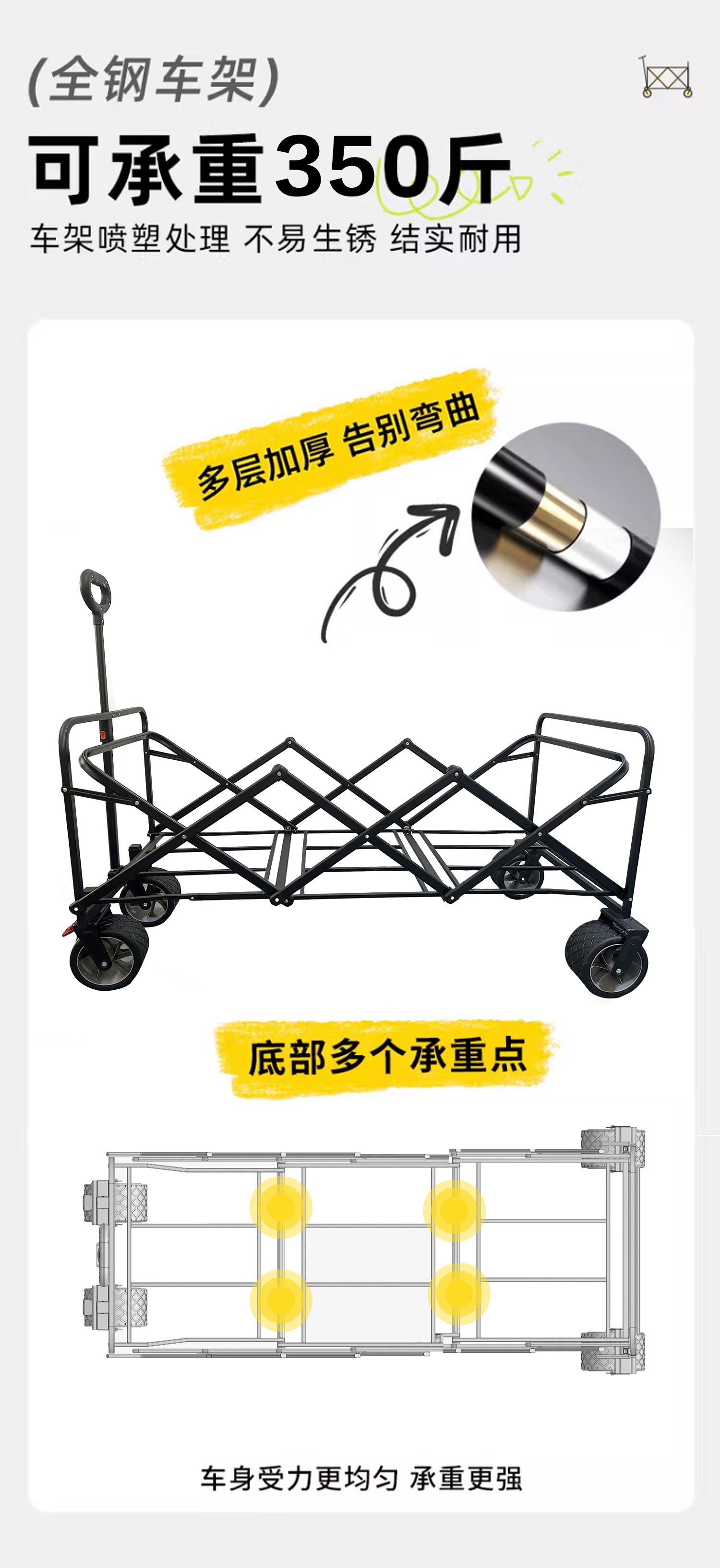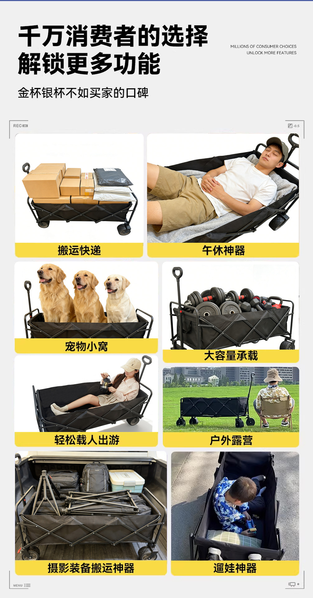 야외 확장 초대형 캠핑 카트 다기능 캠핑 피크닉 어린이 안락 의자 접이식 트레일러 푸시스토어 가기
