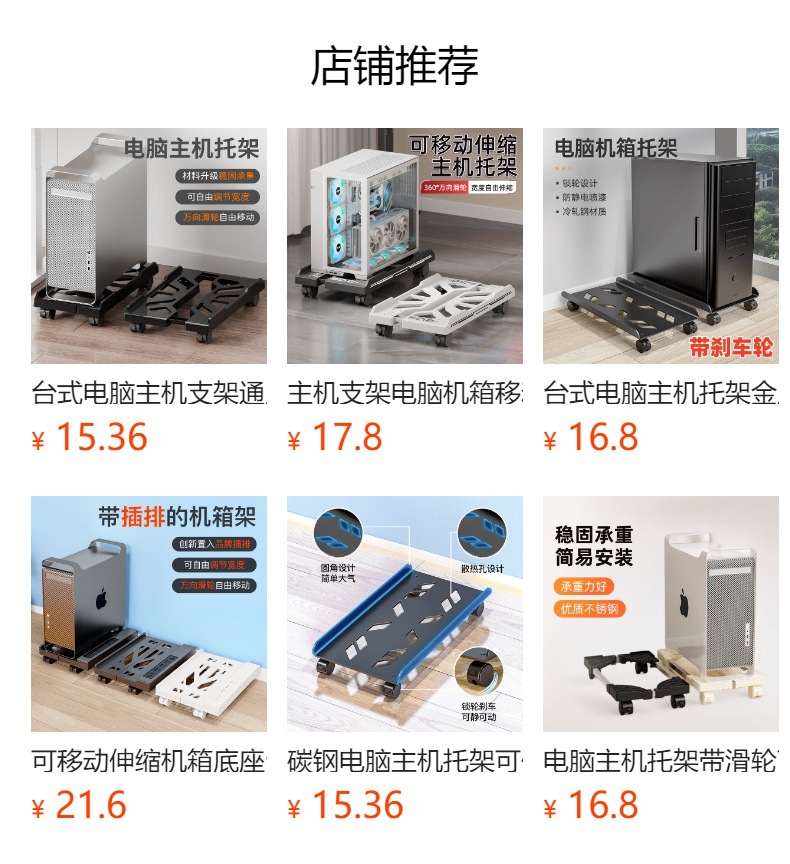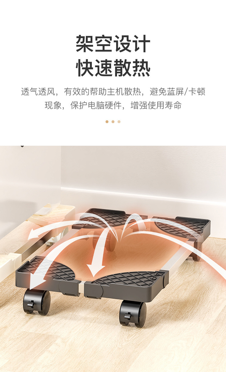풀리 이동식 텔레스코픽 데스크탑 섀시 베이스가 장착 된 컴퓨터 호스트 브래킷 홈 및 오피스를위한 클래식 랙 유니버설스토어 가기